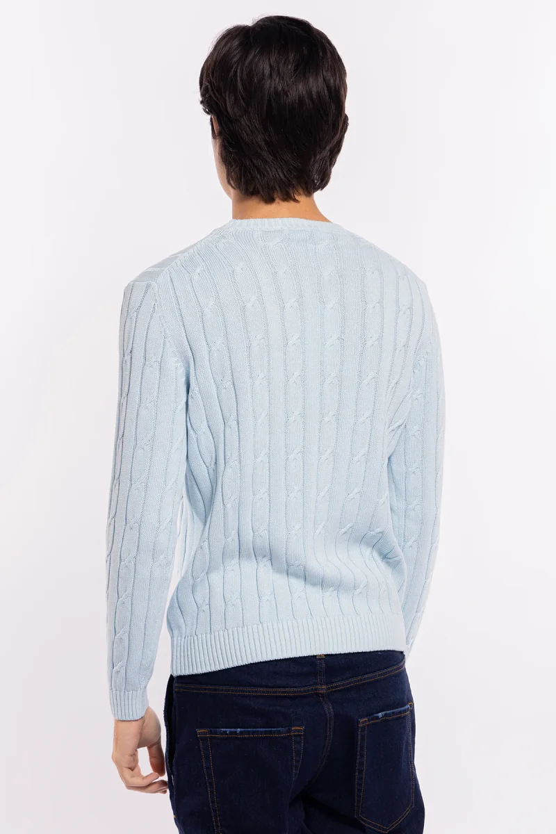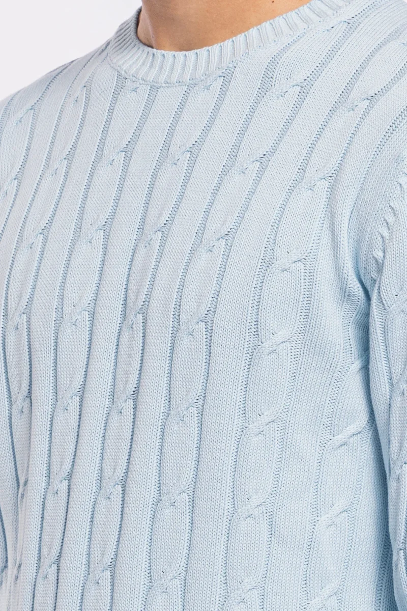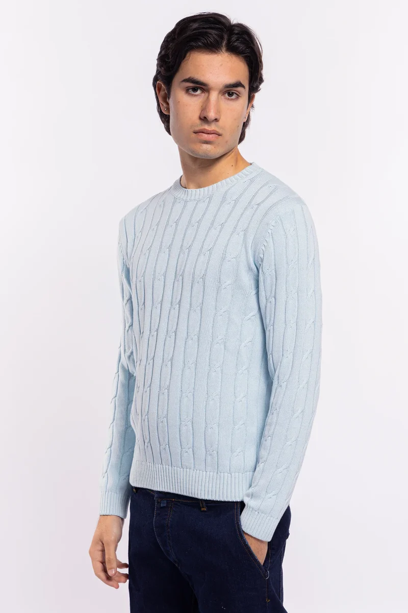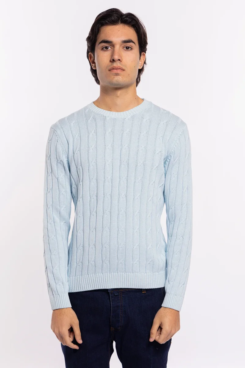 MAGLIONCINO DA UOMO CELESTE CON TRECCIA MANICHE LUNGHE 100% COTONE DI FILO TINTA UNITA FINEZZA 7