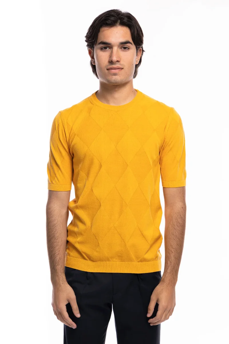 MAGLIONCINO DA UOMO GIALLO MEZZE MANICHE 100% COTONE DI FILO