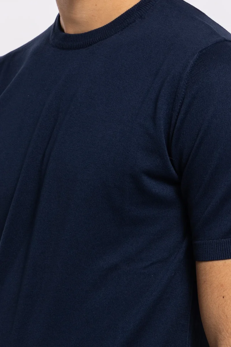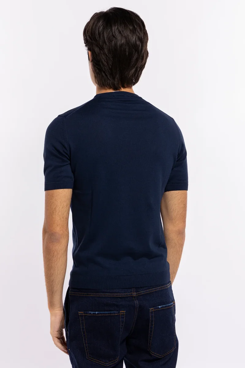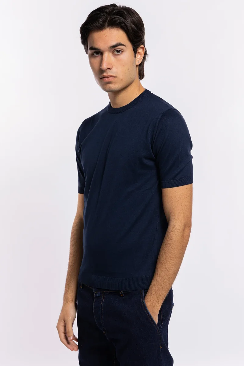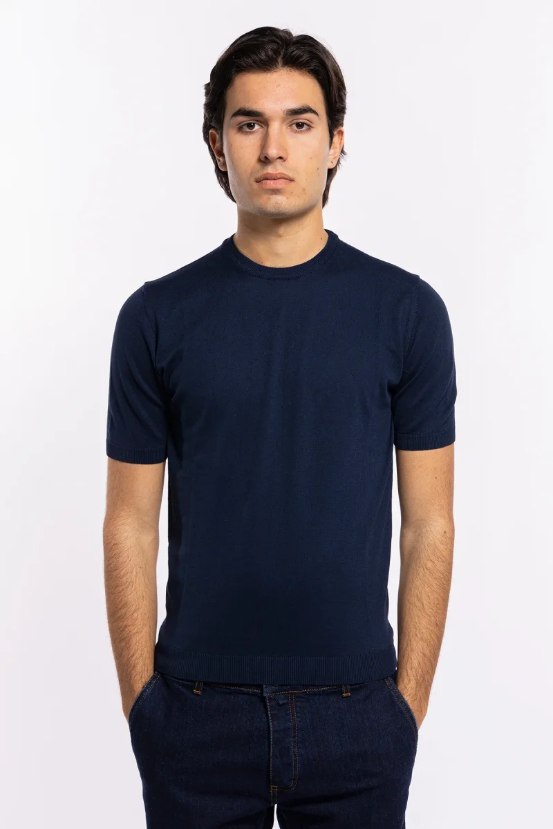 Maglioncino da uomo mezze maniche blu 100% cotone di filo tinta unita finezza 14 –