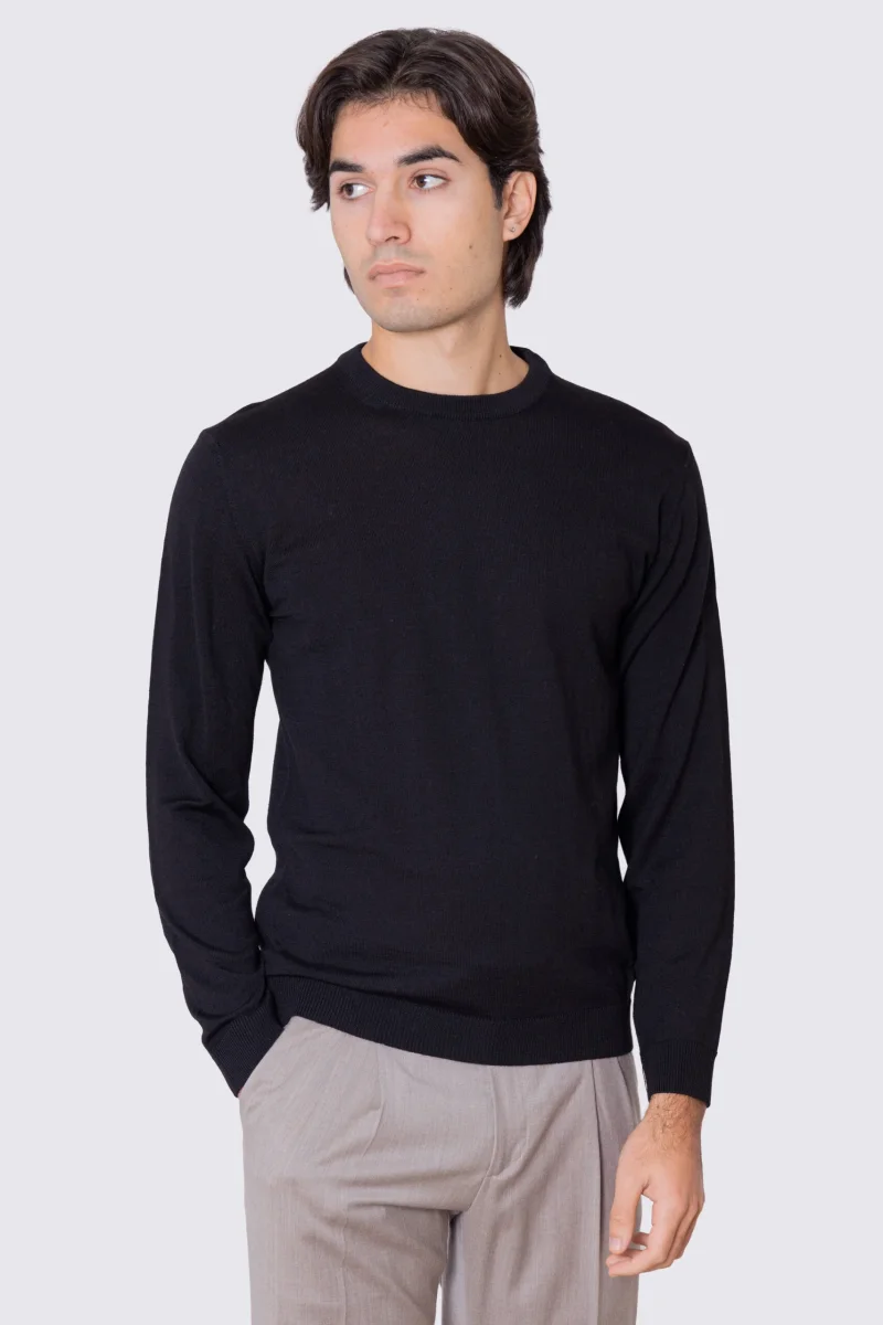 MAGLIONCINO DA UOMO NERO MANICHE LUNGHE 100% COTONE