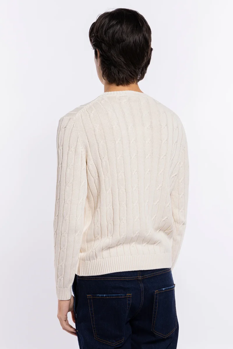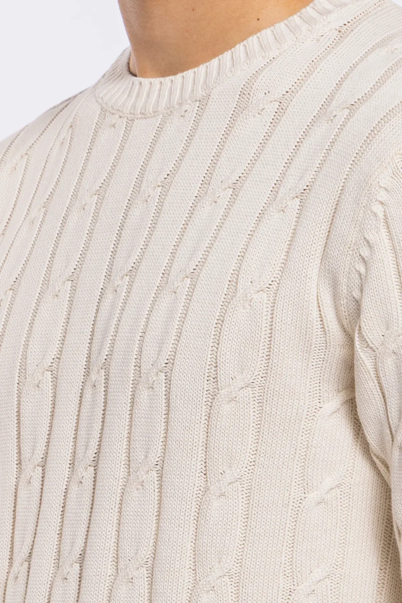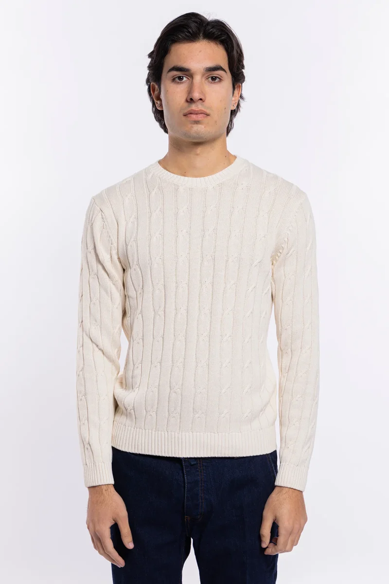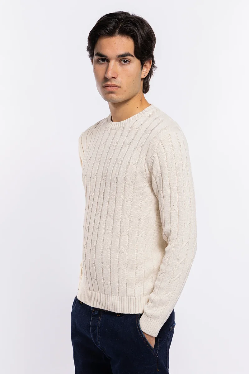 MAGLIONCINO DA UOMO PANNA CON TRECCIA MANICHE LUNGHE 100% COTONE DI FILO TINTA UNITA FINEZZA 7
