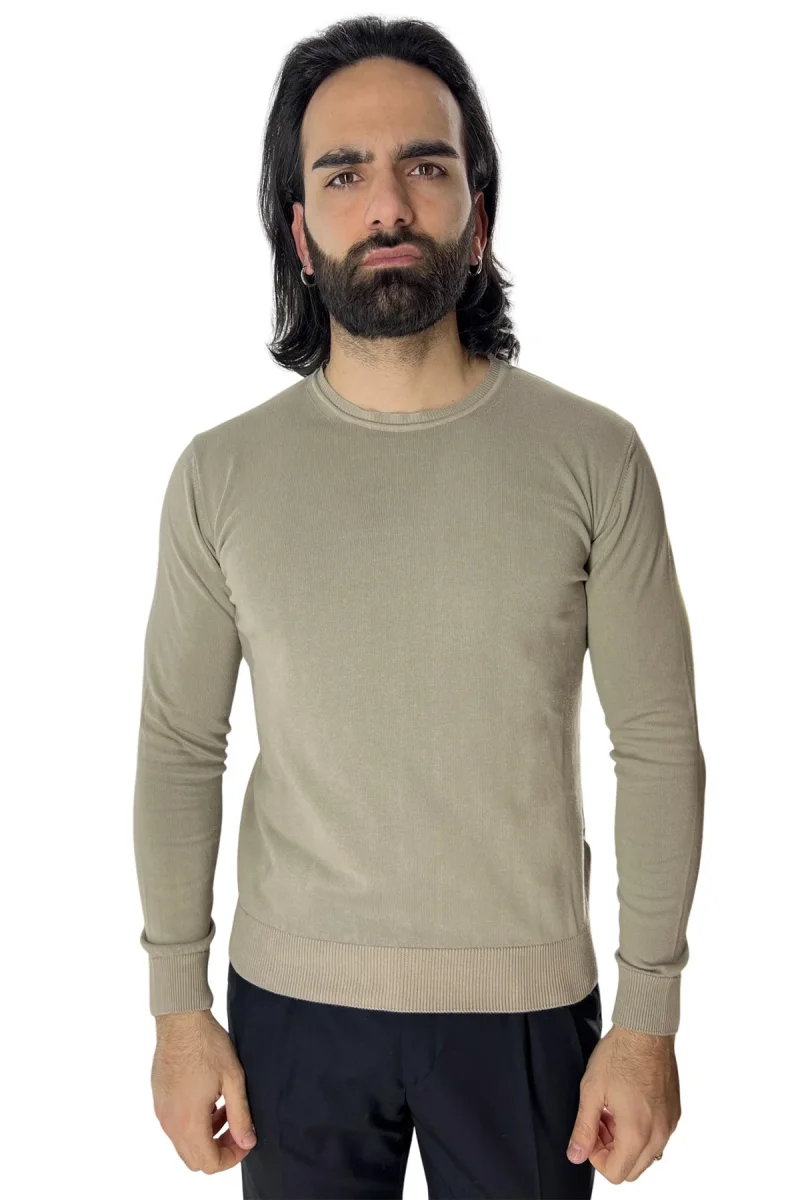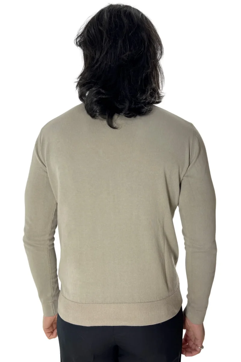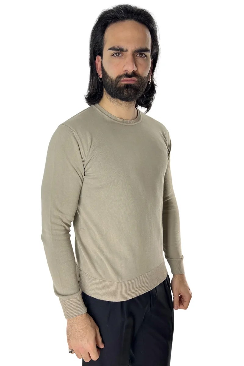 Maglioncino da uomo Tortora maniche lunghe 100% cotone di filo tinta unita finezza 12