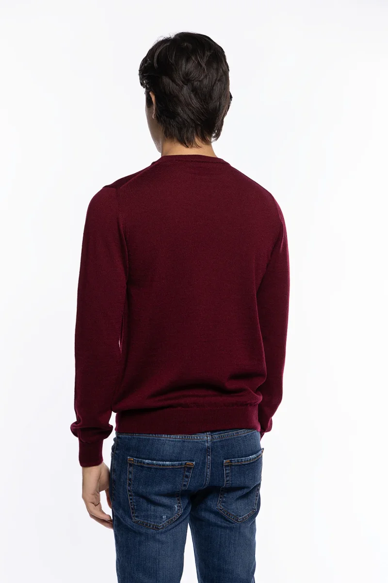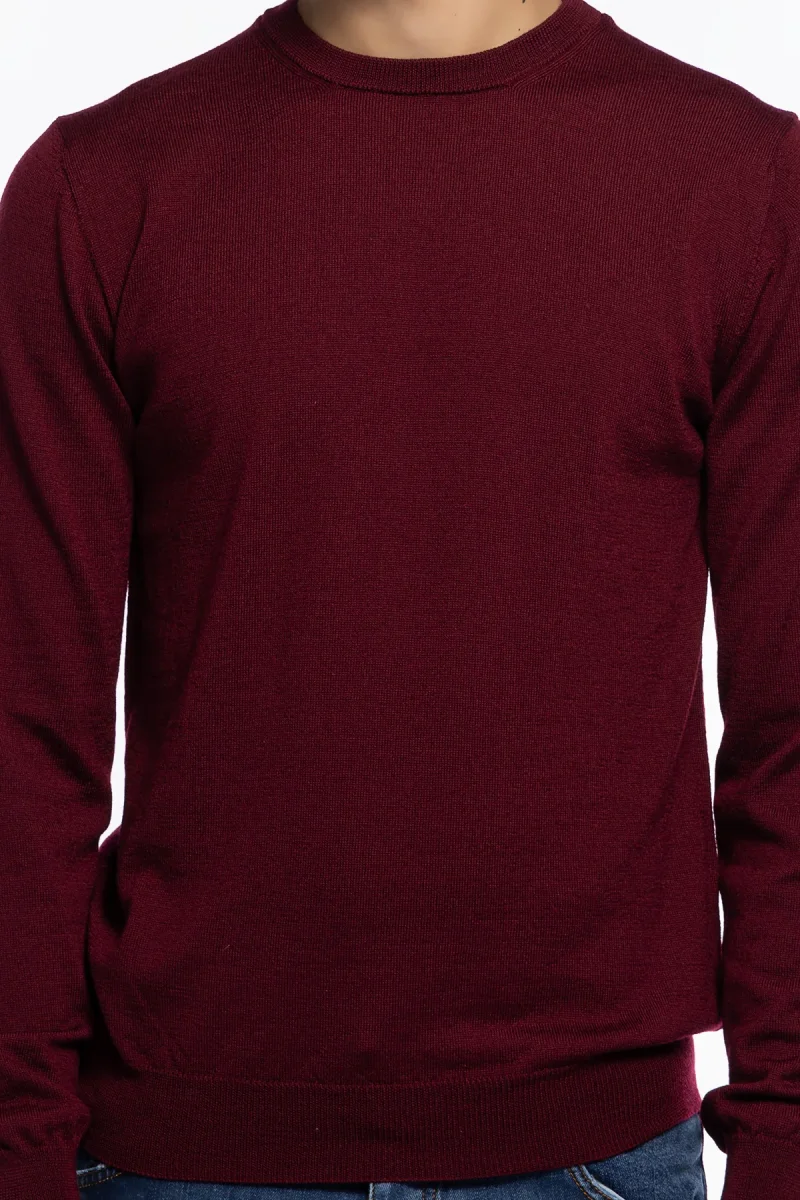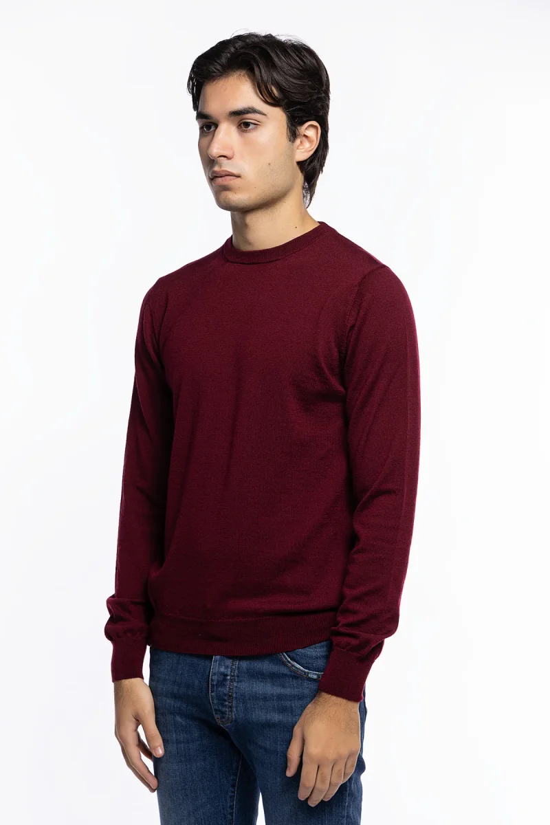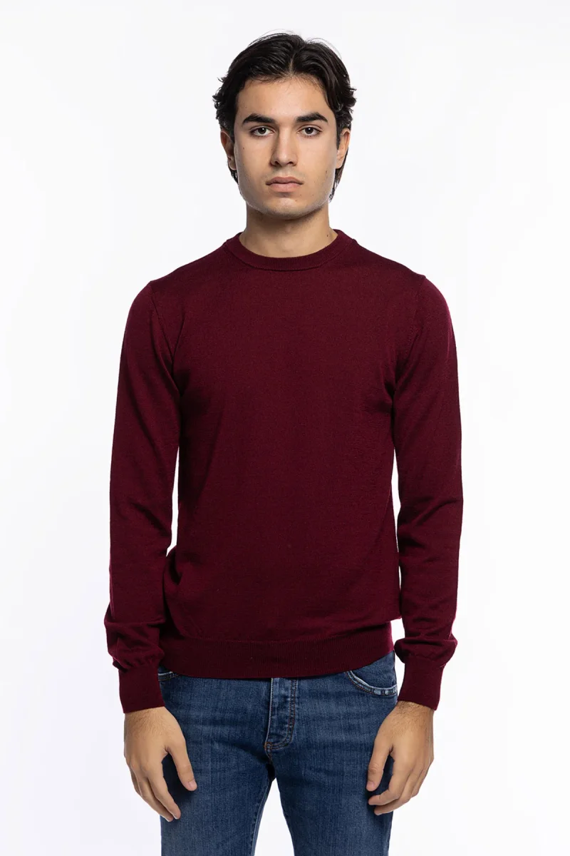 MAGLIONCINO GIROCOLLO UOMO BORDEAUX LANA MERINOS 100% SLIM FIT MADE IN ITALY