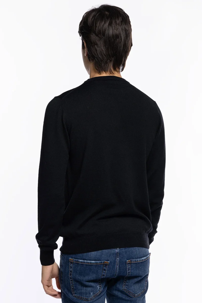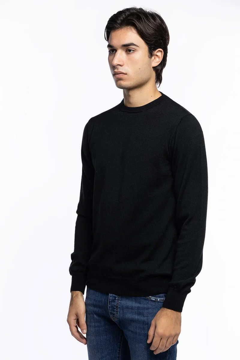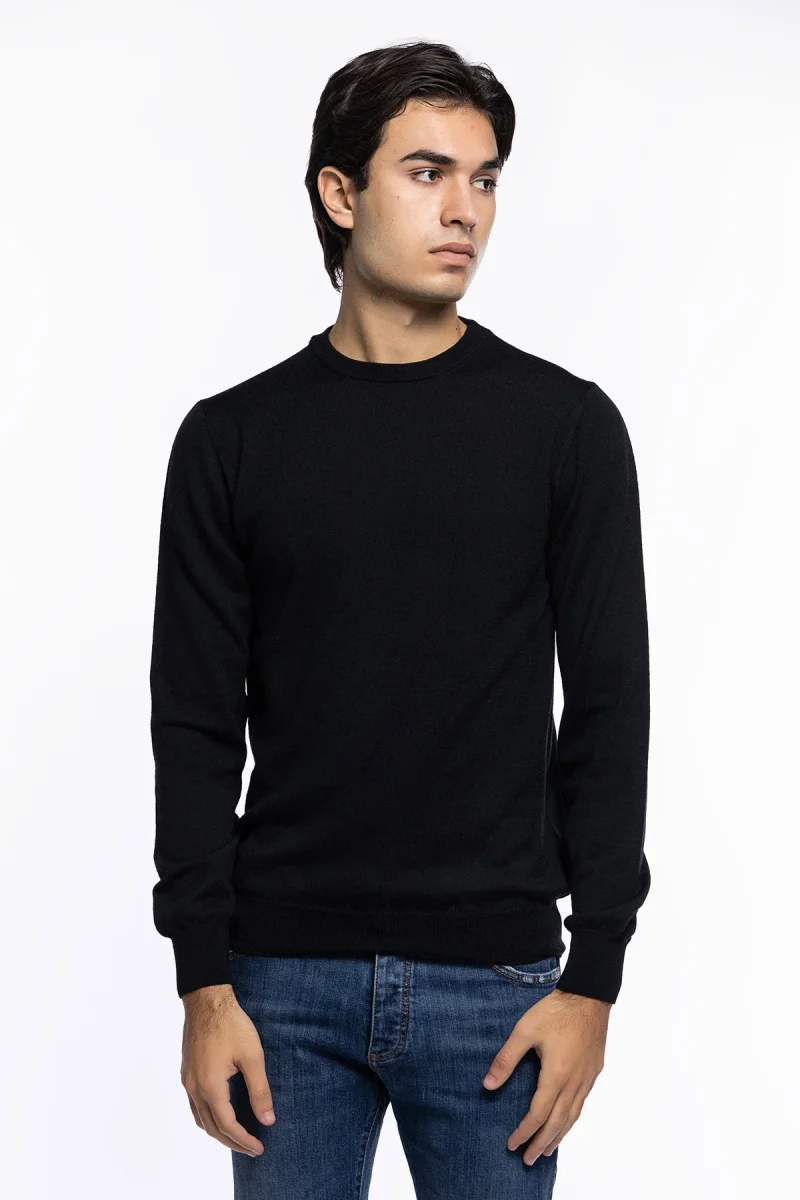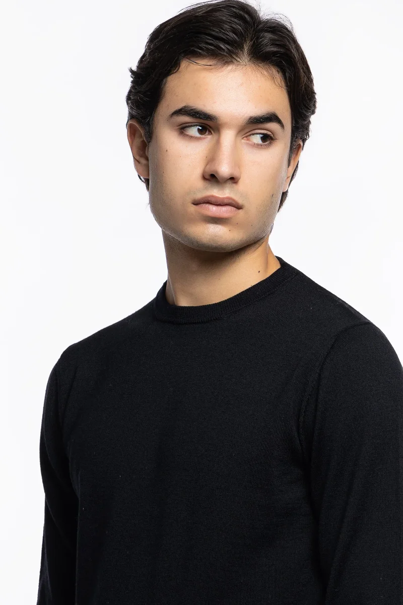 MAGLIONCINO GIROCOLLO UOMO NERO LANA MERINOS 100% SLIM FIT MADE IN ITALY