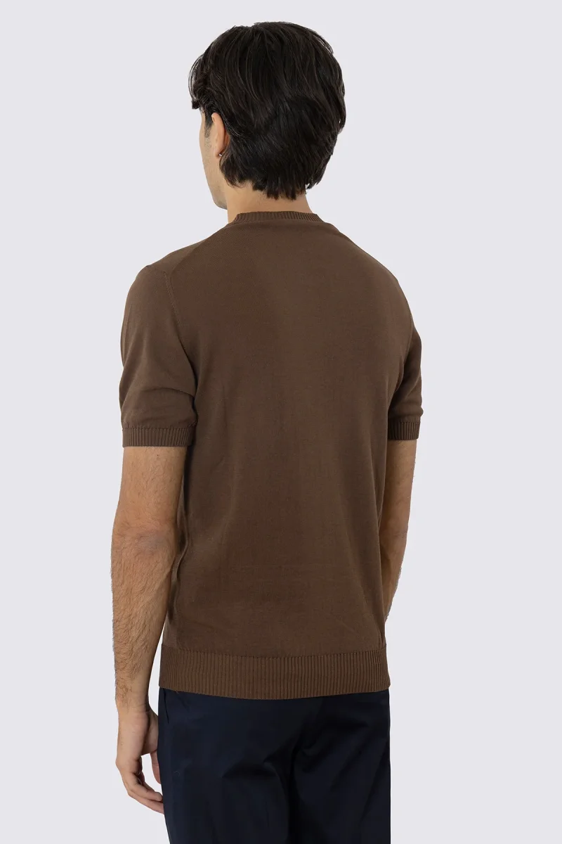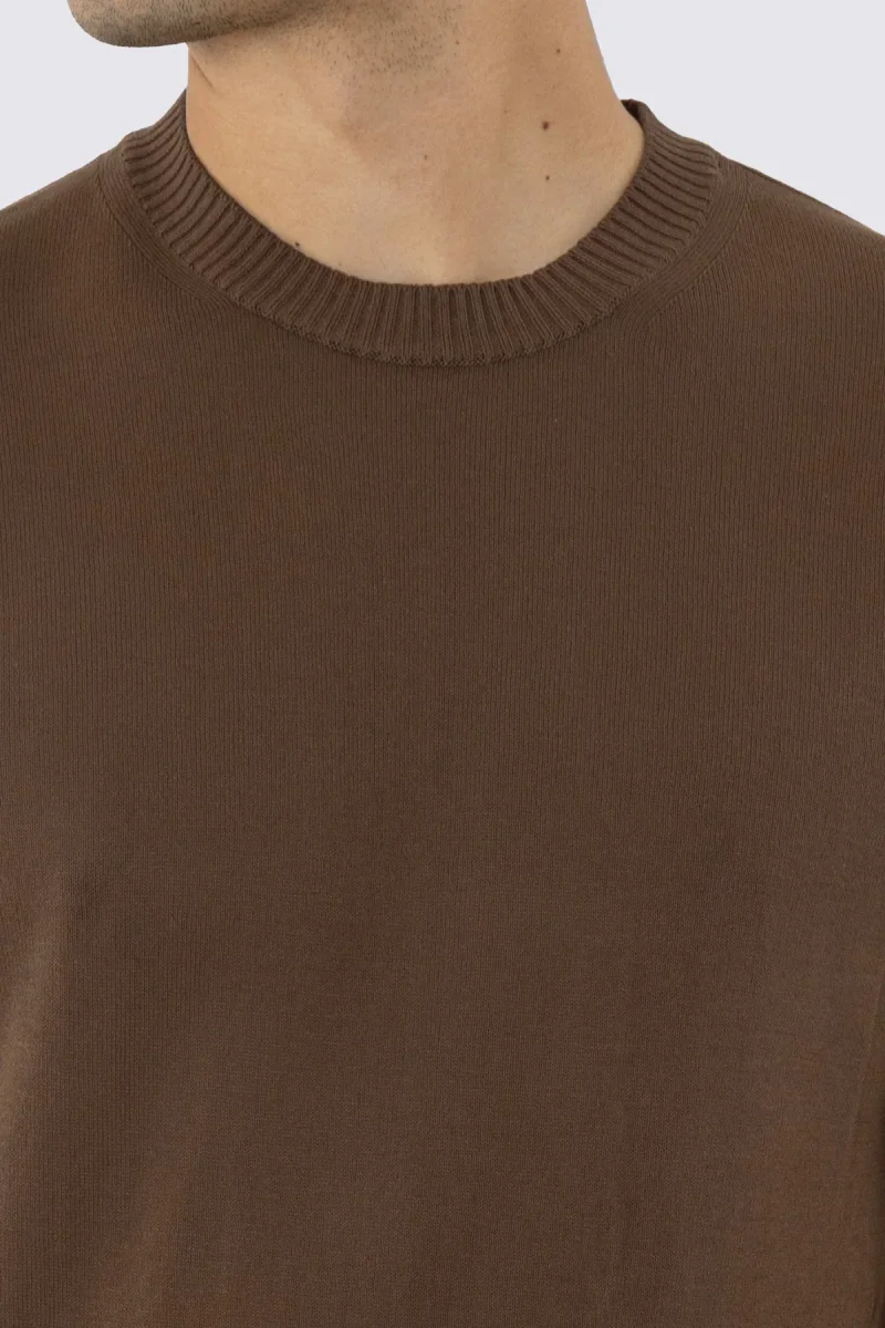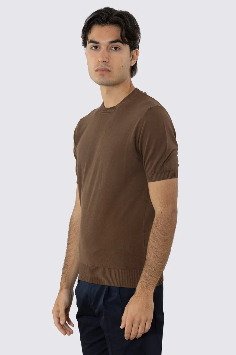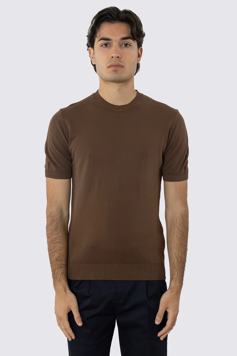Maglioncino marrone mezze maniche in cotone 100% di filo tinta unita con elastici sulle maniche e sul fondo