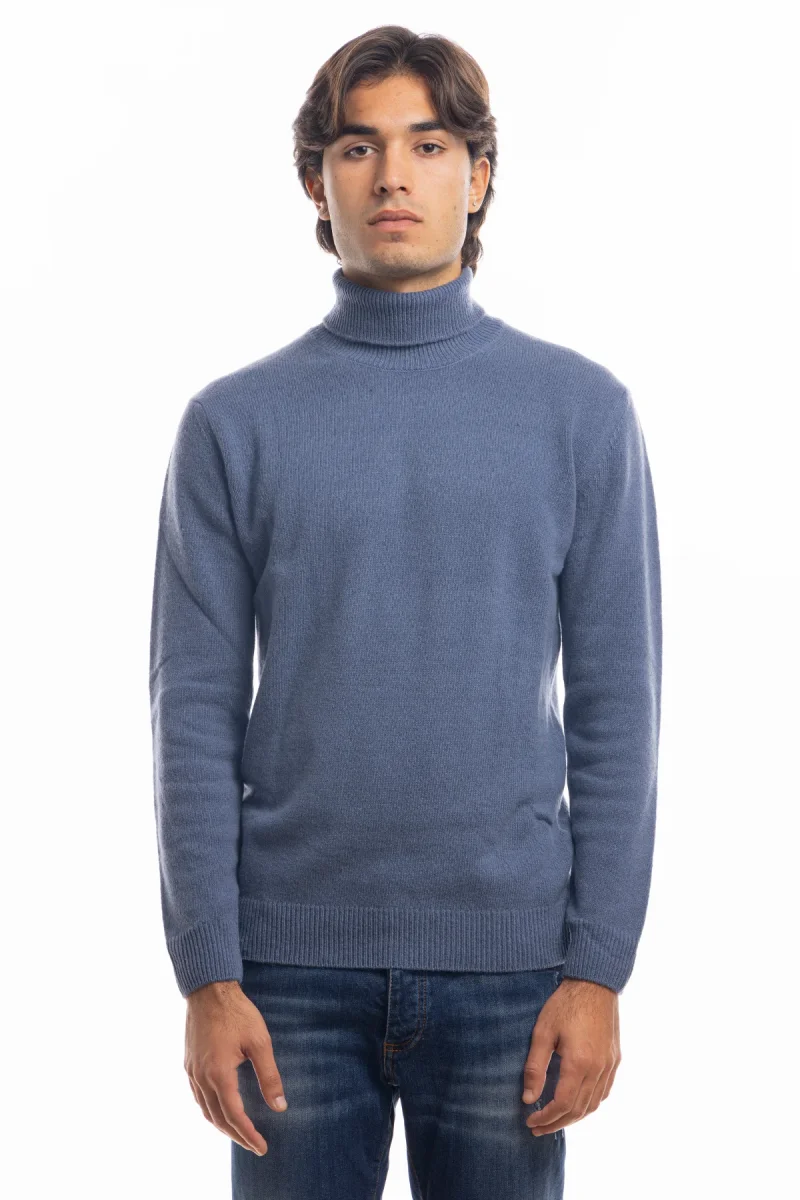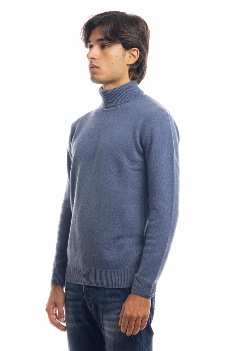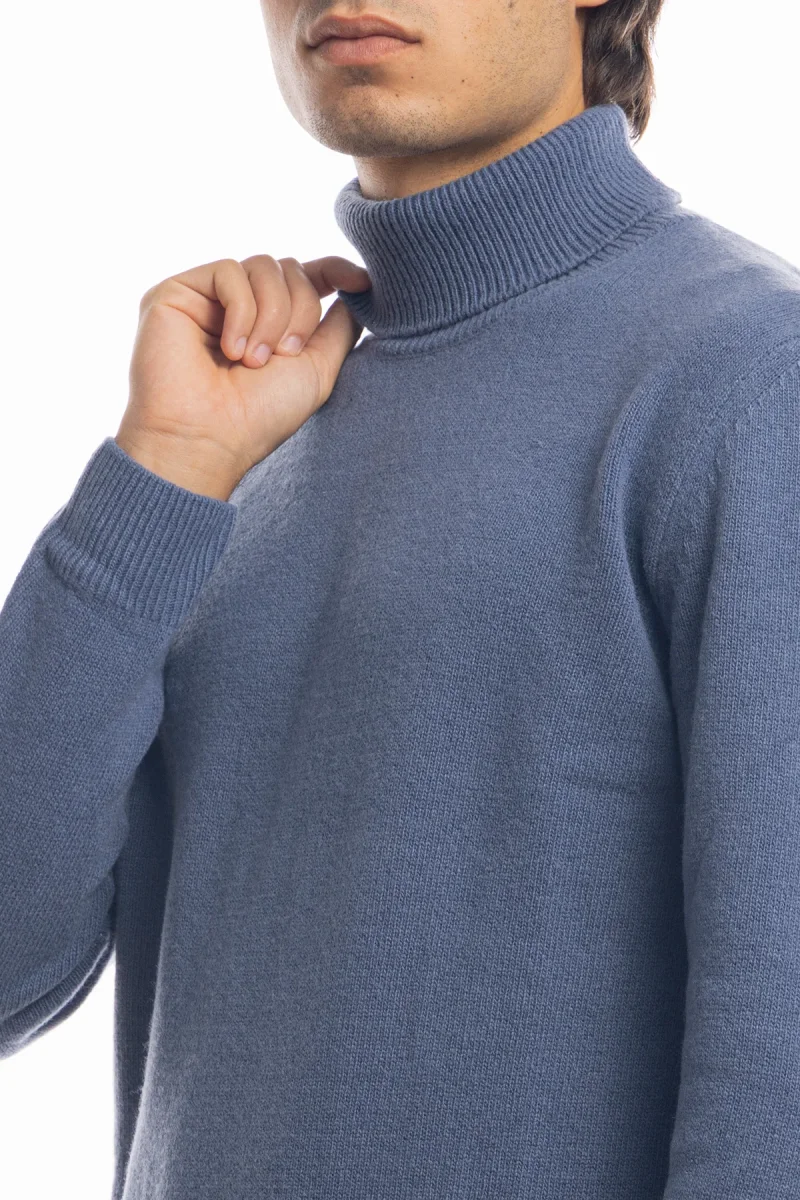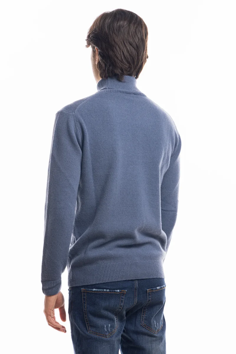 MAGLIONE DA UOMO COLLO ALTO BLU IN LANA MANICHE LUNGHE