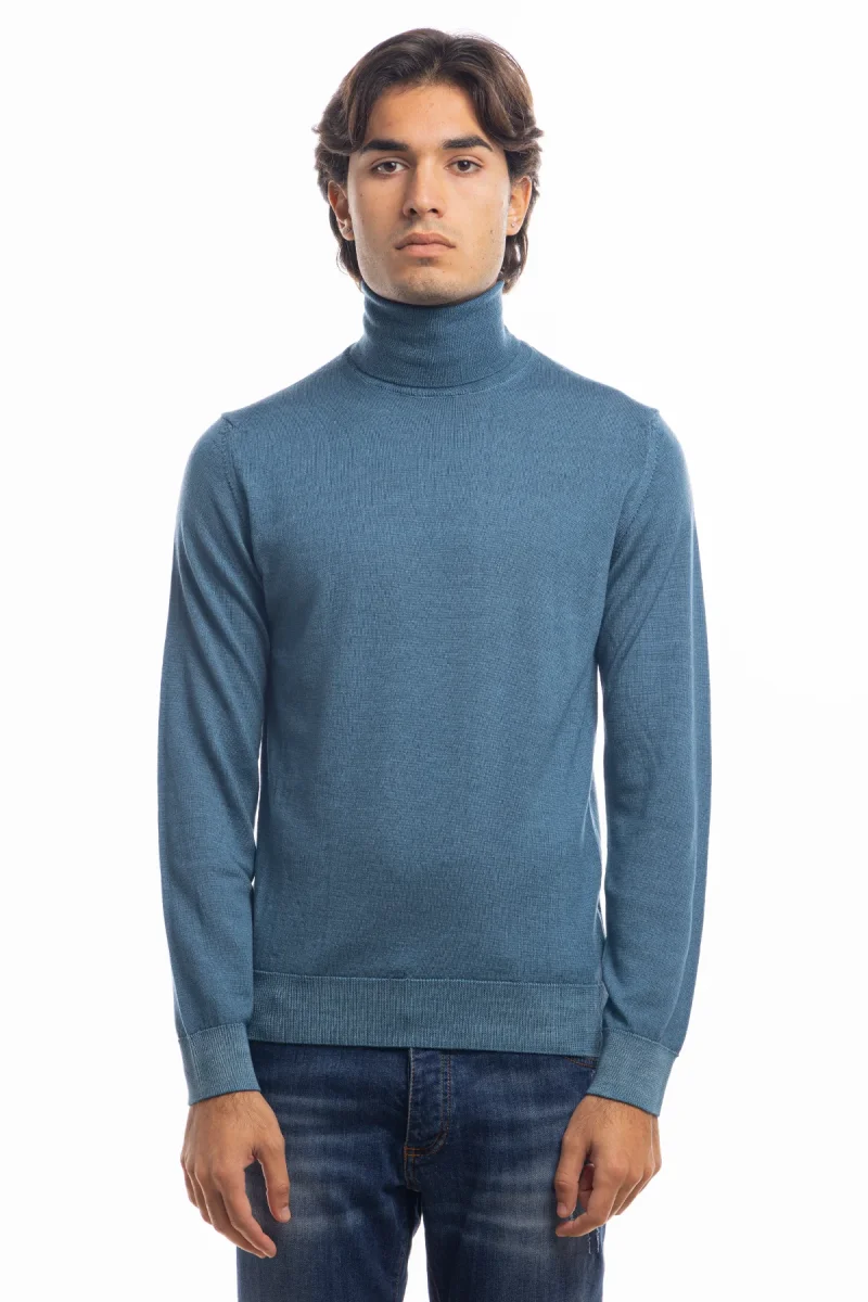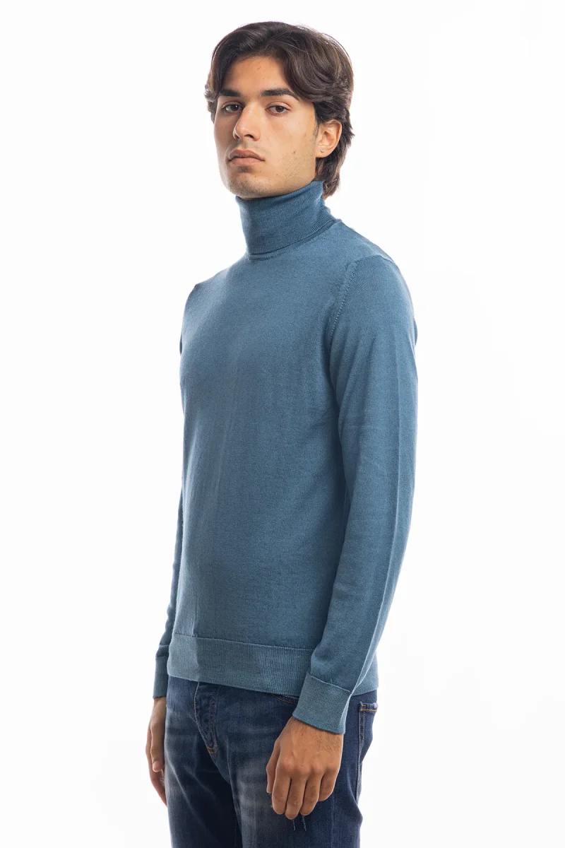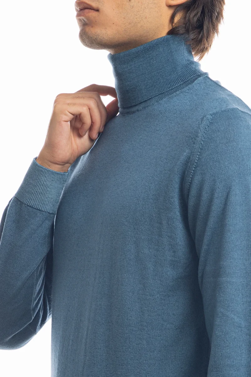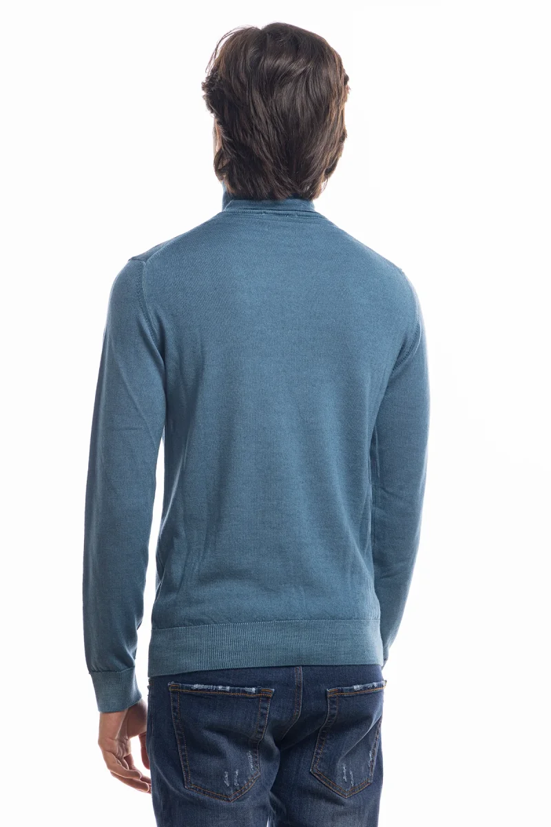 Maglione da uomo collo alto color petrolio in lana merinos 100% maniche lunghe effetto stone wash