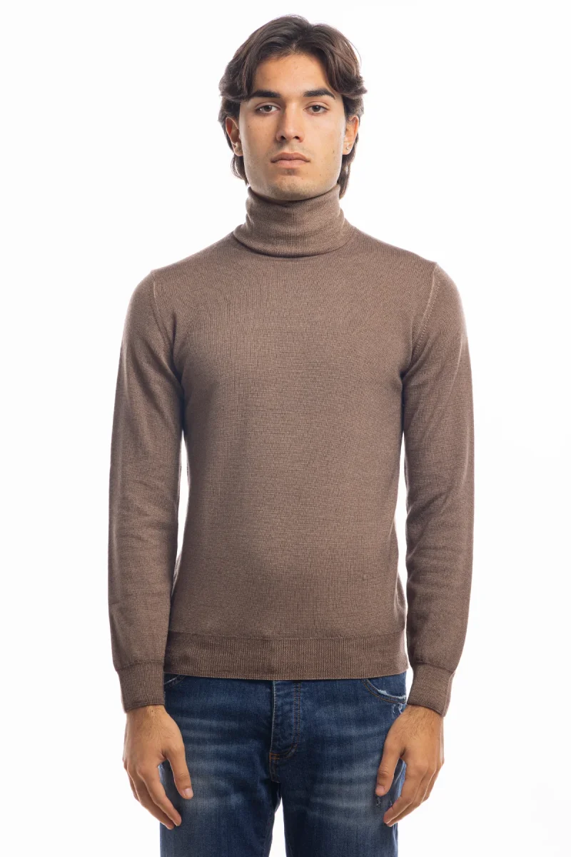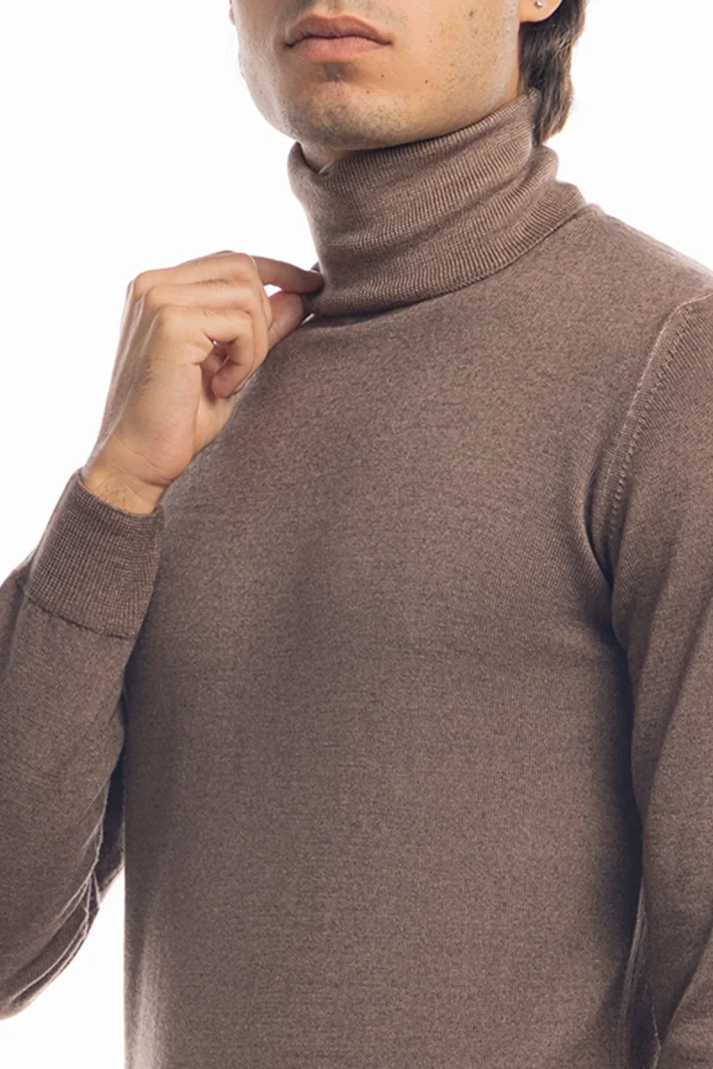 MAGLIONE DA UOMO COLLO ALTO FANGO IN LANA merinos 100% EFFETTO STONE WASH MANICHE LUNGHE