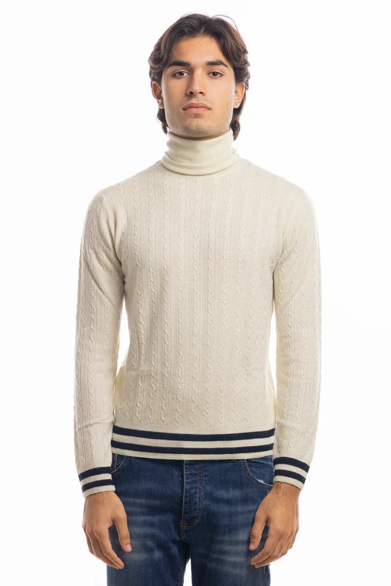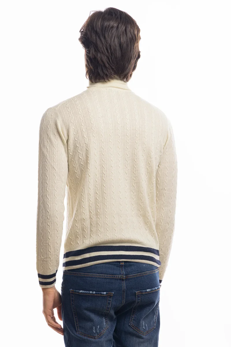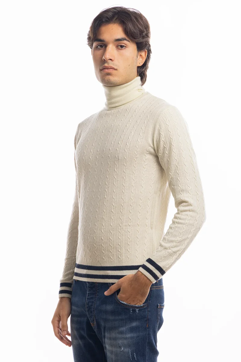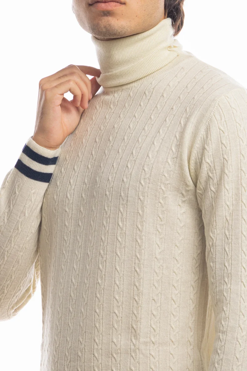 MAGLIONE DA UOMO COLLO ALTO PANNA IN LANA MERINOS 100% EFFETTO STONE WASH MANICHE LUNGHE