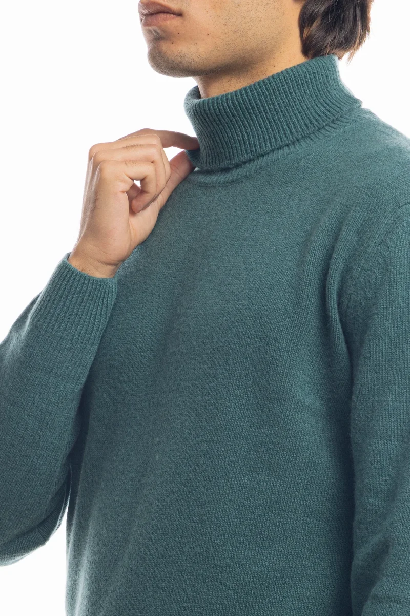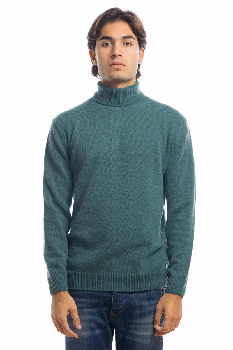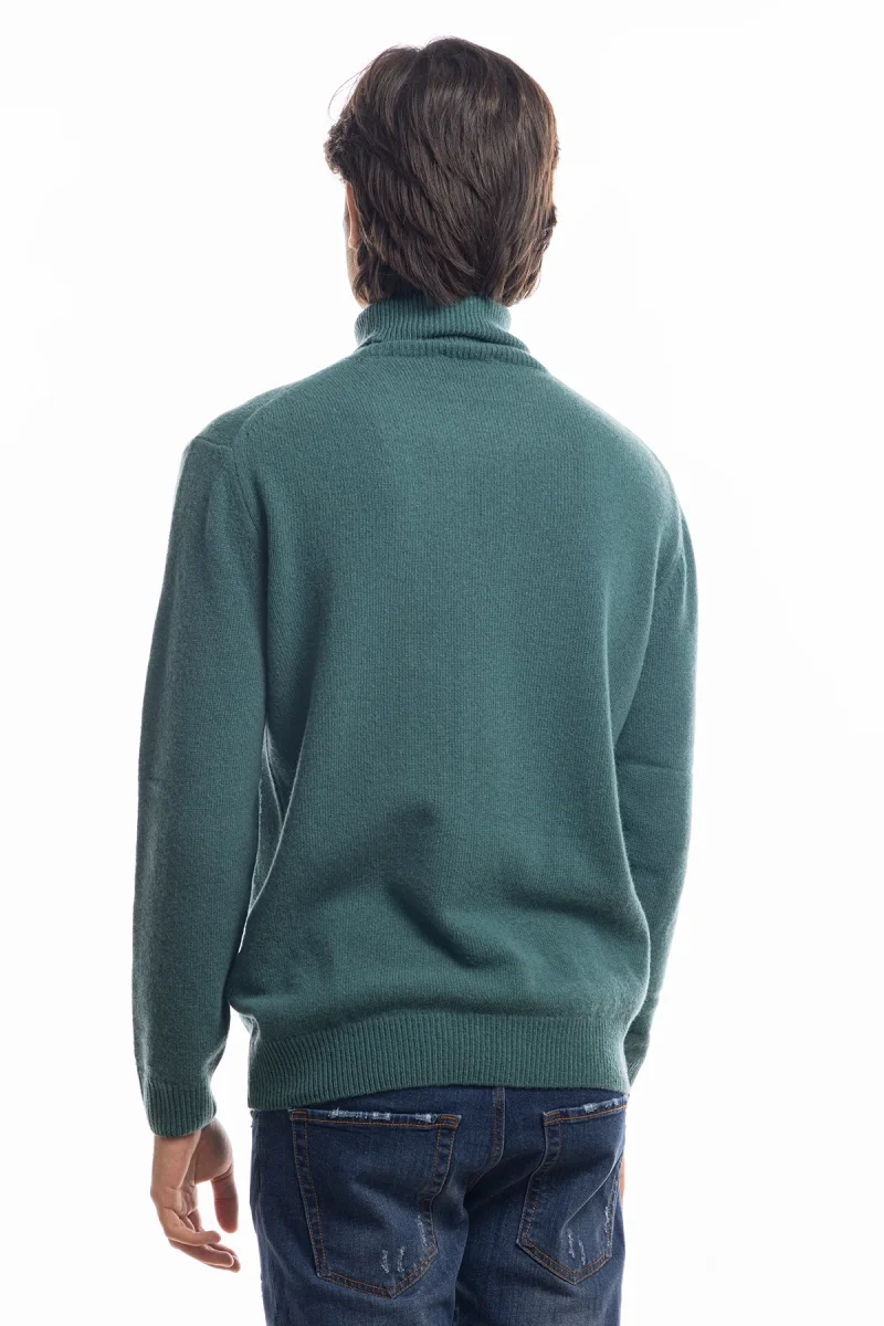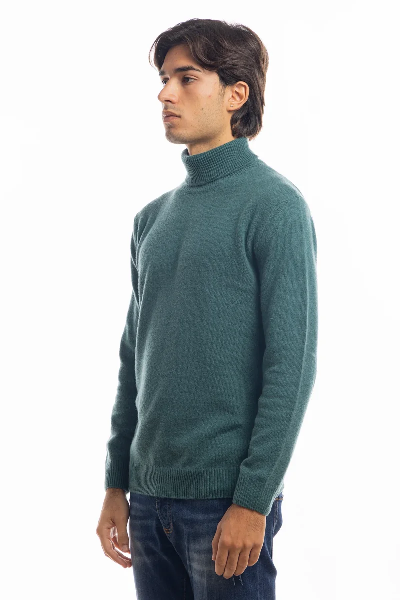 Maglione da uomo collo alto Verde in lana maniche lunghe