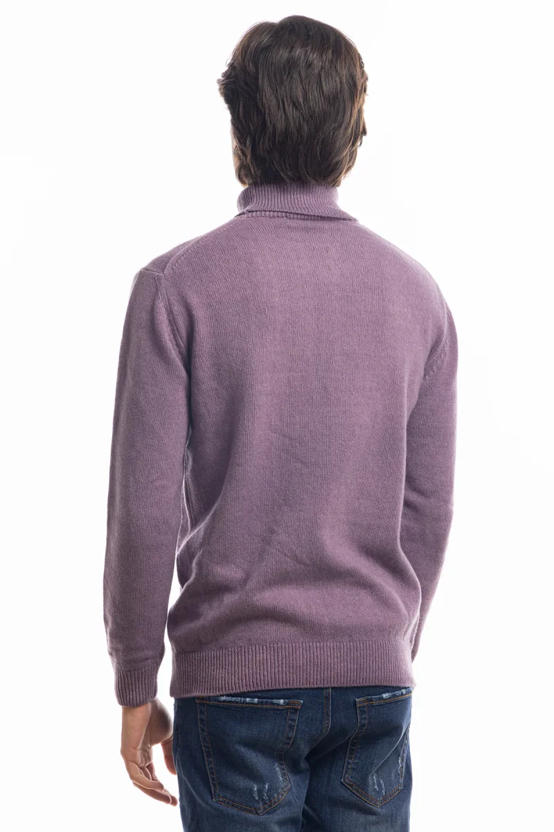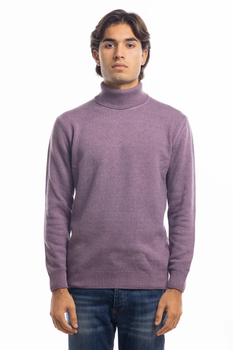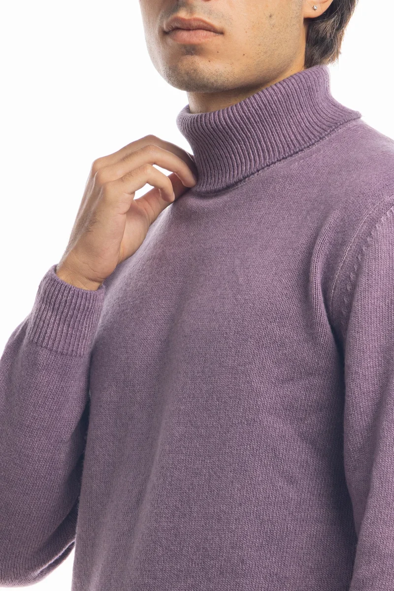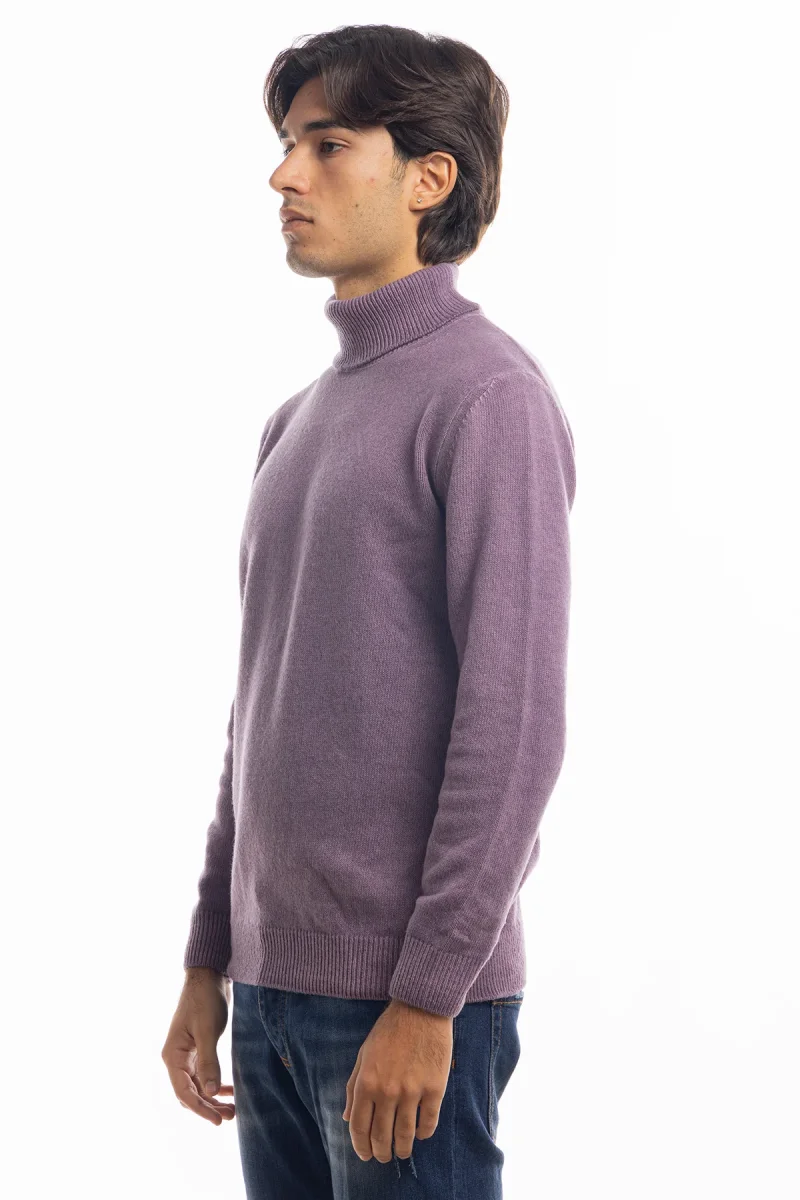 MAGLIONE DA UOMO COLLO ALTO VIOLA IN LANA MANICHE LUNGHE
