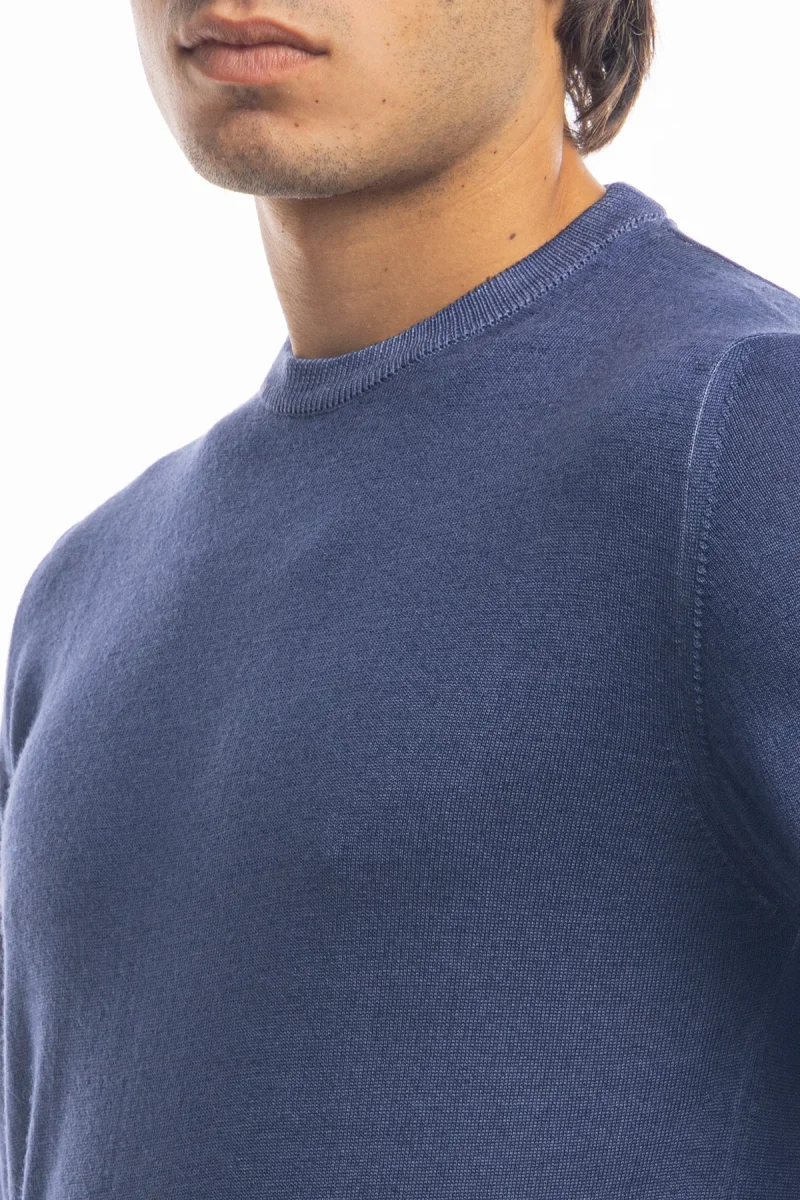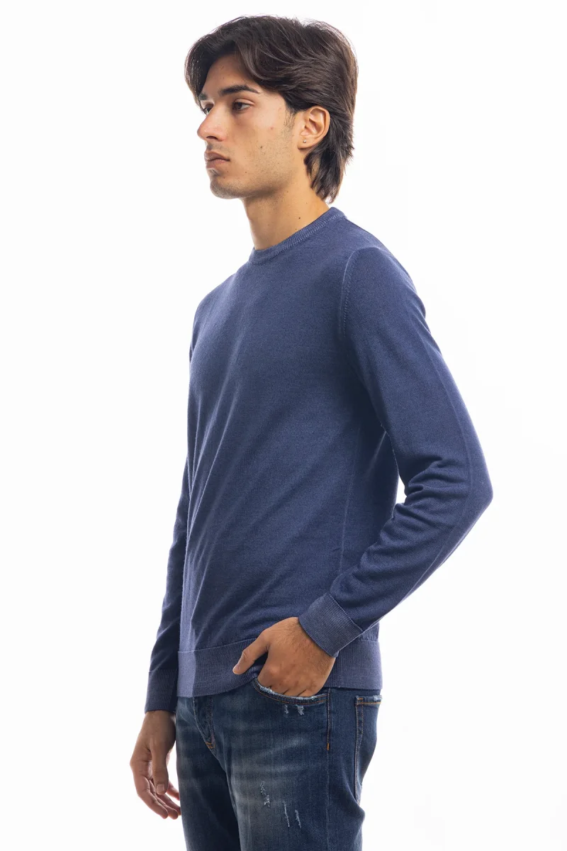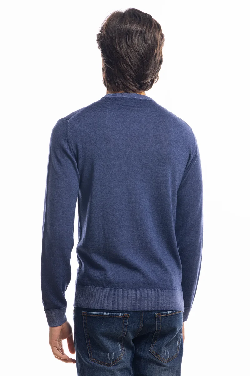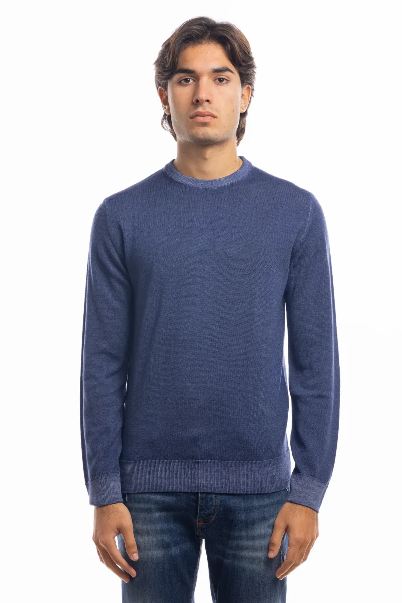 MAGLIONE DA UOMO GIROCOLLO COLOR DENIM IN LANA MERINOS 100% EFFETTO STONE WASH MANICHE LUNGHE