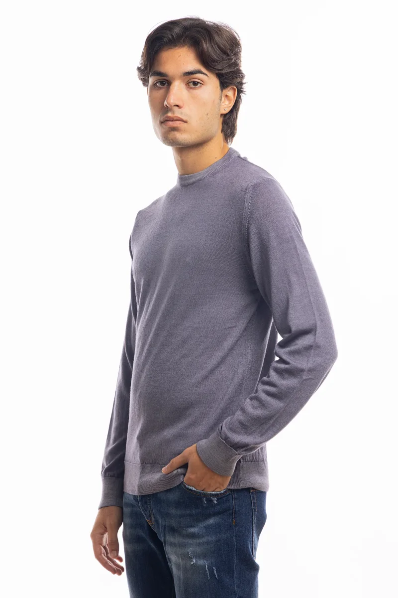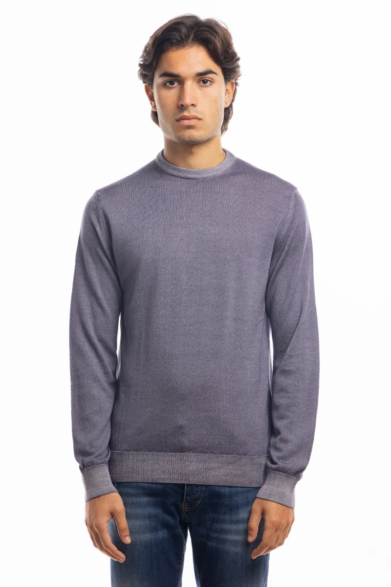 Maglione da uomo girocollo grigio in lana merinos 100% effetto stone wash maniche lunghe