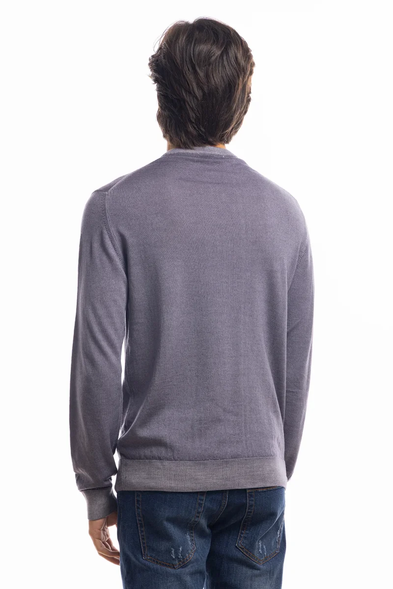 Recensisci per primo “Maglione da uomo girocollo grigio in lana merinos 100% effetto stone wash maniche lunghe”