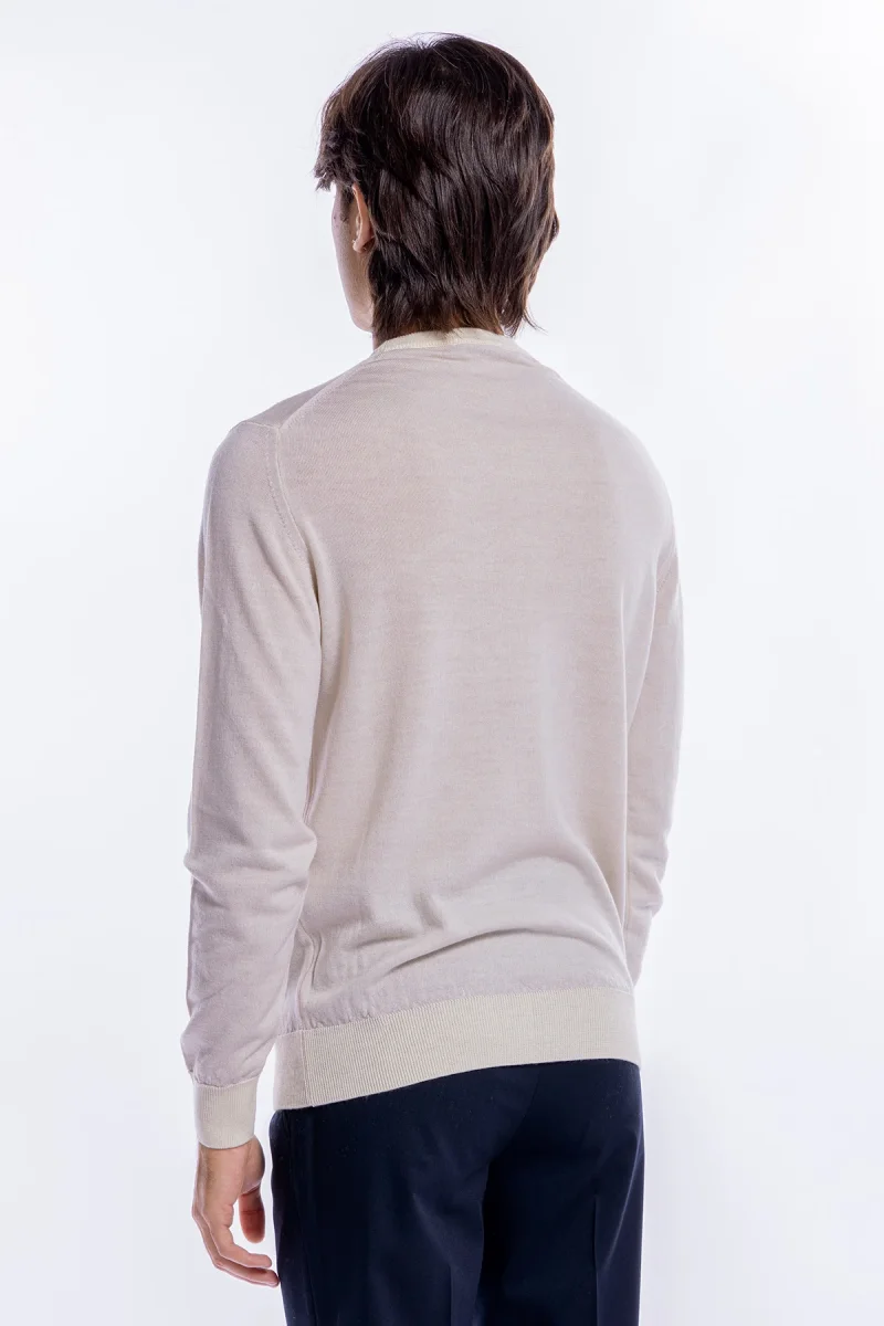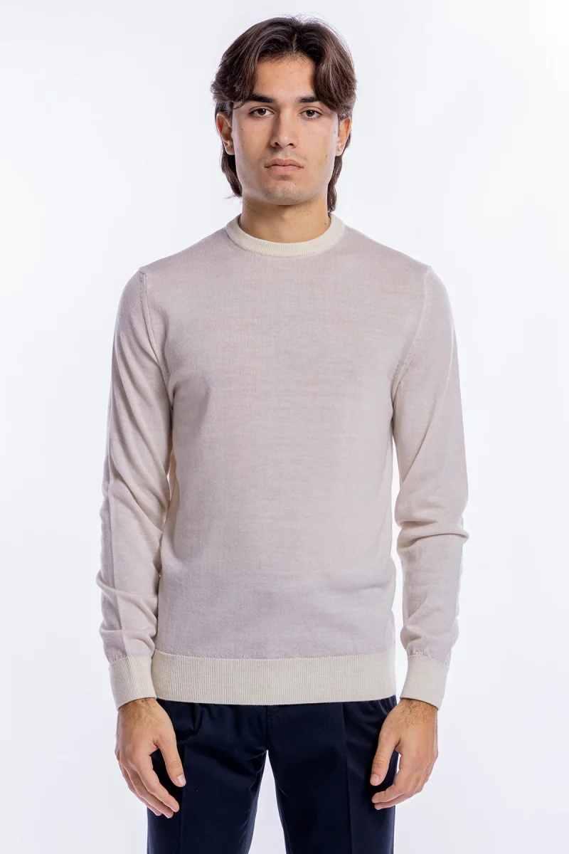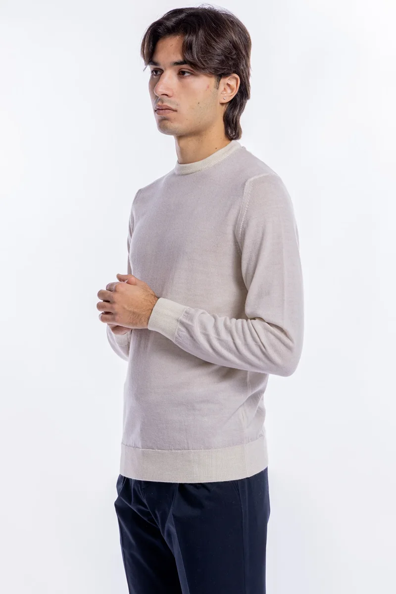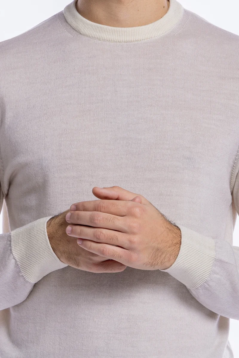 MAGLIONE DA UOMO GIROCOLLO BIANCO IN LANA MERINOS 100% EFFETTO STONE WASH MANICHE LUNGHE