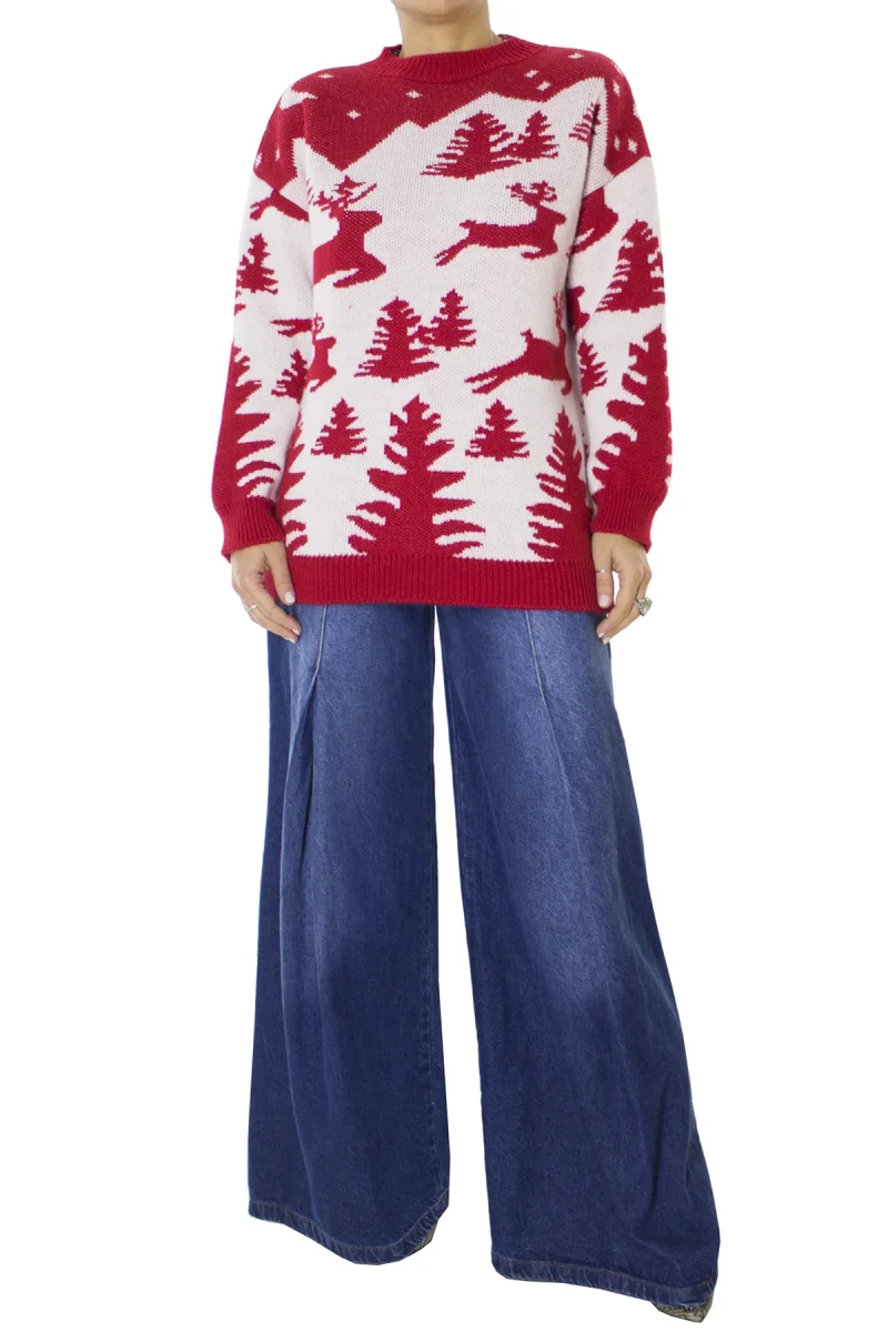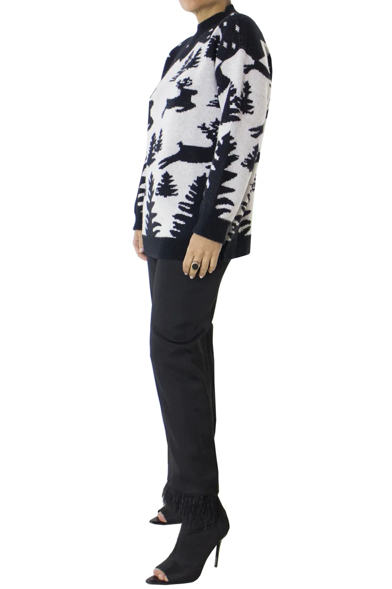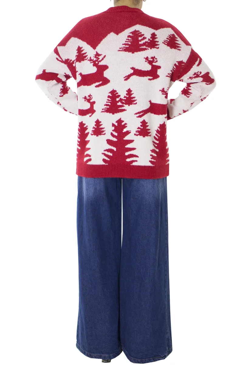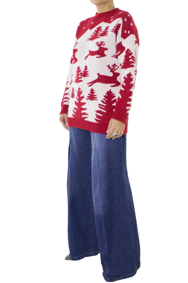 Maglione donna natalizio in lana con motivo renne di babbo natale girocollo oversize