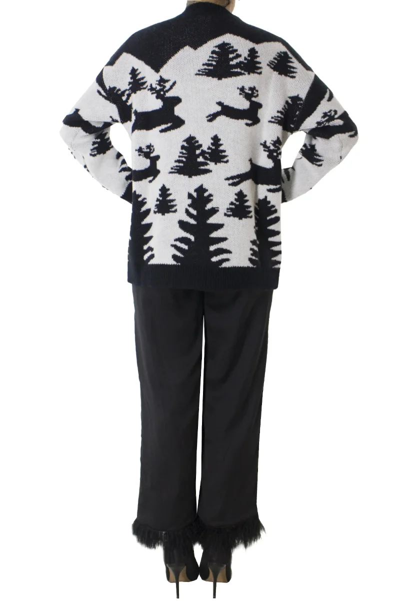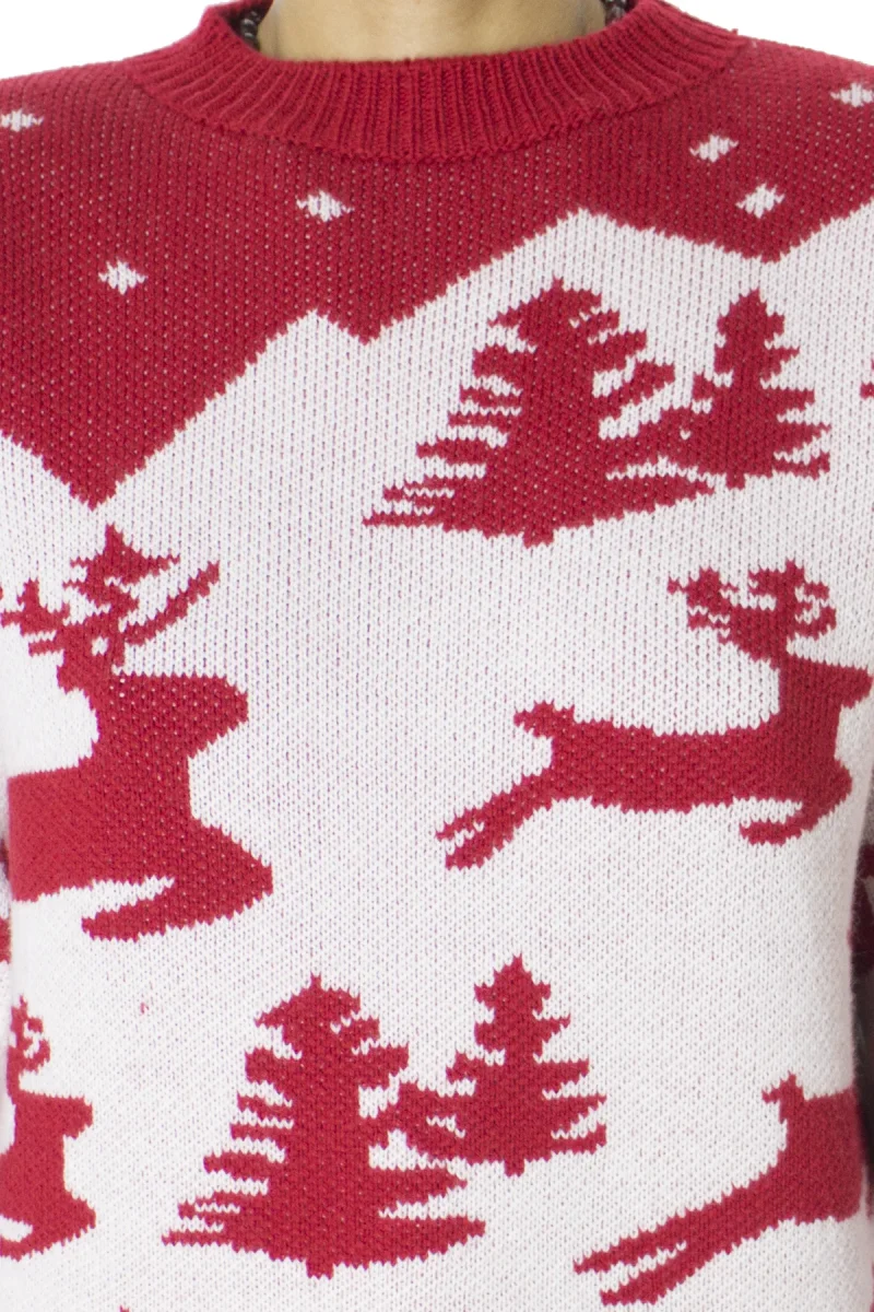 Maglione donna natalizio in lana con motivo renne di babbo natale