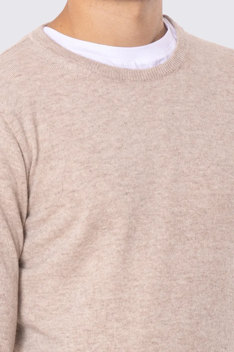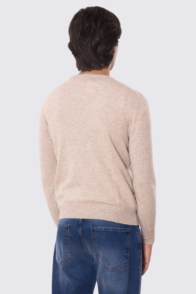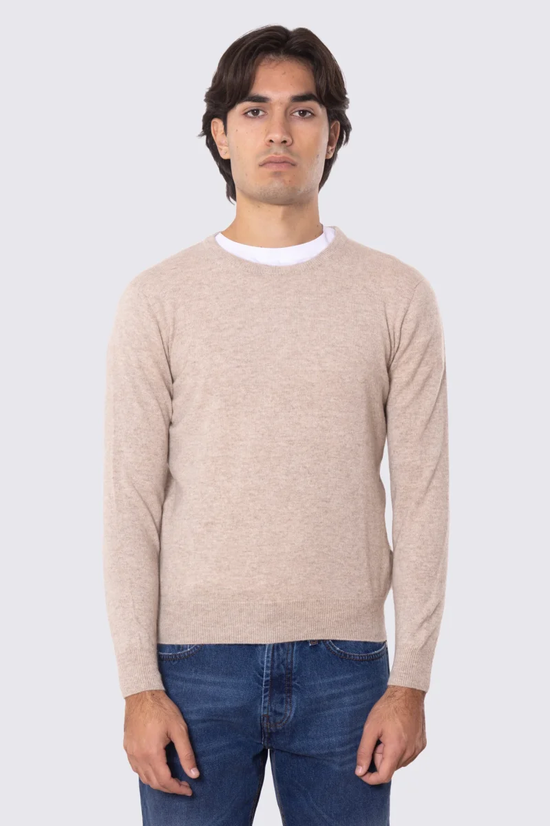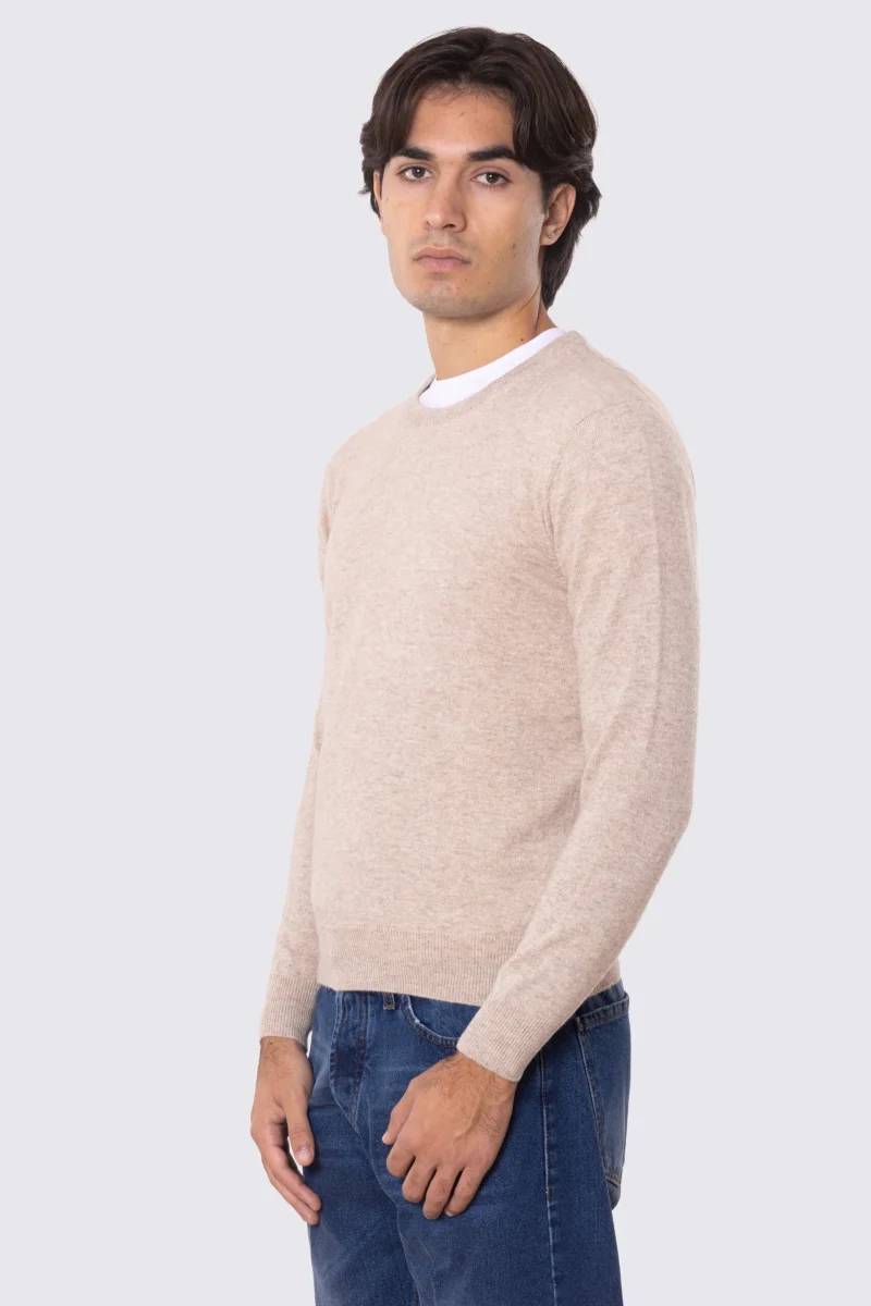 Maglione girocollo beige 100% cashmere a tubolare tinta unita con elastici sulle maniche e sul fondo Finezza 12