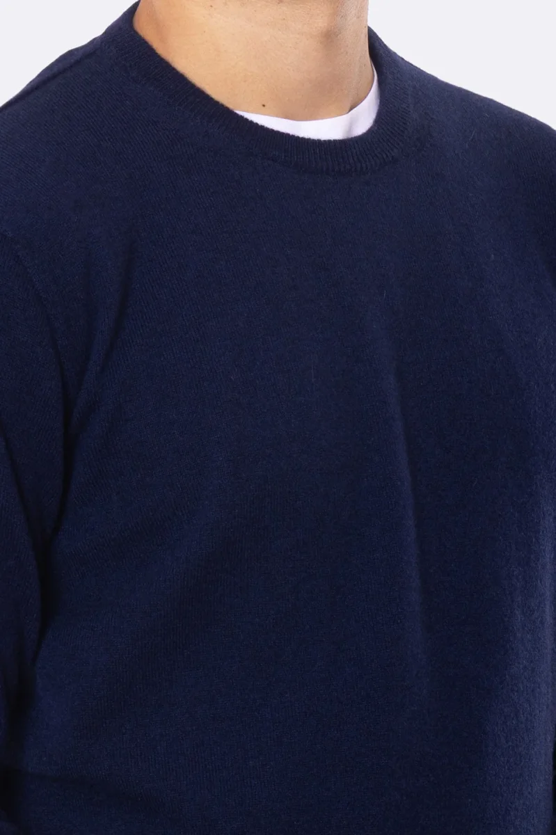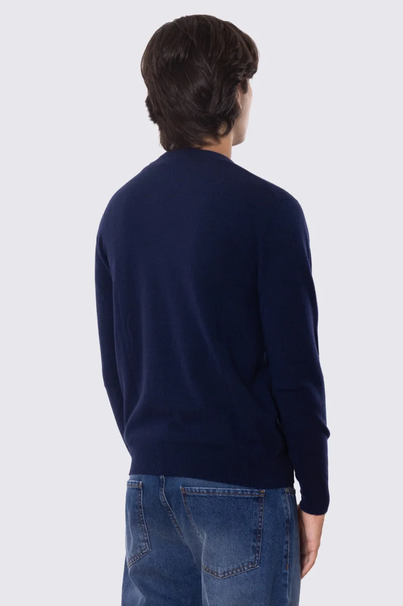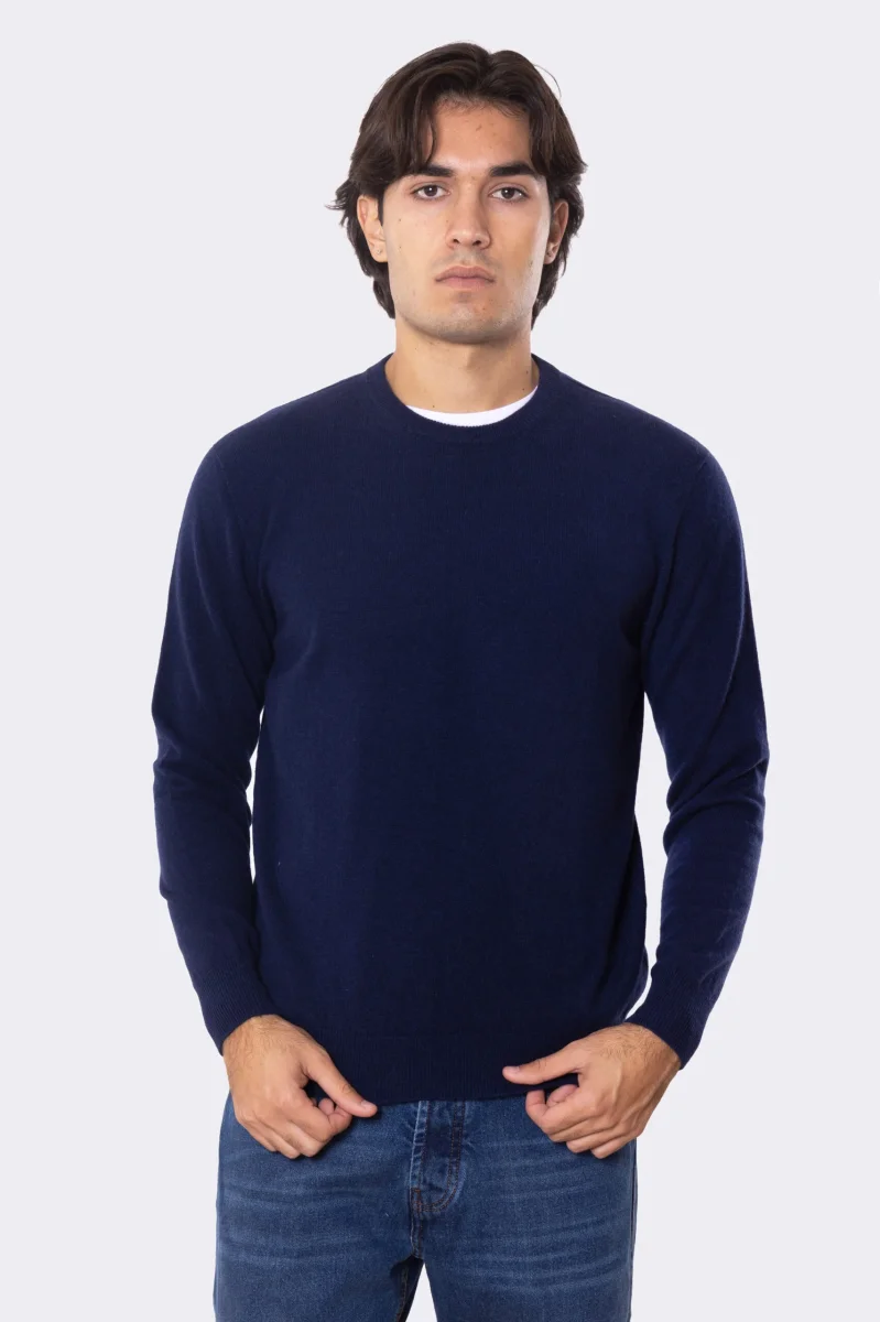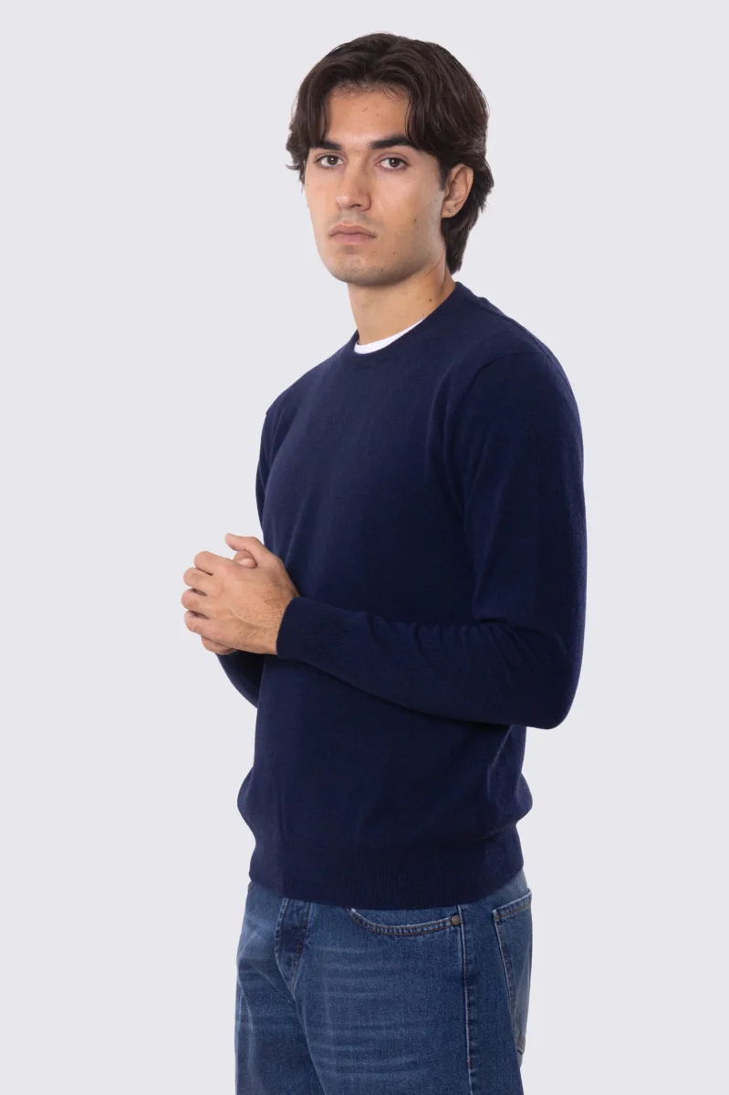Maglione girocollo blu 100% cashmere a tubolare tinta unita con elastici sulle maniche e sul fondo Finezza 12