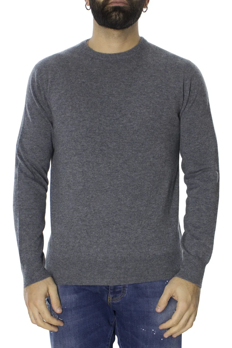 Maglione uomo Girocollo Grigio Scuro in puro cashmere 100% slim fit made in italy
