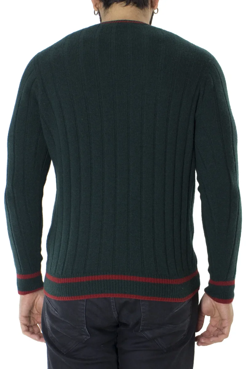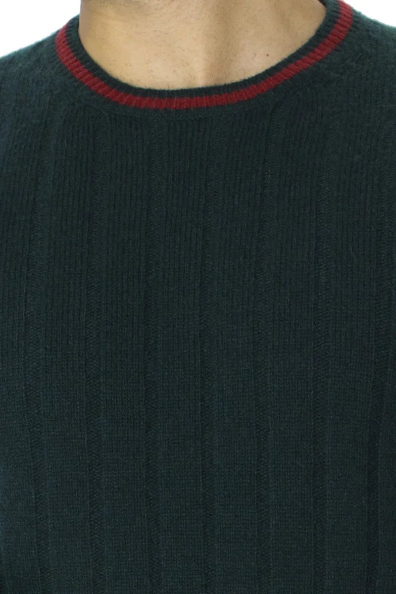 Maglione uomo Girocollo verde a coste