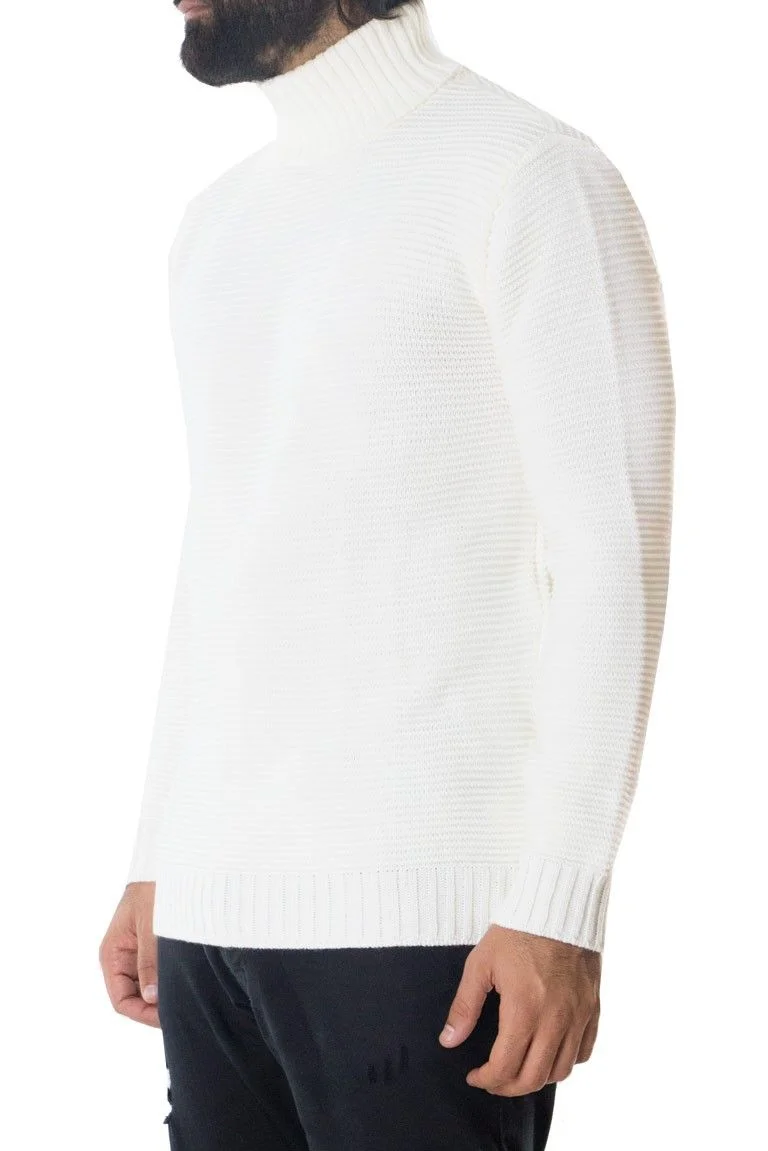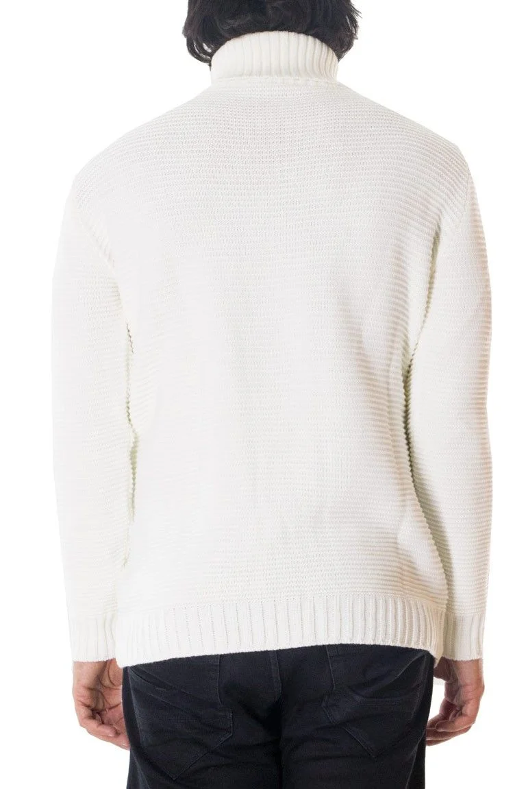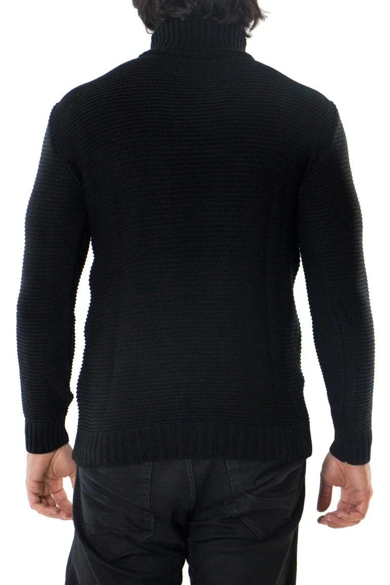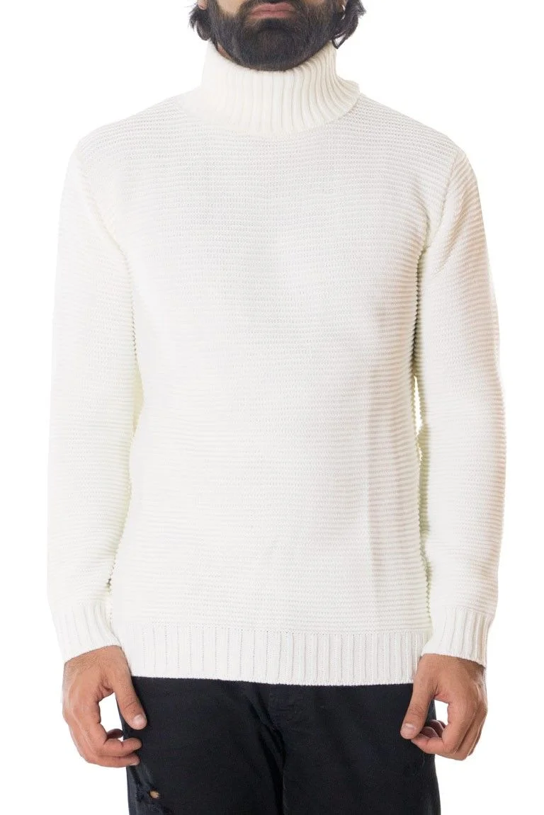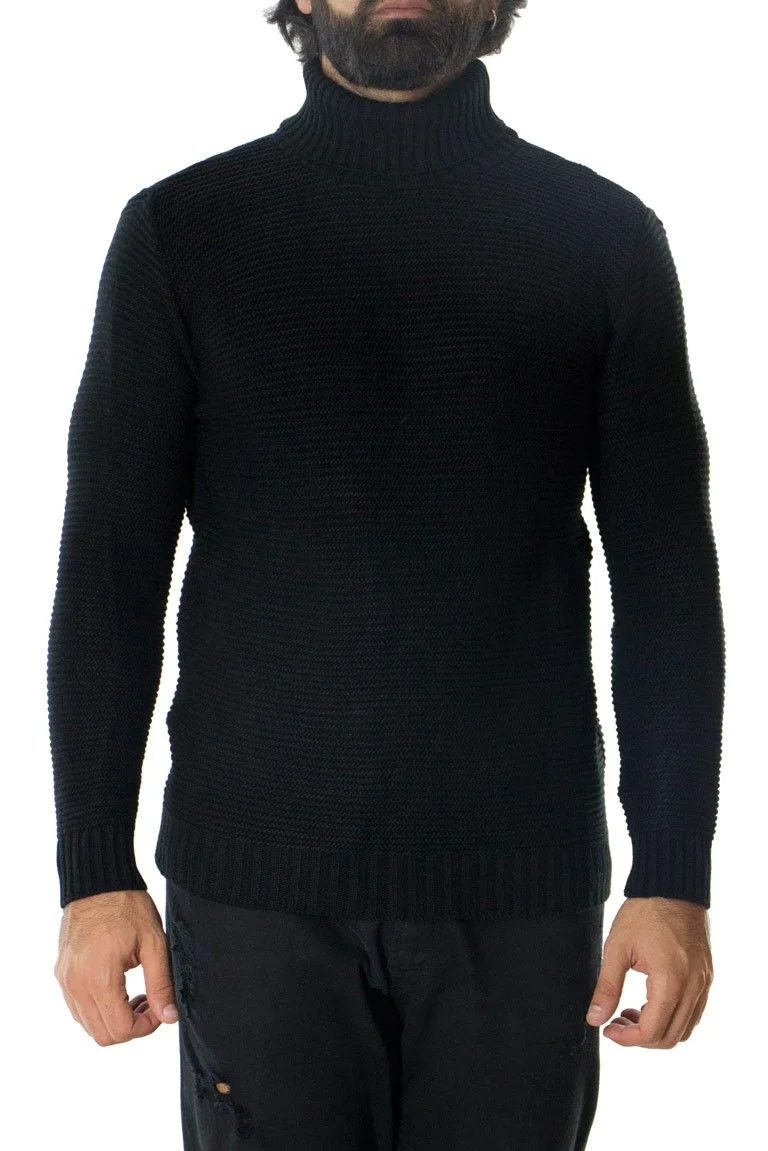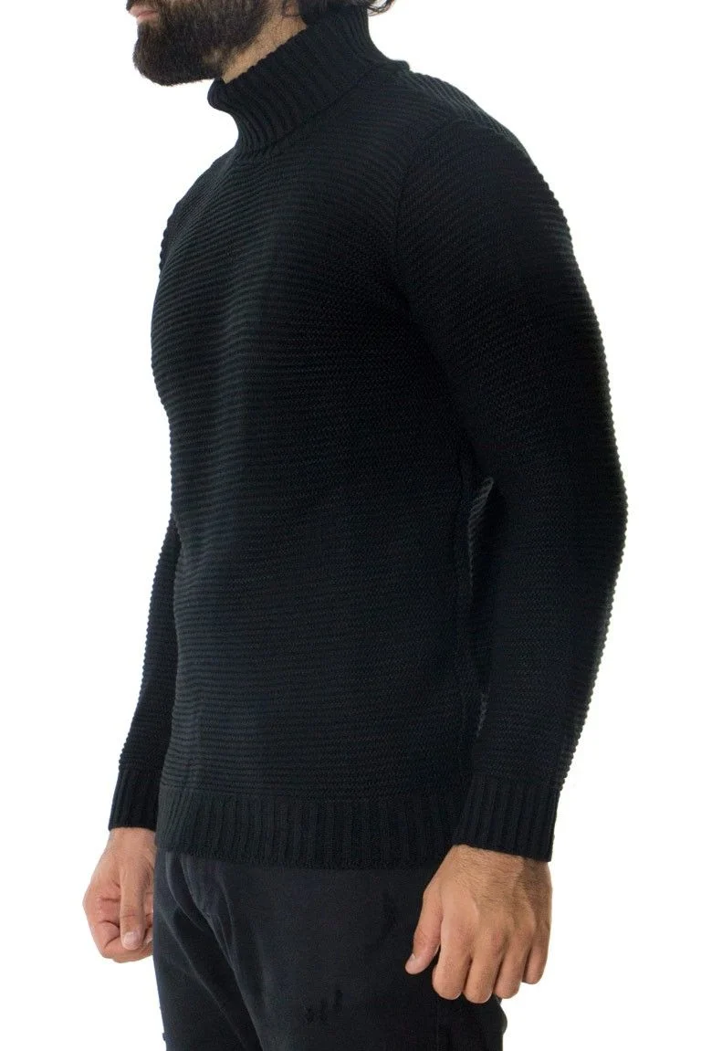 DETTAGLI : Maglione da uomo in lana grossa intrecciata stretto con collo alto maniche lunghe.