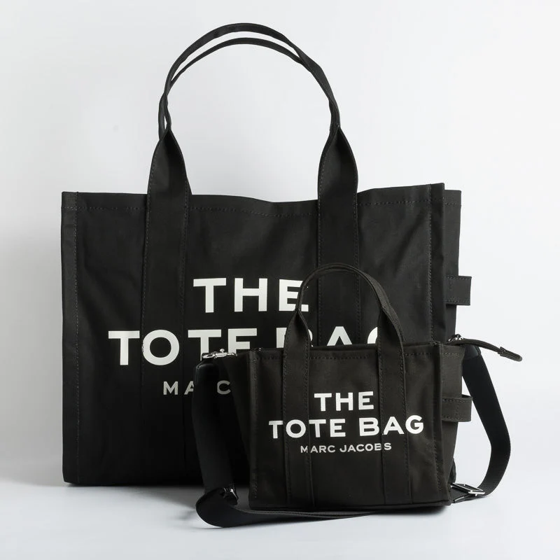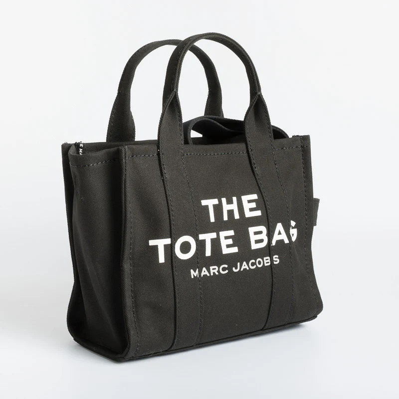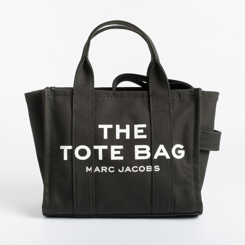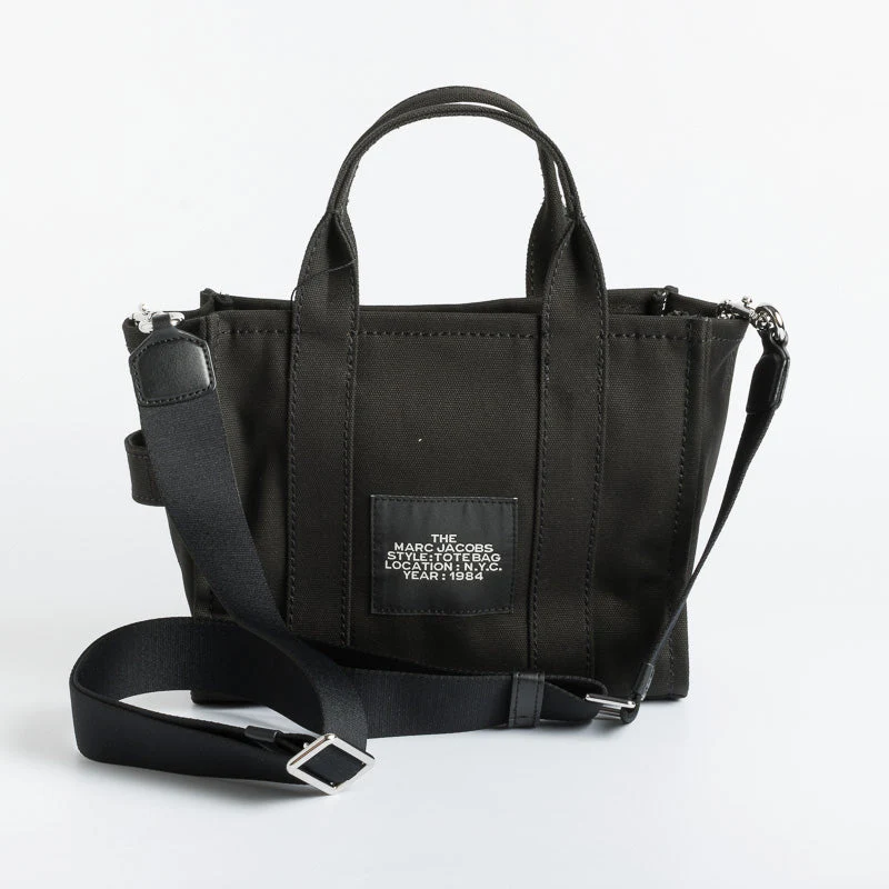 Borsa a tracolla e a mano di Marc Jacobs, realizzata in tessuto di colore nero. Interno cerato. Chiusura centrale tramite zip nera. Tracolla in tessuto regolabile di colore nero. Logo stampato di colore bianco nella parte anteriore della borsa.