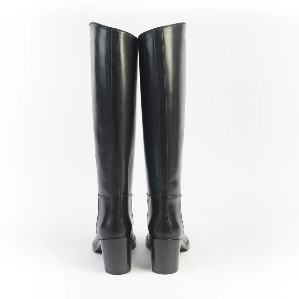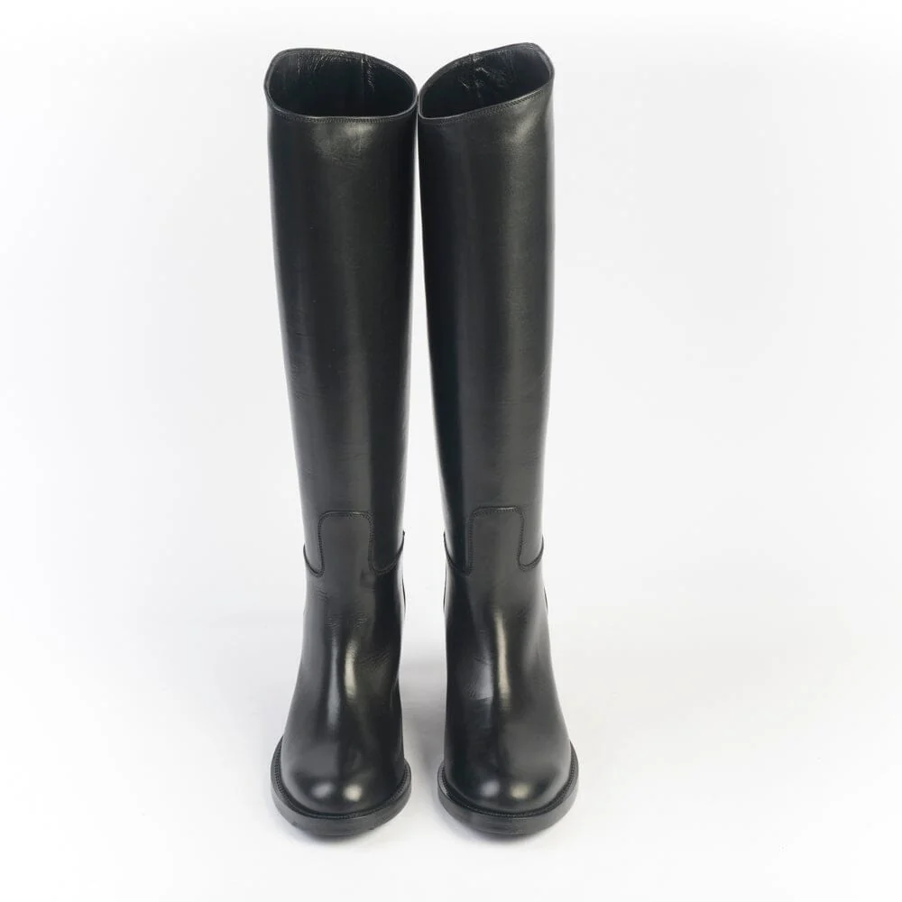Stivale realizzato da Maretto in esclusiva per CappellettoShop in pregiata pelle di vitello di colore nero. Forma rigida con calzata particolarmente comoda dettata dalle caratteristiche formidabili del pellame morbido sia al tatto che alla prova.