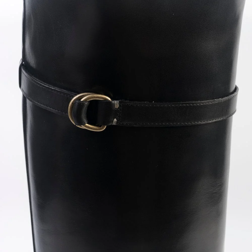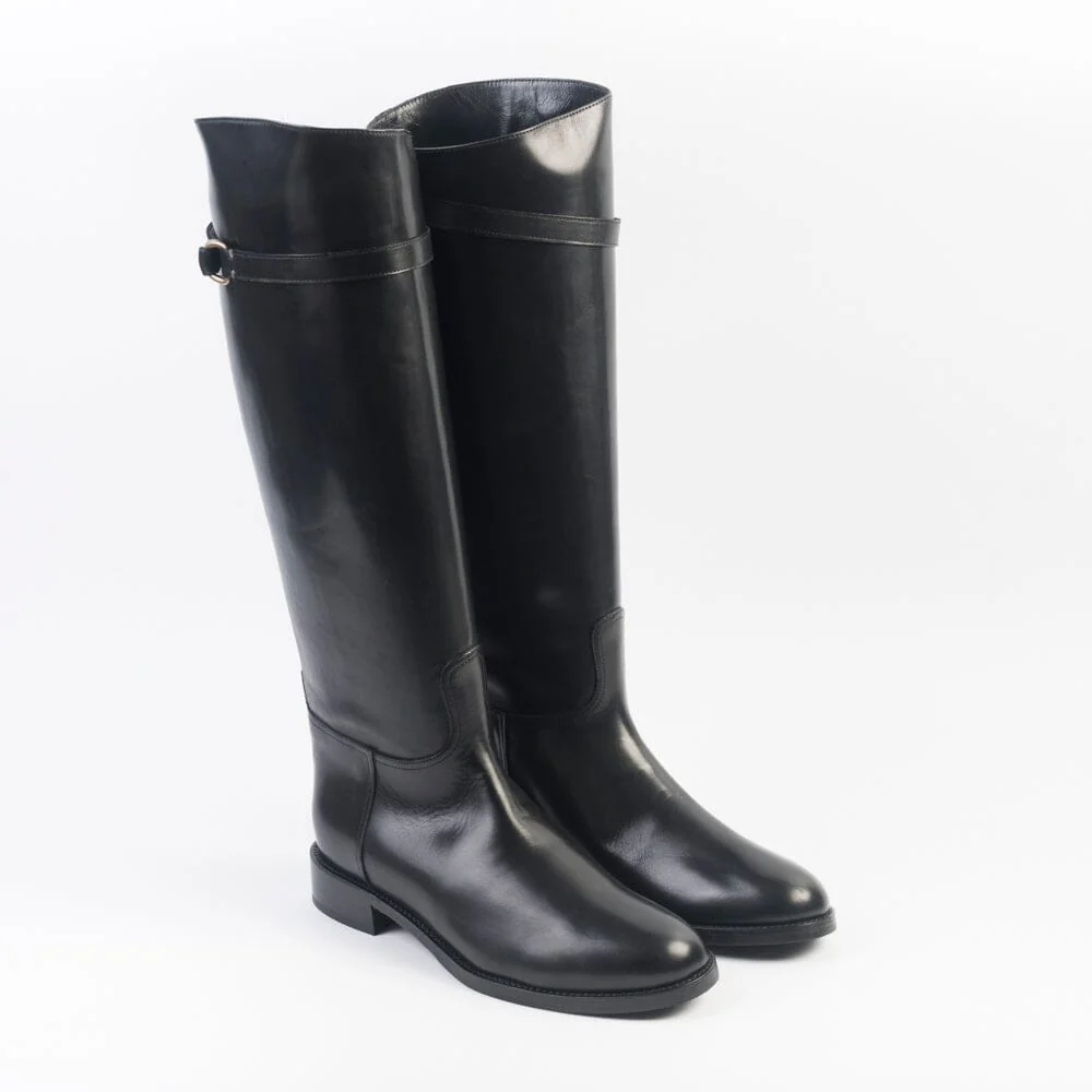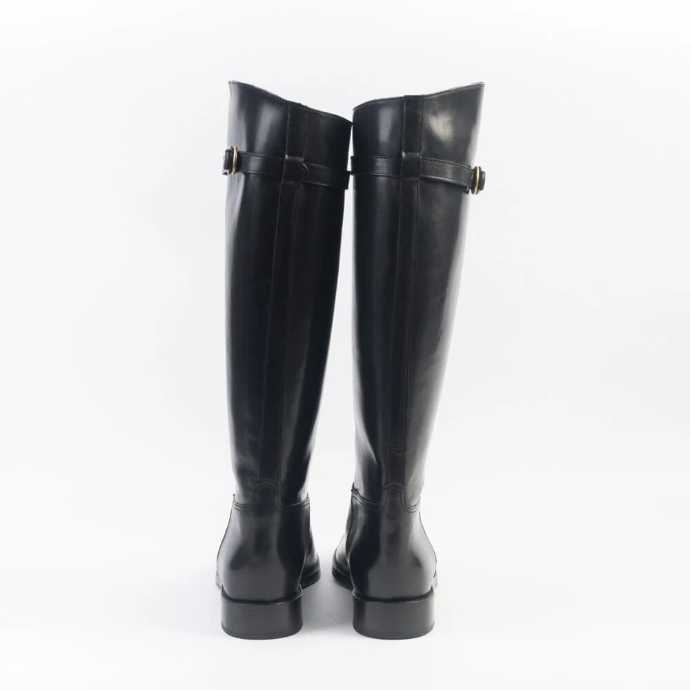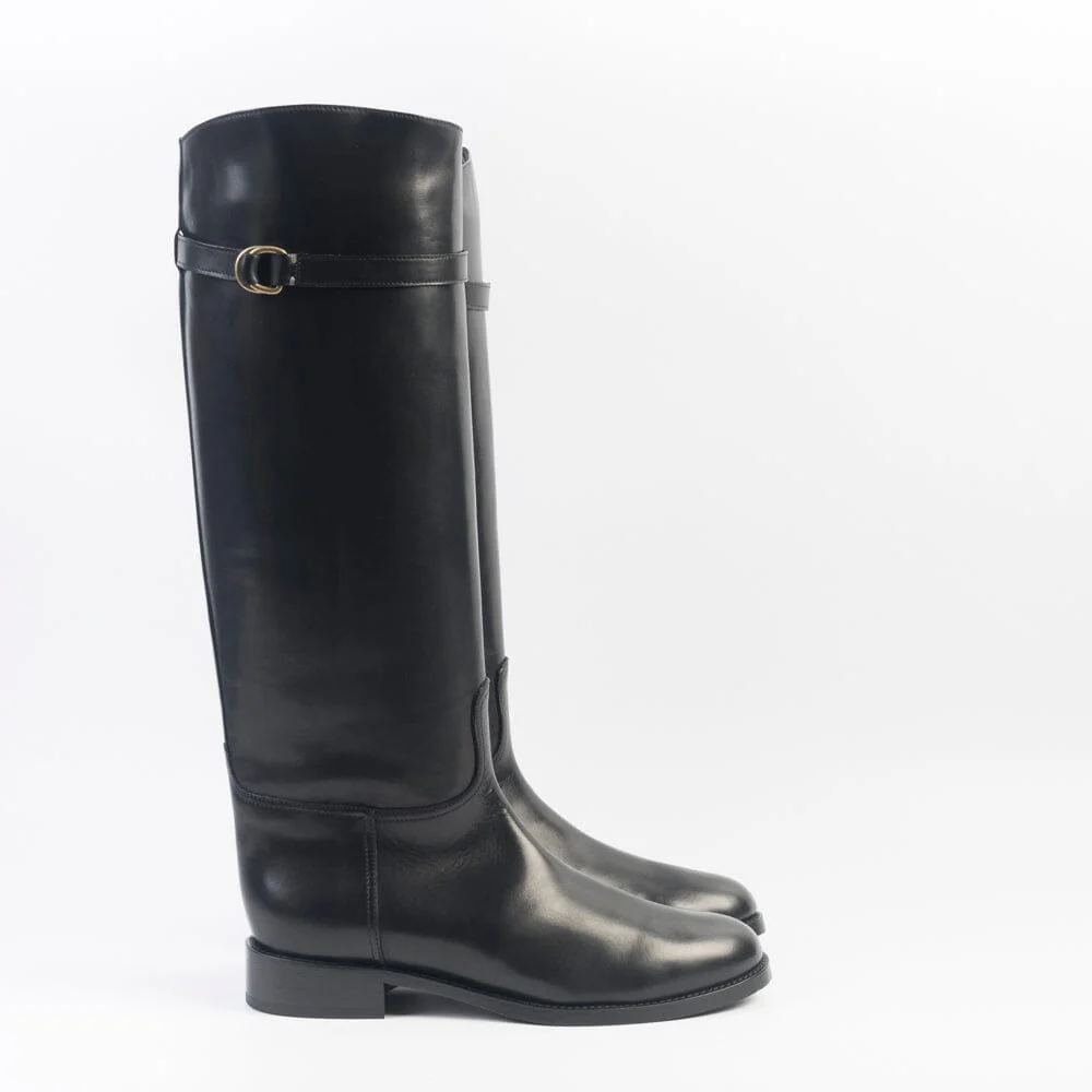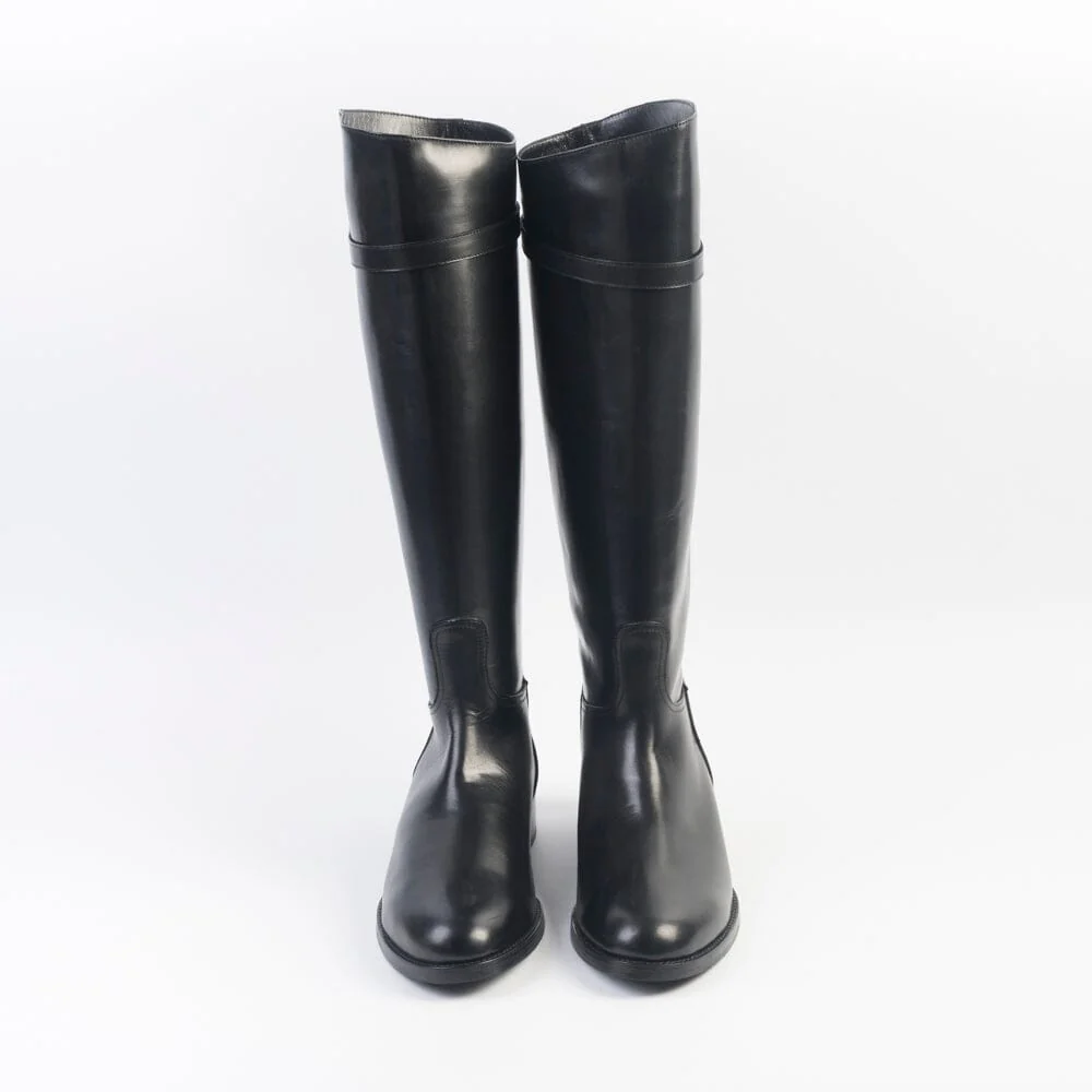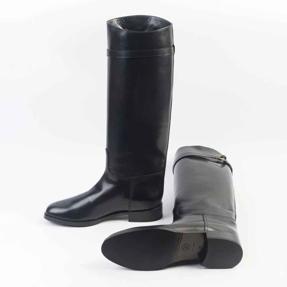 Stivale alla cavallerizza realizzato da Maretto in esclusiva per CappellettoShop in pregiata pelle di vitello di colore nero. Forma rigida con calzata particolarmente comoda dettata dalle caratteristiche formidabili del pellame morbido sia al tatto che alla prova.