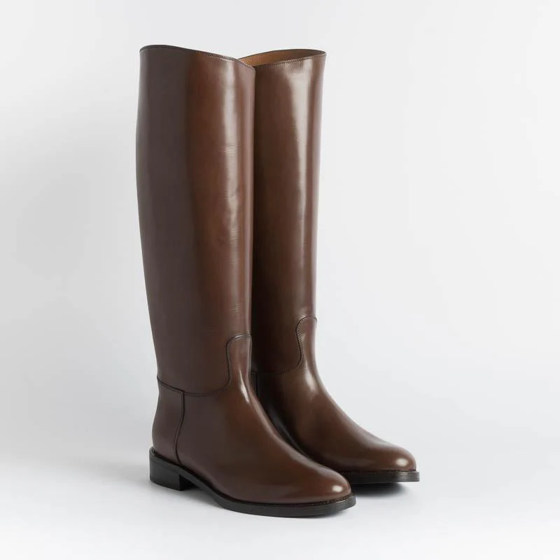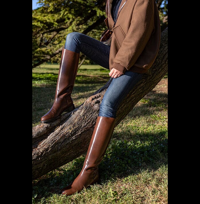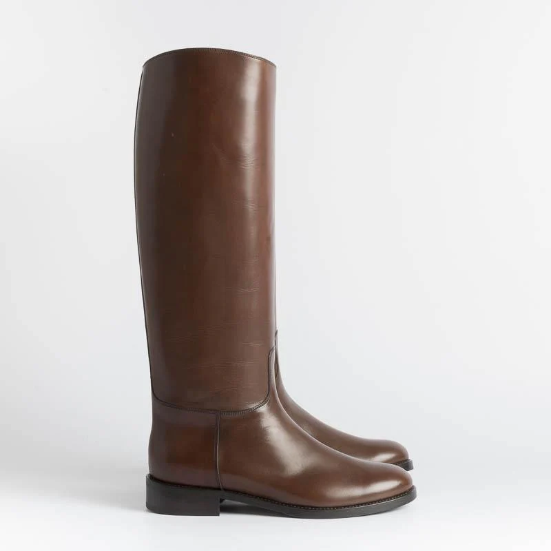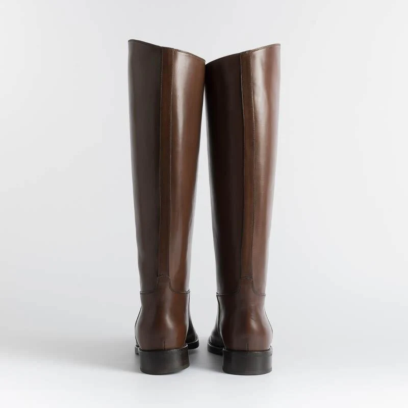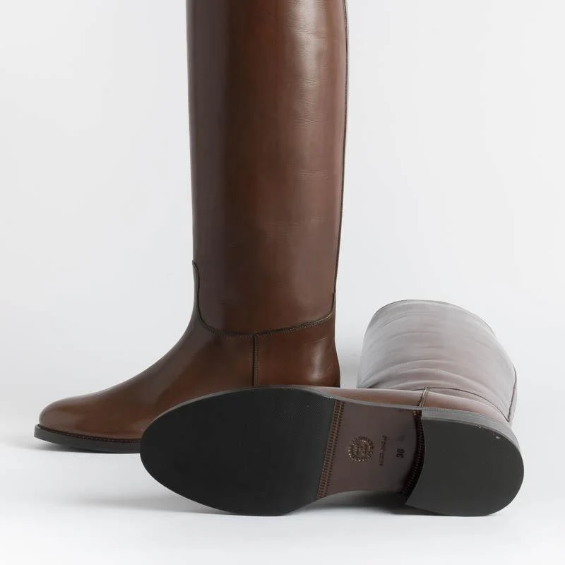 Stivale alla cavallerizza realizzato da Maretto in esclusiva per CappellettoShop in pregiata pelle di vitello di colore marrone. Forma rigida con calzata particolarmente comoda dettata dalle caratteristiche formidabili del pellame morbido sia al tatto che alla prova.