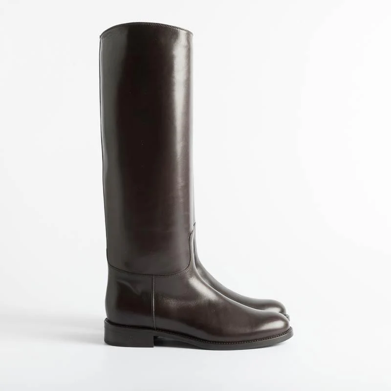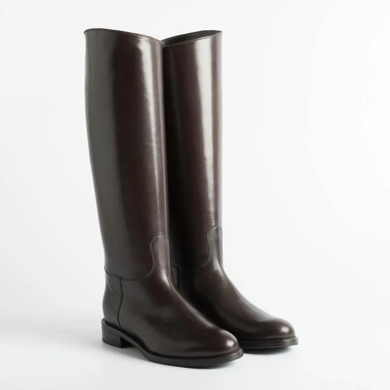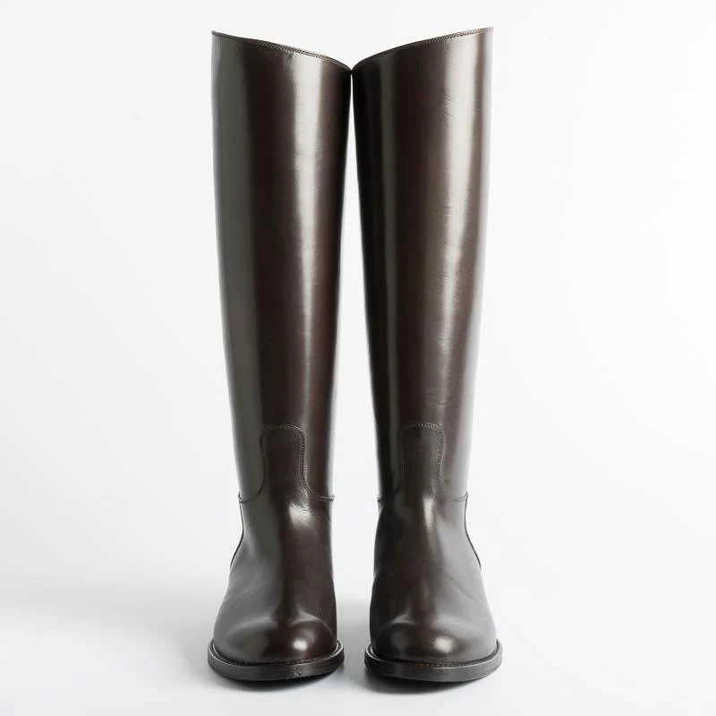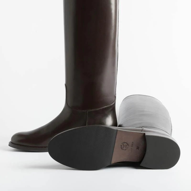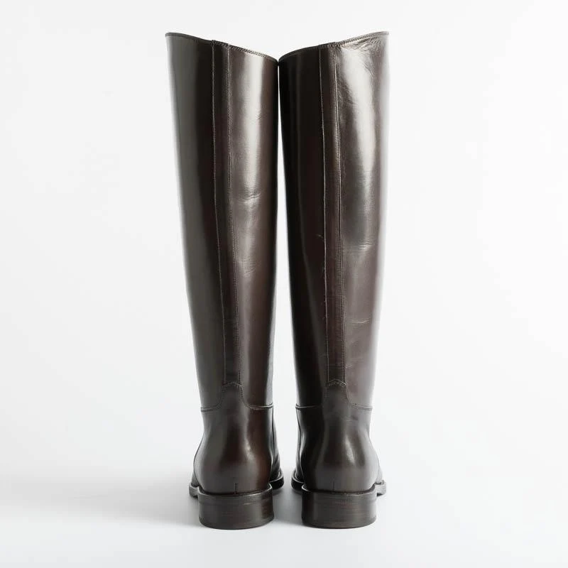 Stivale alla cavallerizza realizzato da Maretto in esclusiva per CappellettoShop in pregiata pelle di vitello di colore testa di moro. Forma rigida con calzata particolarmente comoda dettata dalle caratteristiche formidabili del pellame morbido sia al tatto che alla prova.