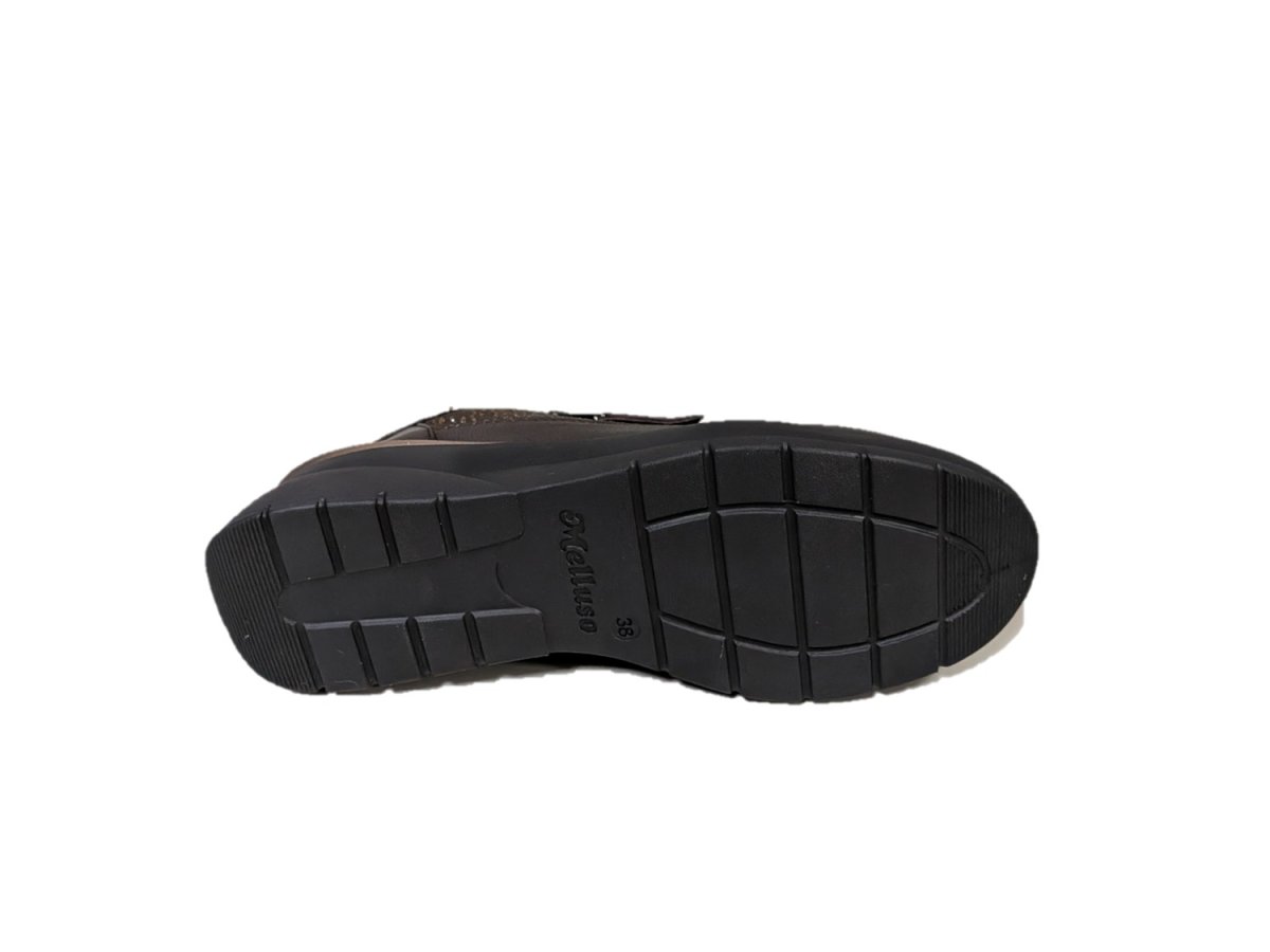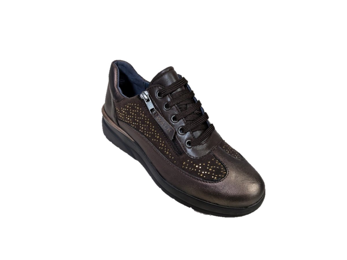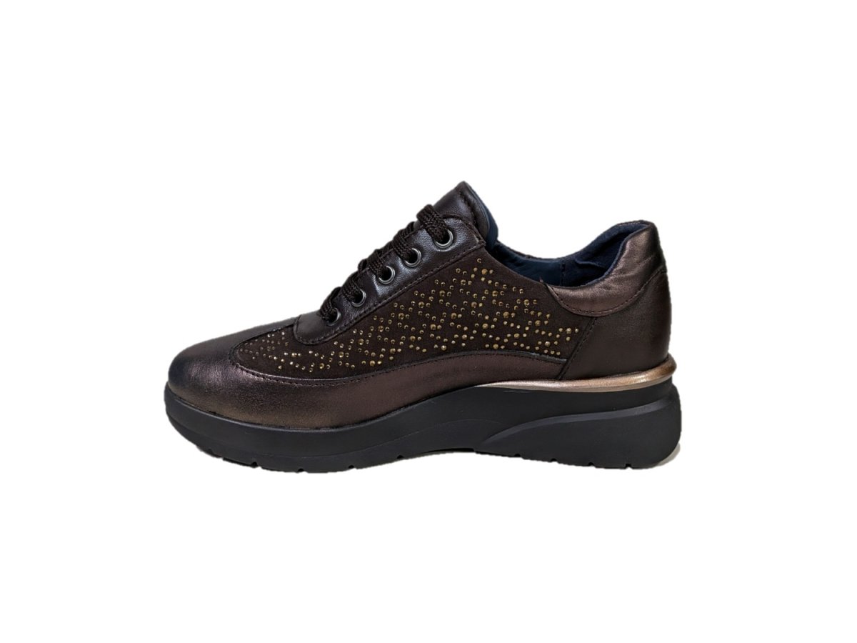 Sneakers in pelle e tessuto colore marrone, zeppa di 5cm, suola in gomma leggera, sottopiede estraibile