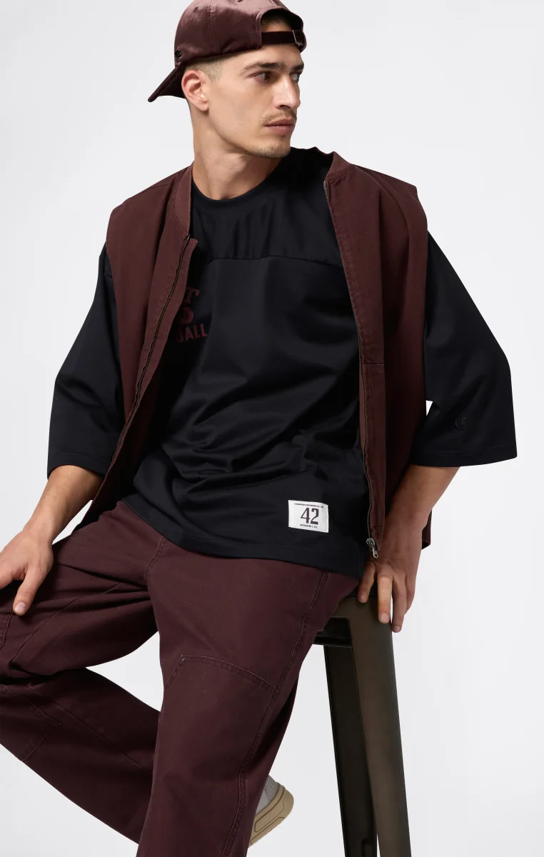 This 3/4 sleeve crewneck T-shirt with wide sleeves reinterprets the vintage look of American sports uniforms with a modern cut. Made from 300 g/m² nylon-cotton jersey, it blends comfort and structure—perfect for a bold, laid-back style. Part of the Index & Archives Lighthouse line, a project that revisits Champion’s heritage with contemporary flair, bringing archival pieces to life through updated details and proportions.@@@Fabric: Nylon Jersey 300 g/m² |Composition: 63% Cotton, 37% Polyamide |3/4 sleeves |Fit: Custom Fit – contemporary cut balancing structure and comfort, with wide shoulders and straight silhouette