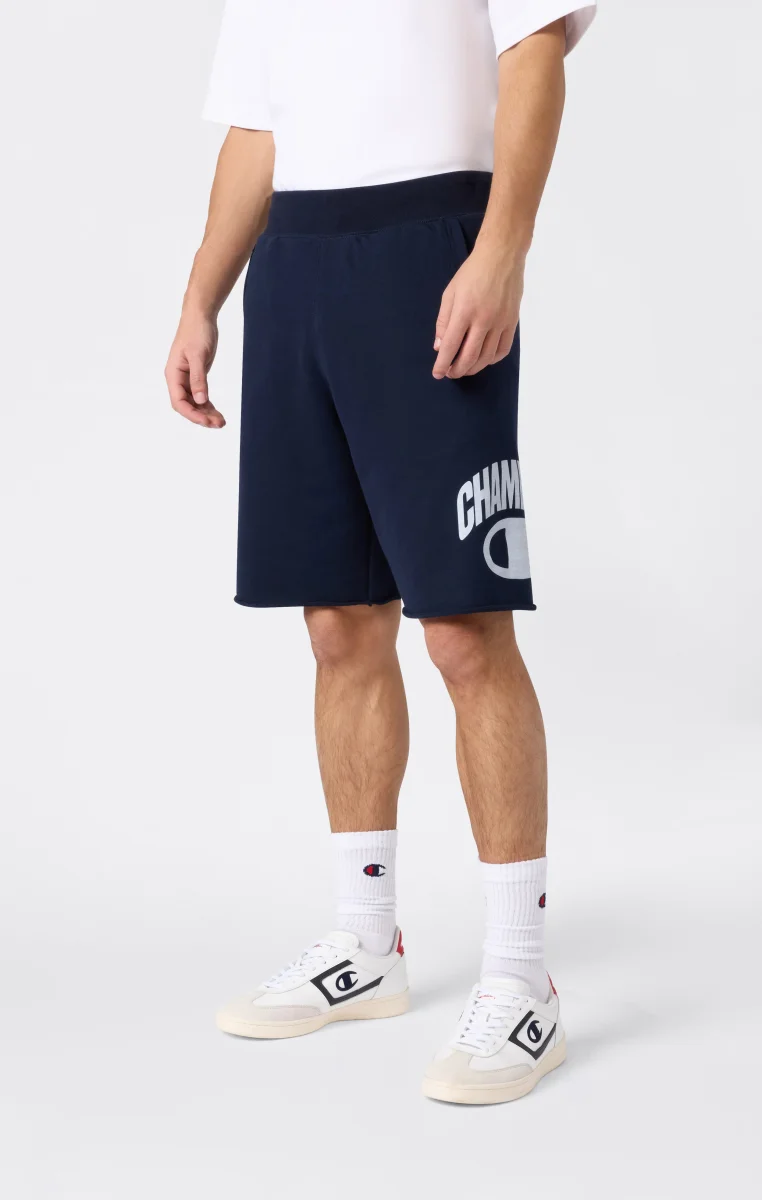 These men’s Icons long bermuda shorts reinterpret a Champion wardrobe classic with a clean, bold aesthetic. Made from super heavy compact poly terry cotton-blend fabric, they deliver a substantial structure and comfortable feel for everyday wear. The design features a 9” length, an elasticated waistband with adjustable drawstring and a Champion graphic printed on the leg, a distinctive detail that reflects the brand’s heritage DNA. The Standard Fit ensures a regular, versatile silhouette.@@@Standard Fit, comfortable regular silhouette |Super heavy compact poly terry fabric |Composition: 67% Cotton, 33% Polyester |Weight: 340 g/m² |9” length |Elasticated waistband with drawstring |Side pockets |Champion graphic printed on the leg