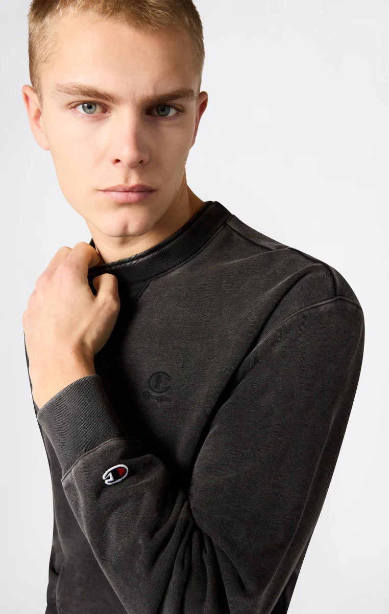 This men’s crewneck sweatshirt reinterprets a Champion wardrobe icon with a clean and contemporary aesthetic. Made from heavy soft compact terry in a cotton and polyester blend, it features a distinctive washed effect that gives the garment an authentic, worn-in look. The Relax Fit ensures everyday comfort, while the embroidered Champion logo on the chest adds a subtle yet recognizable heritage touch.@@@Relax Fit for a comfortable, laid-back feel |Heavy soft compact terry fabric in a cotton-polyester blend |Composition: 70% Cotton, 30% Polyester |Fabric weight: 310 g/m² |Crewneck design |Ribbed cuffs and hem |Embroidered Champion logo on the chest |Unbrushed interior