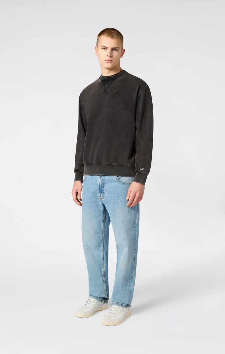Men’s Crewneck Sweatshirt with Embroidered Logo and Washed Effect Icons