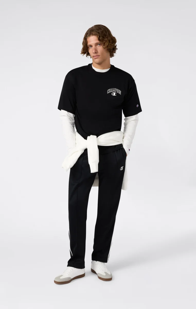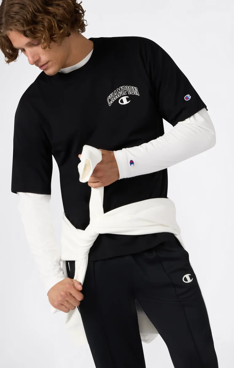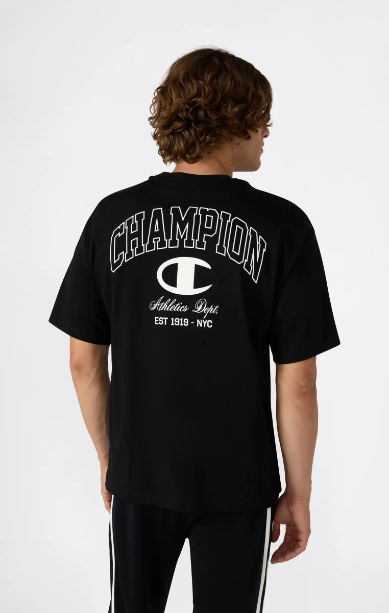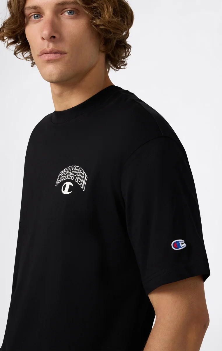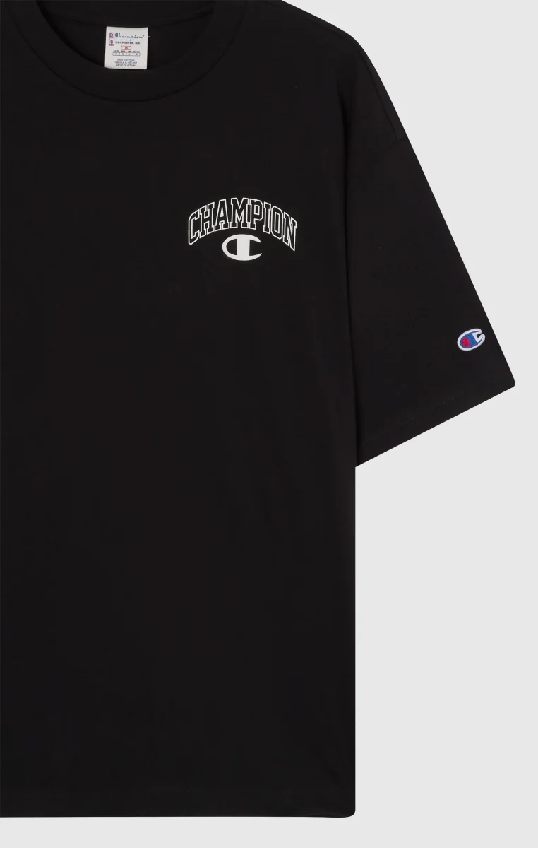 Made from compact combed cotton jersey, this T-Shape fit T-shirt stands out for its boxy design and college-style chest graphic. An authentic streetwear piece that blends varsity spirit and contemporary inspiration with a relaxed, modern cut.@@@Fabric: Compact combed cotton jersey, weight: 200 g/m² |Composition: 100% Cotton |T-Shape cut with wide shoulders and boxy fit |College-style front graphic |Ribbed collar |T-Shape cut with wide shoulders and boxy fit