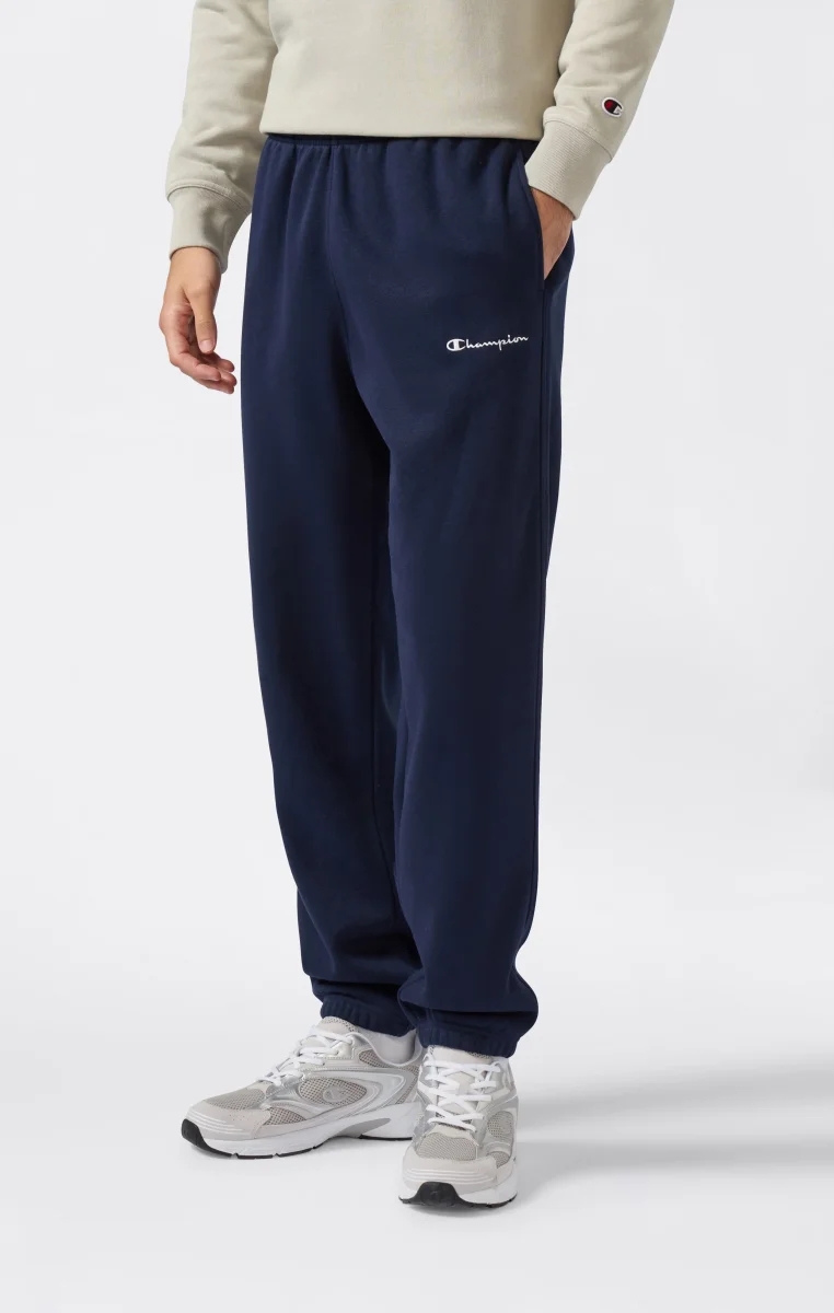 These cuffed pants from the Icons line combine clean athletic style with the comfort of heavyweight cotton. Made from 280 g/m² compact fleece, they offer structure, warmth, and softness—ideal for everyday wear. Perfect for lounging or casual use, they feature an elastic waistband, vertical side pockets, and a discreet embroidered Champion logo on the leg. The Standard Fit ensures a natural, comfortable silhouette.@@@Fabric: Compact and soft fleece – 280 g/m² |Composition: 70% Cotton / 30% Polyester |Brushed interior for superior thermal comfort |Elasticated waistband |Elasticated leg hems |Inserted side pockets |Embroidered Champion logo on left leg |Fit: Standard Fit – soft and comfortable