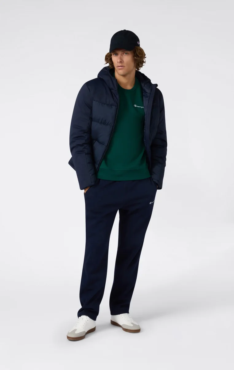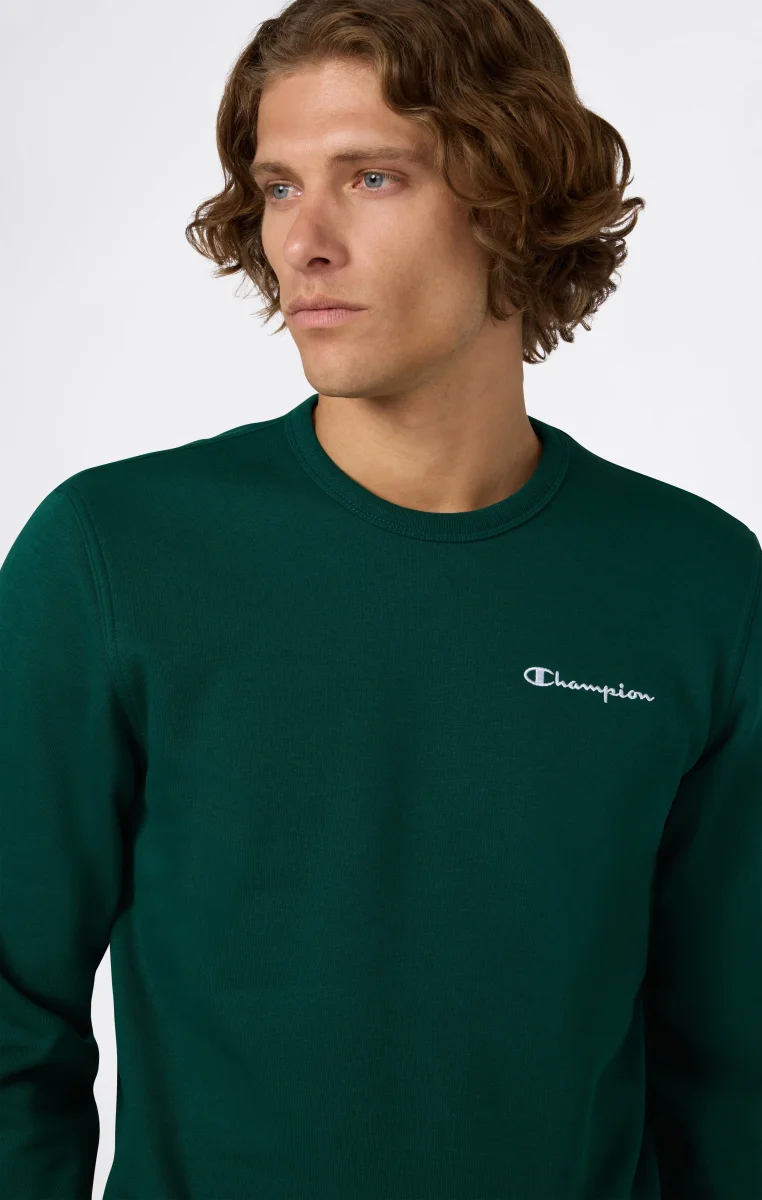 A Champion essential, perfect for every season. This crewneck sweatshirt from the Icons line is made from 310 g/m² soft, compact fleece, with a brushed interior that adds extra warmth and comfort. The cotton-polyester blend offers the ideal balance of breathability, durability, and softness. Finished with an embroidered Champion logo on the chest and a C logo on the sleeve, it’s perfect worn on its own or layered under a jacket for a clean, authentic look.@@@Fabric: Heavyweight compact and soft fleece – 310 g/m² |Composition: 70% Cotton / 30% Polyester |Brushed interior for superior thermal comfort |Ribbed collar, cuffs and hem |Embroidered Champion logo on the chest |Fit: Standard Fit – versatile and comfortable with standard width and length. Closely follows the body without clinging. Regular shoulder cut.