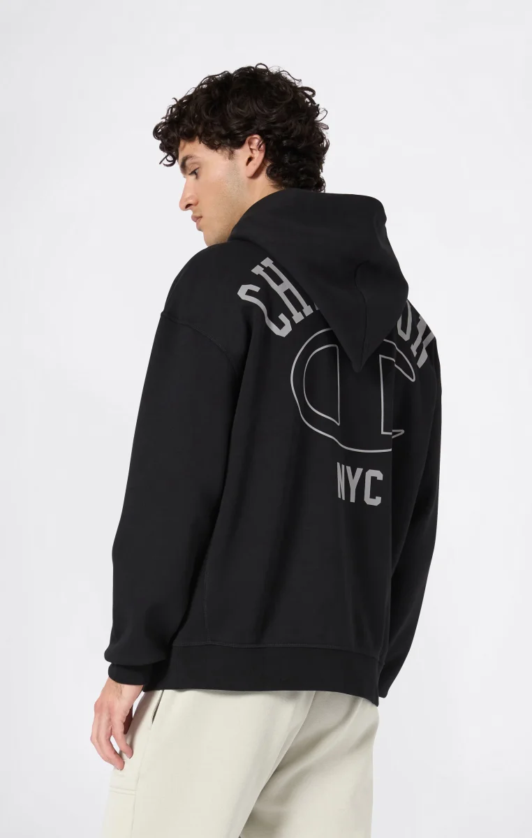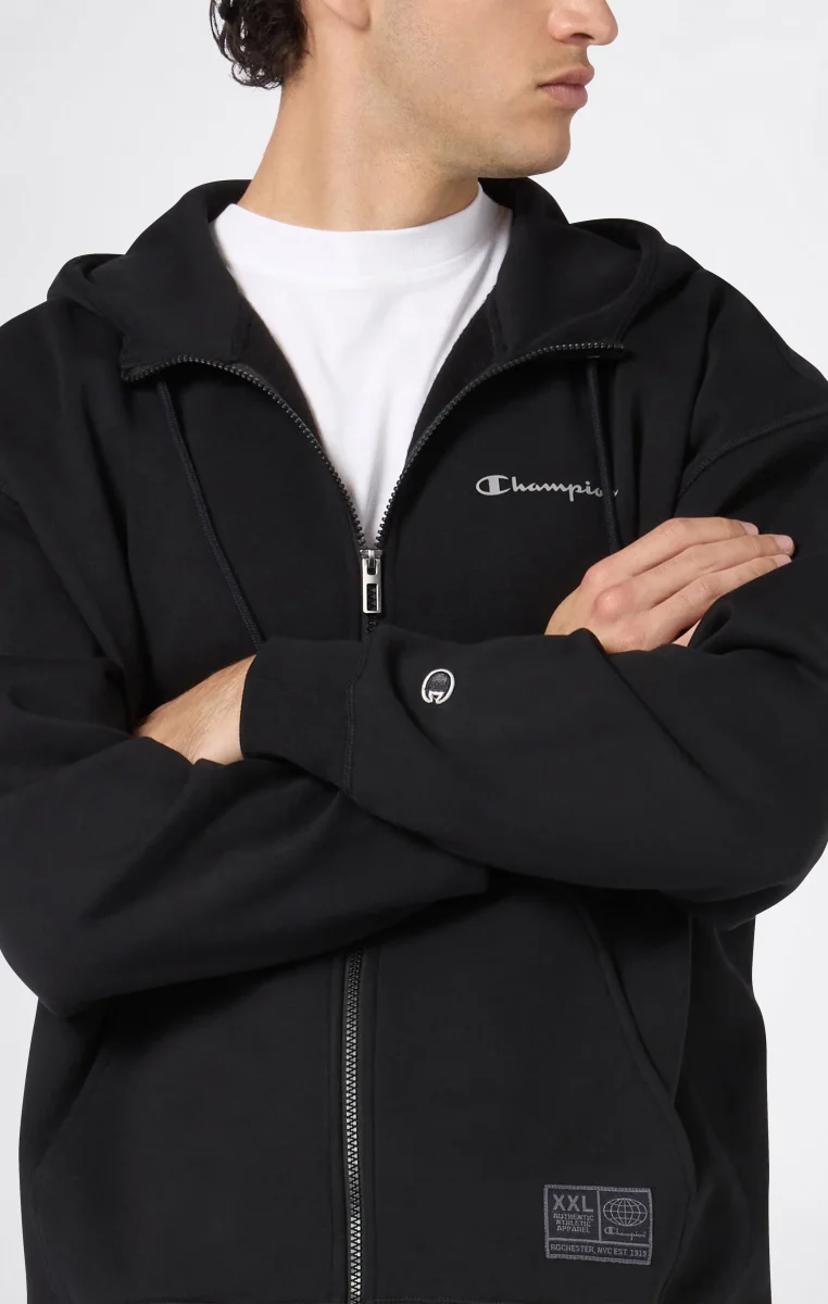 Born from the spirit of ’90s street culture, this full-zip sweatshirt is part of the Urban Contemporary collection, inspired by the rise of hip hop and the deep connection between clothing and community. Made from heavyweight brushed fleece, it combines authentic style and retro graphics with a loose, comfortable fit for a look that blends heritage aesthetic and urban spirit.@@@Fabric: Compact and soft cotton-blend fleece, weight: 340 g/m² |Composition: 85% Cotton, 15% Polyester |Brushed interior |Full zip |Large printed logo on the back |Loose Fit: Loose fit with dropped shoulder, wide sleeve, and regular length.