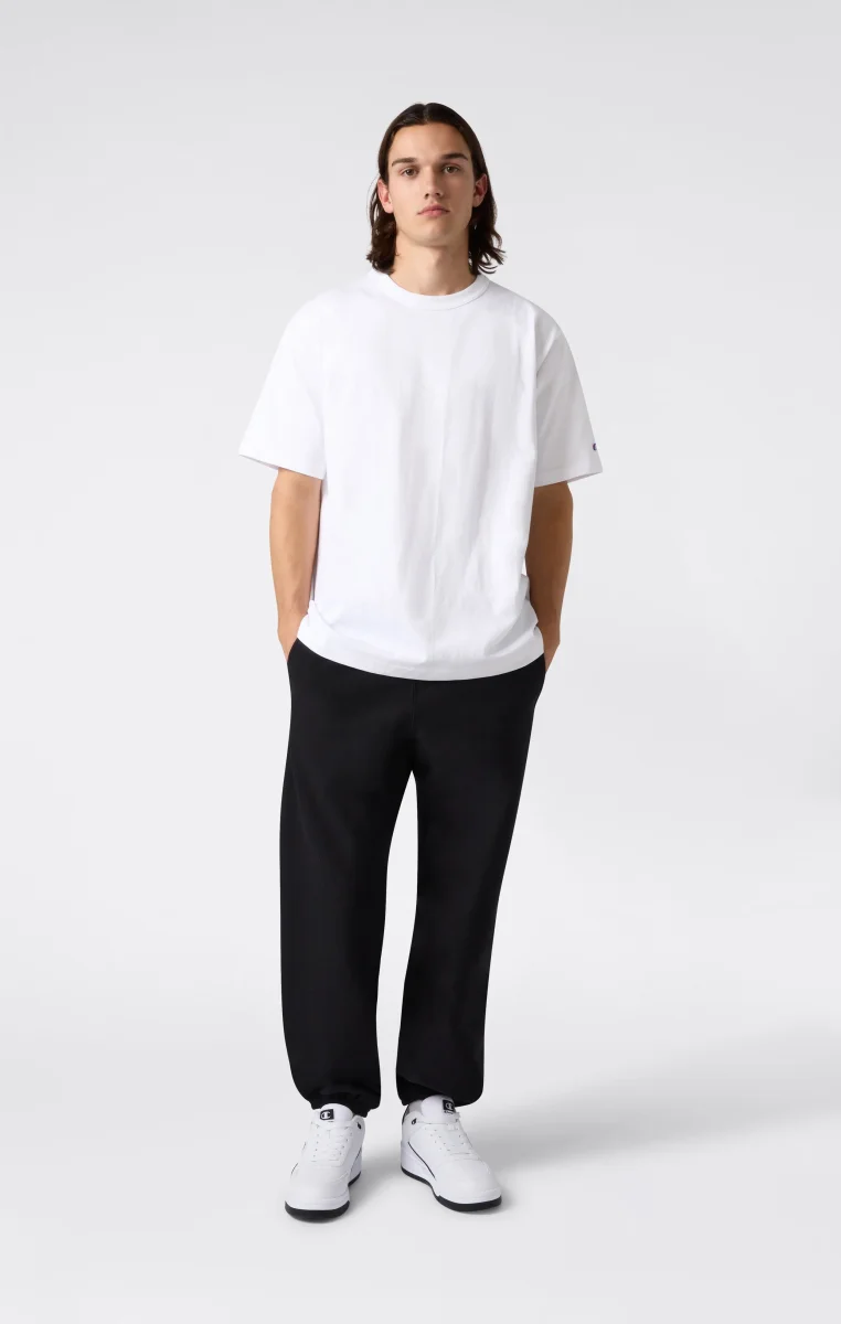 Classic and durable, these Reverse Weave® pants celebrate Champion’s authentic heritage. Made in the USA from heavyweight Terry Fleece with a brushed interior, they combine exceptional comfort and durability. Ribbed side panels enhance mobility, while the elastic cuffs ensure a secure fit. Part of the Made in USA collection, designed for those who seek premium quality and original spirit. Reverse Weave® is Champion’s patented 1930s technology: a sturdy construction that resists vertical shrinkage and maintains its shape over time.@@@Fabric: Terry Fleece, weight 425 g/m² |Composition: 90% cotton, 10% polyester |Brushed interior |Front pockets |Back pocket |Reverse Weave® patented by Champion in the 1930s: a durable construction that resists vertical shrinkage and maintains shape and structure over time |Ribbed side seams |Elasticated leg cuffs |Custom Fit: comfortable fit