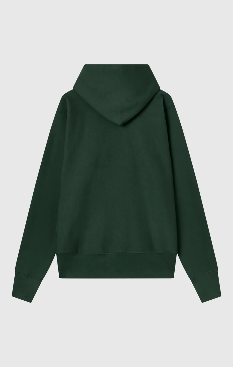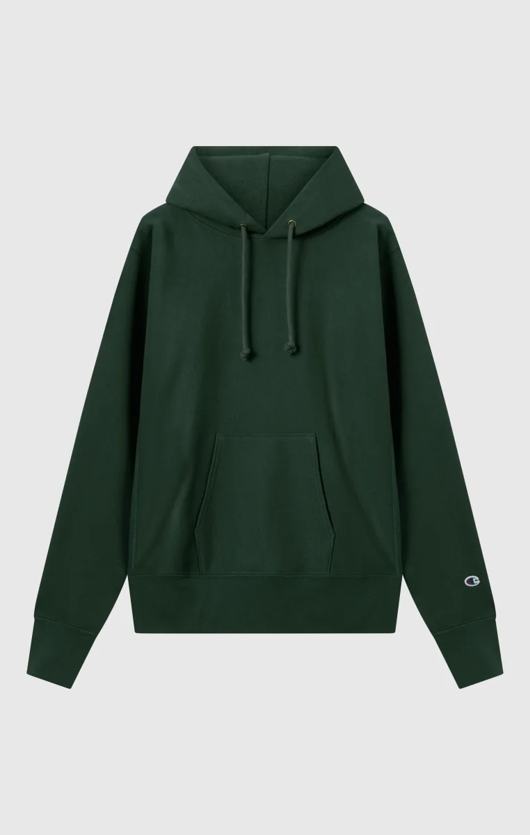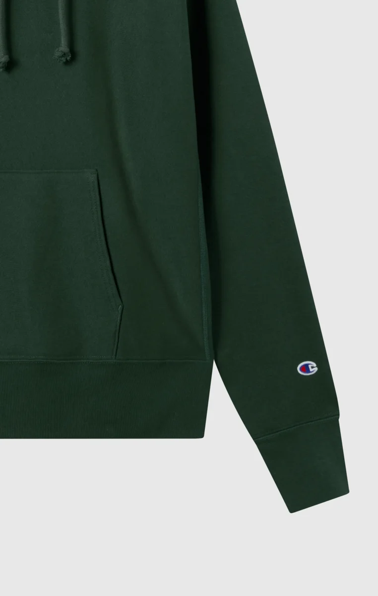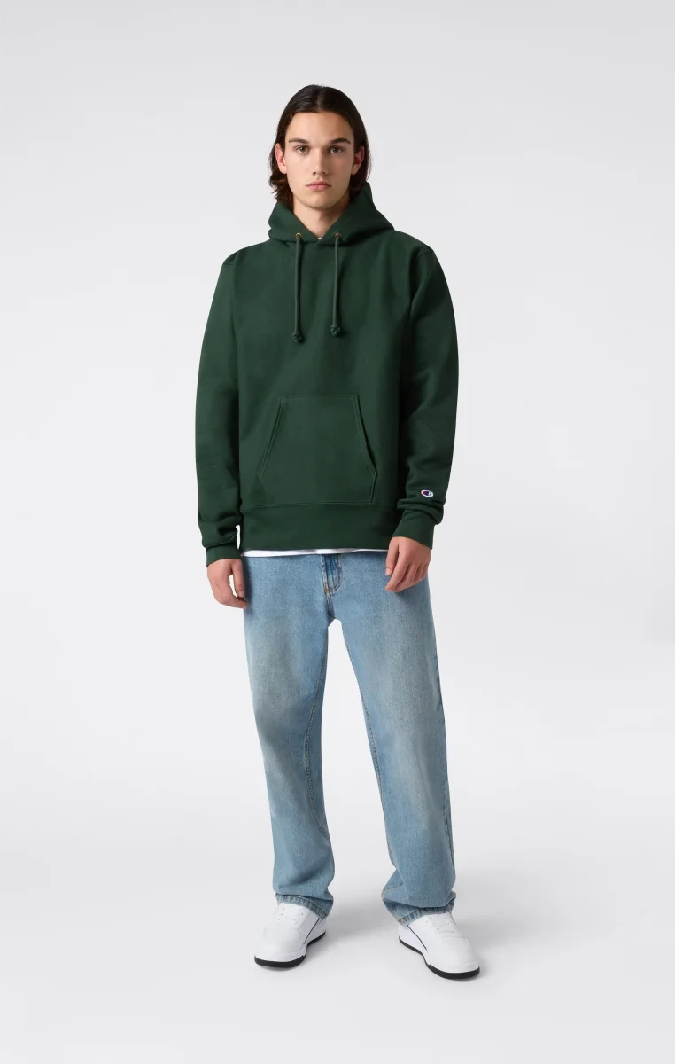 Champion authenticity takes shape in this Reverse Weave® hoodie, part of the Made in USA collection. Made from heavyweight Terry Fleece with a brushed interior, it provides warmth and durability. The kangaroo pocket and adjustable hood make it perfect for everyday wear. The Reverse Weave® construction, patented by Champion in the 1930s, prevents vertical shrinkage and helps maintain its shape over time. A premium essential with true athletic DNA.@@@Fabric: Terry Fleece, weight 425 g/m² |Composition: 90% Cotton, 10% Polyester |Brushed interior |Reverse Weave® technology: patented horizontal anti-shrink construction by Champion |No shoulder seams |Kangaroo pocket |Adjustable hood with drawstring |Made in USA |Fit: Custom Fit – relaxed, with wide shoulders and comfortable structure