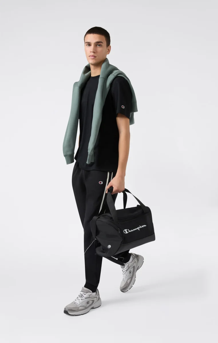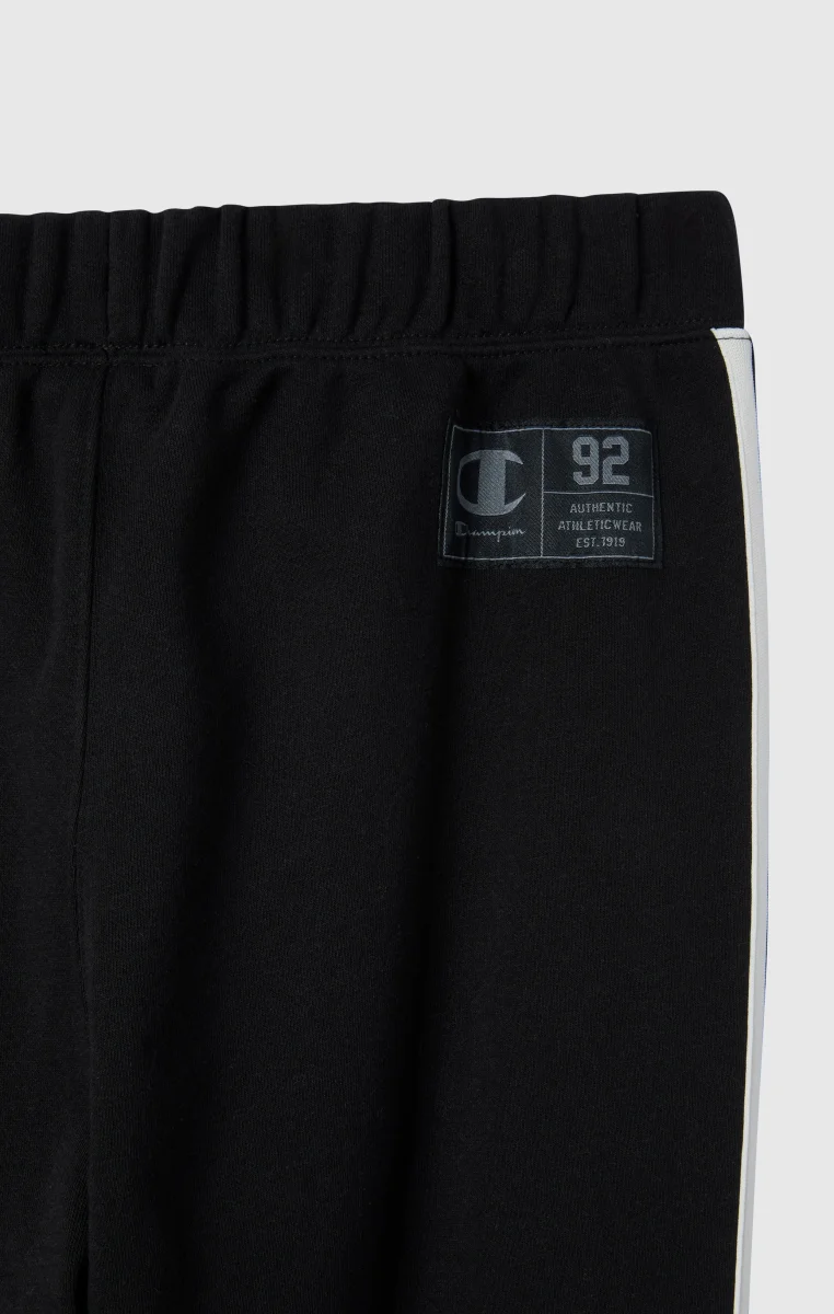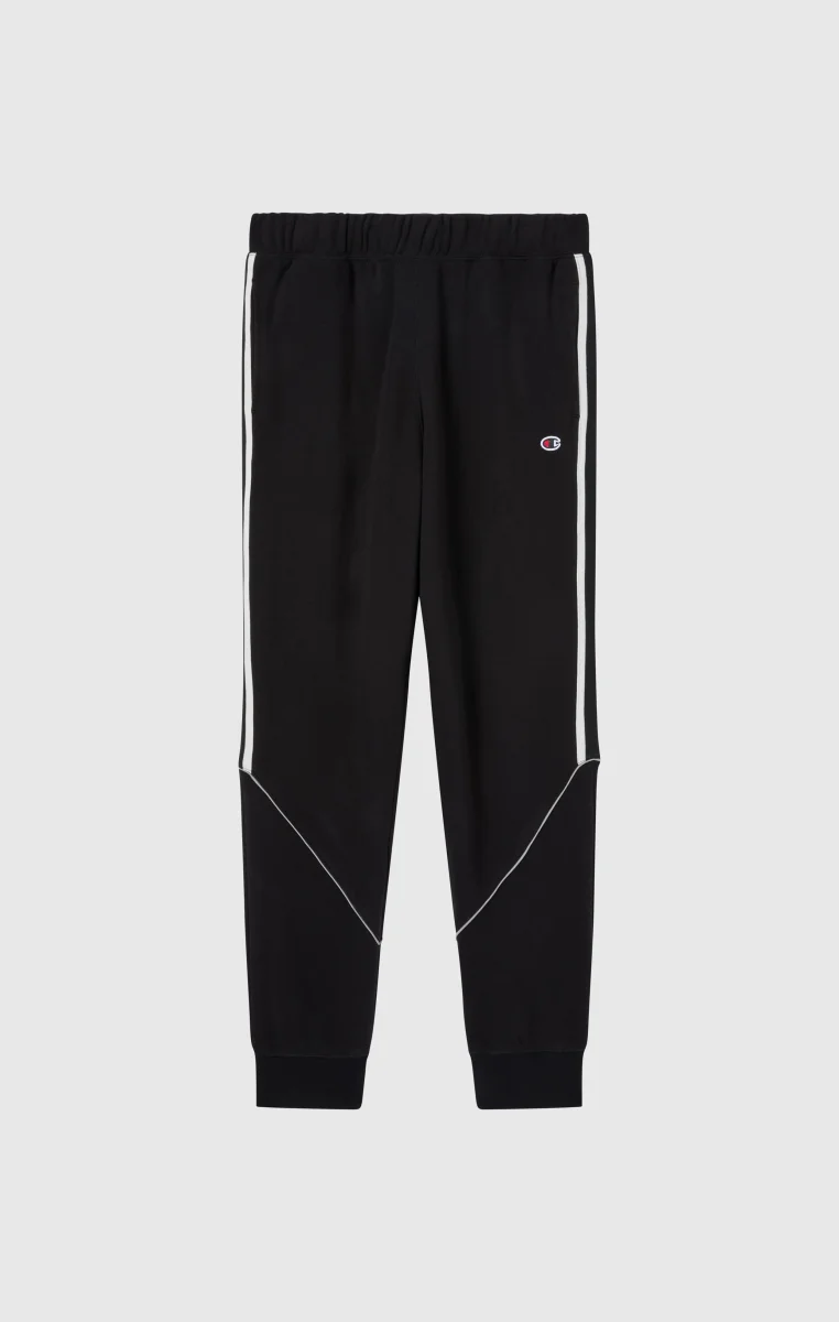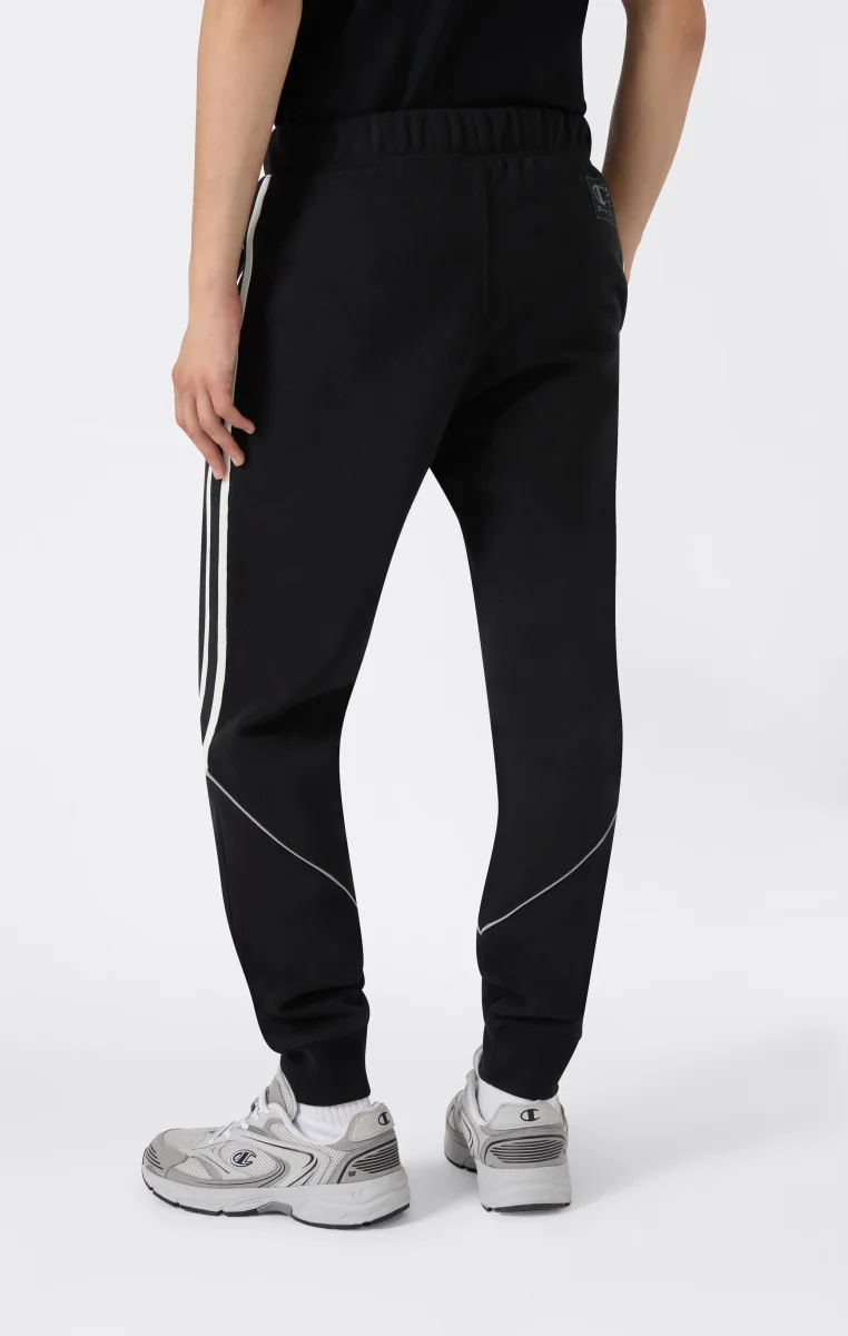 Inspired by American street sport culture, these pants combine comfort and urban style. Made from soft fleece with a brushed interior, they feature hidden front pockets for a clean, functional look. Shiny fabric inserts with contrast piping and knitted side bands add a technical and graphic touch.@@@Fabric: Compact and soft cotton-blend fleece with inserts |Composition: 70% cotton / 30% polyester, inserts 100% polyester |Weight: 280 g/m² (fleece) + 175 g/m² (inserts) |Black and white knitted band |Embroidered logo on the leg |Brushed interior |Front pockets |Fit: Standard Fit: Soft and comfortable