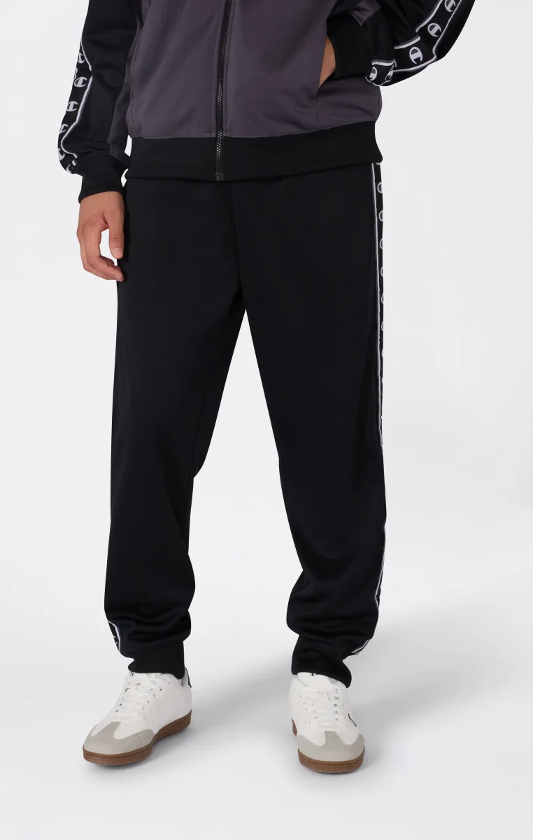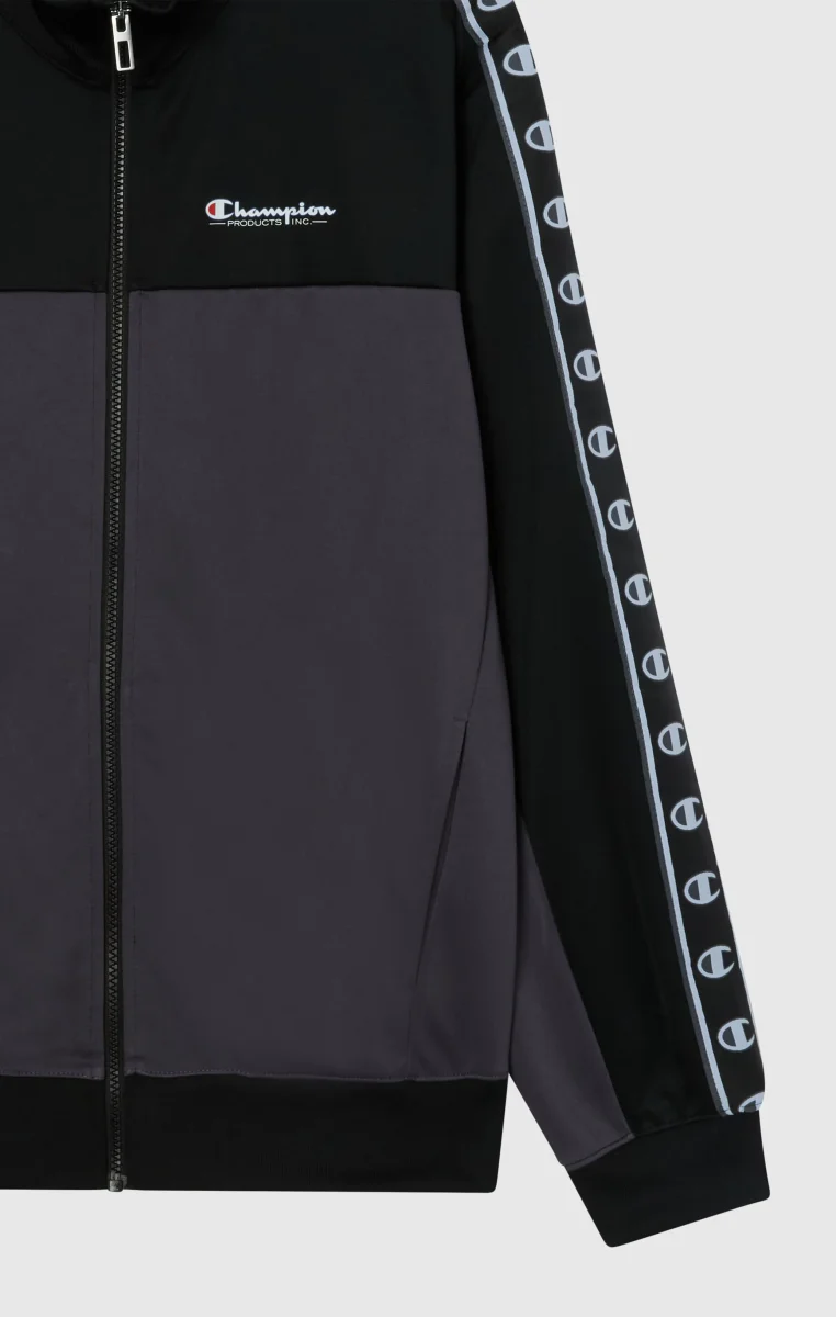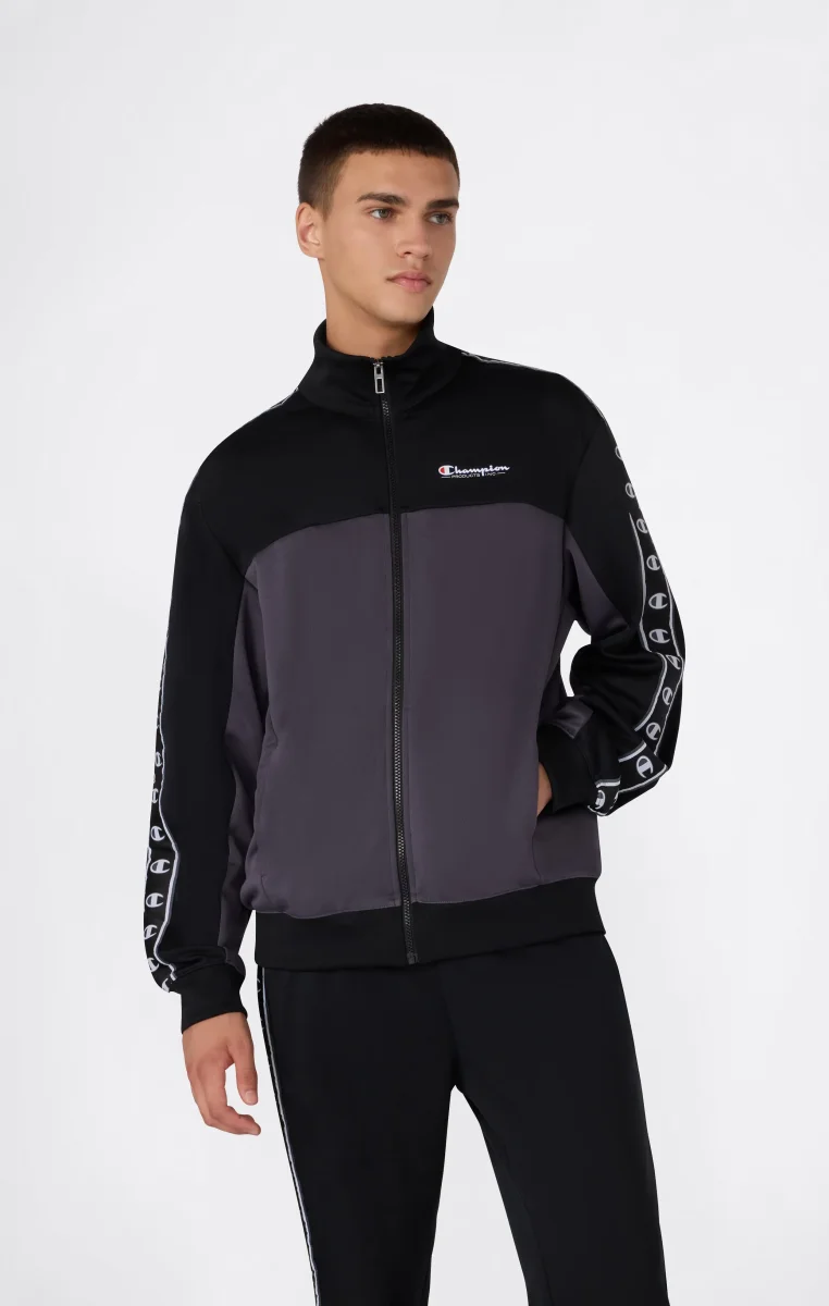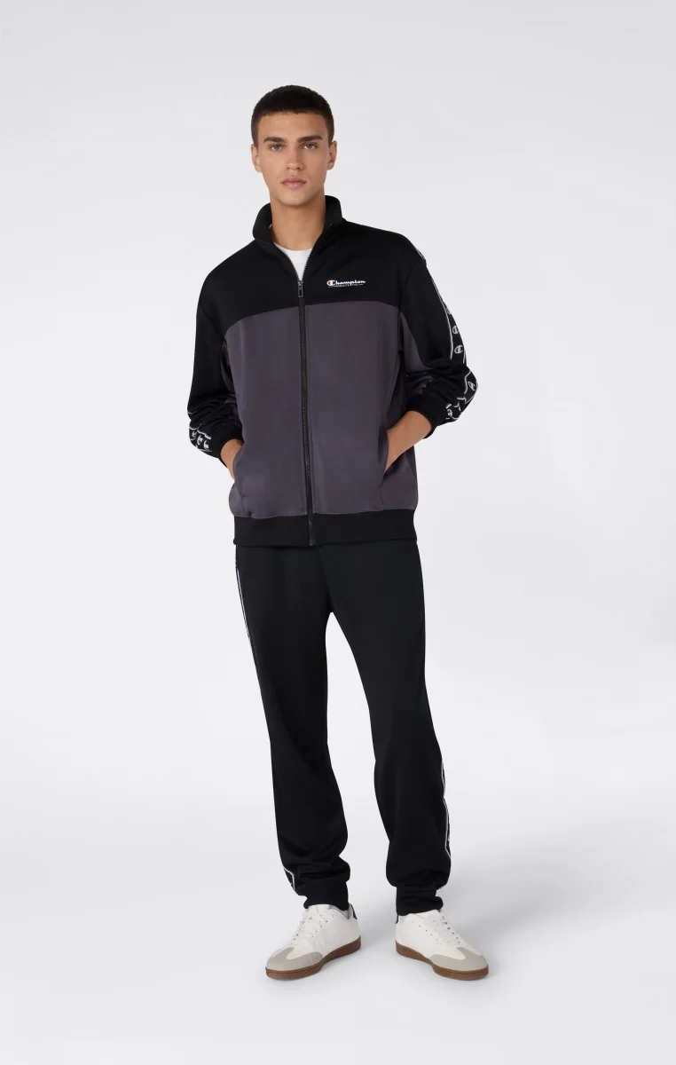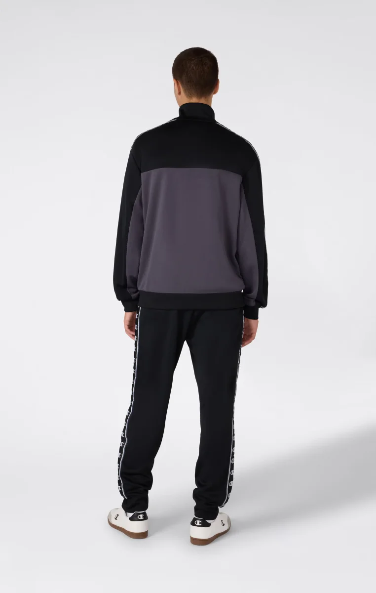 This Champion men’s tracksuit combines comfort and sporty style in an essential and versatile design. Made from New Poly Interlock (300 g/m²), it offers durability and softness, ideal for everyday wear and leisure. The full zip jacket with high collar and logo tape along the sleeves recalls the brand’s sports heritage, while the pants with elastic waistband and straight hem ensure practicality and freedom of movement. The Relax Fit completes the set, making it perfect for a modern and comfortable look.@@@Composition: 100% Polyester |Fabric: New Poly Interlock |Weight: 300 g/m² |Jacket with high collar and full zip closure |Champion logo tape on sleeves |Side pockets |Pants with elastic waistband |Straight hem |Logo on chest and leg |Fit: Relax Fit – soft and comfortable, slightly loose