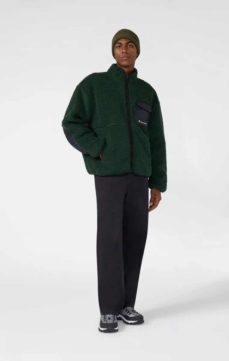 Full zip fleece jacket ideal for a vintage-inspired outdoor look. Contrast details add character to the piece, while the chest pocket with snap button closure provides functional convenience.@@@Fabric: Fleece 540 g/m² |Composition: 100% Polyester |Glossy and matte nylon inserts 35 g/m² |Chest pocket with flap and button |Front zip pockets |Contrast finishes on zips, shoulders, and pockets |Embroidered logo on the chest |Fit: Standard Fit: Versatile and comfortable with standard width and length. Close to the body with simple lines that do not shape the figure. Regular shoulder cut.