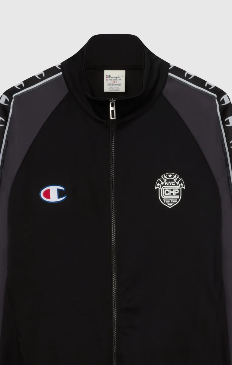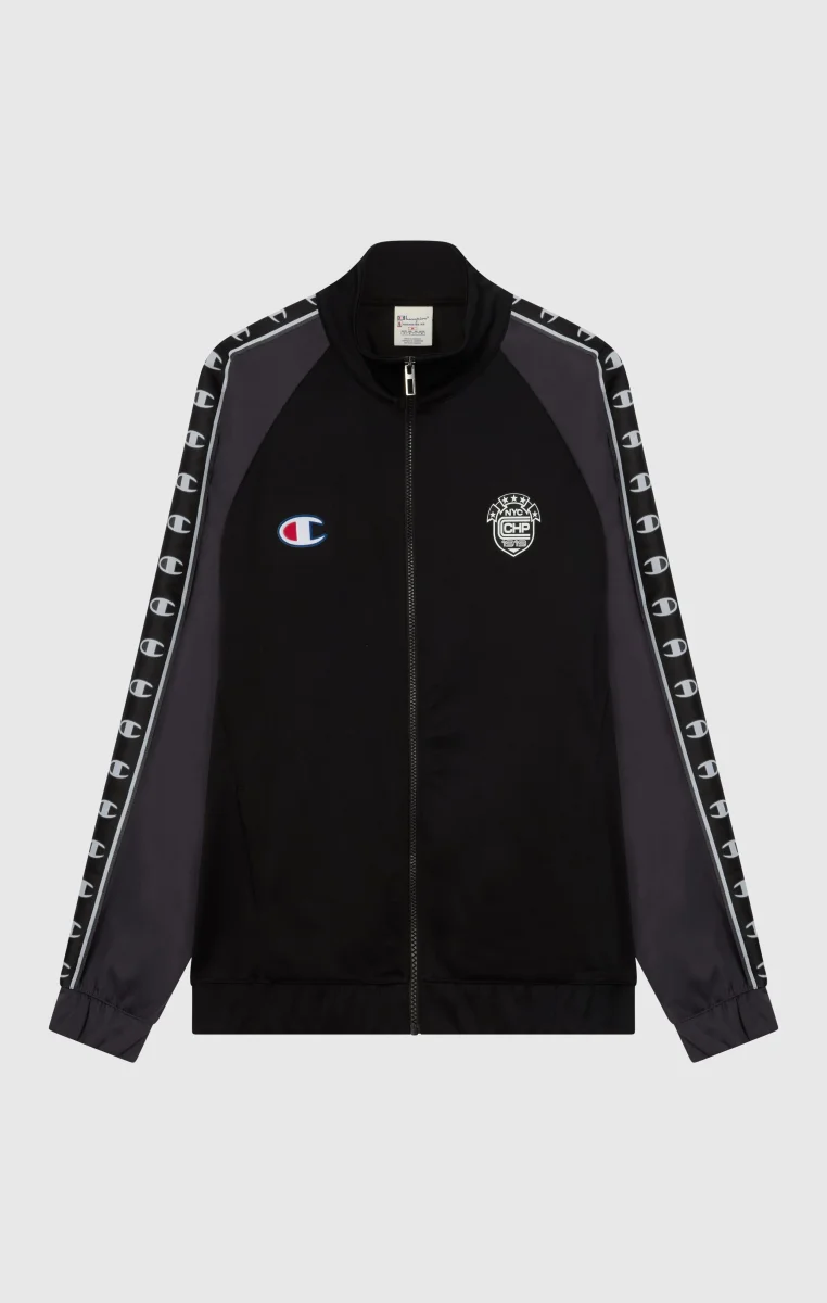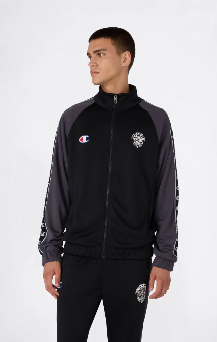 This Champion men’s full zip sweatshirt belongs to the Sport Heritage line, which reinterprets team uniforms in a modern lifestyle key. Made from New Poly Interlock (300 g/m²), it is durable, comfortable and ideal for a sporty look inspired by football and soccer. The Relax Fit ensures comfort and freedom of movement, while iconic details such as logo tape on the sleeves and the crest on the chest recall the style of sports uniforms. A bold piece, perfect to stand out both on and off the field.@@@Composition: 100% Polyester |Fabric: New Poly Interlock |Weight: 300 g/m² |High collar |Full zip closure |Champion logo tape along sleeves |Crest on chest |Ribbed cuffs and hem |Fit: Relax Fit – soft and comfortable, slightly loose