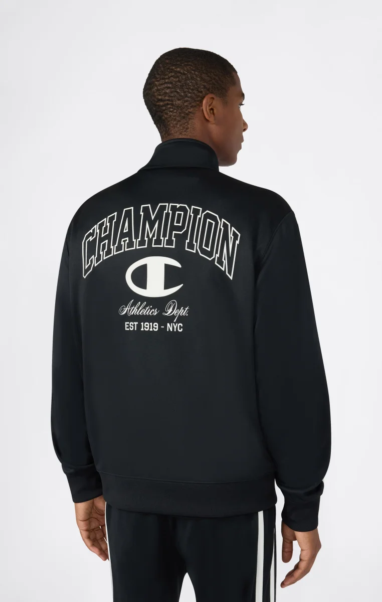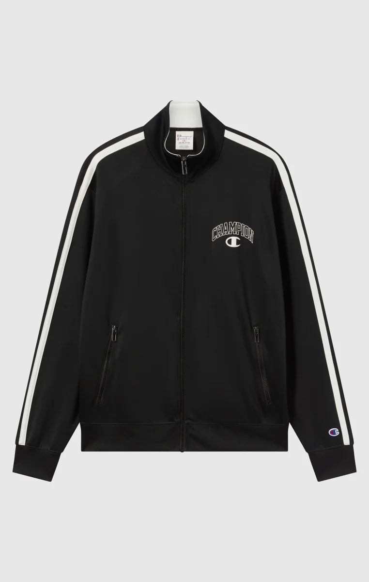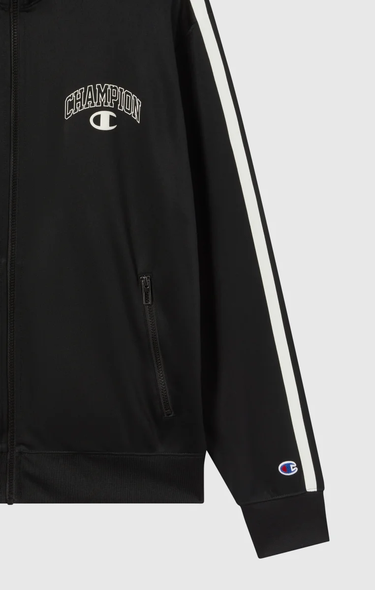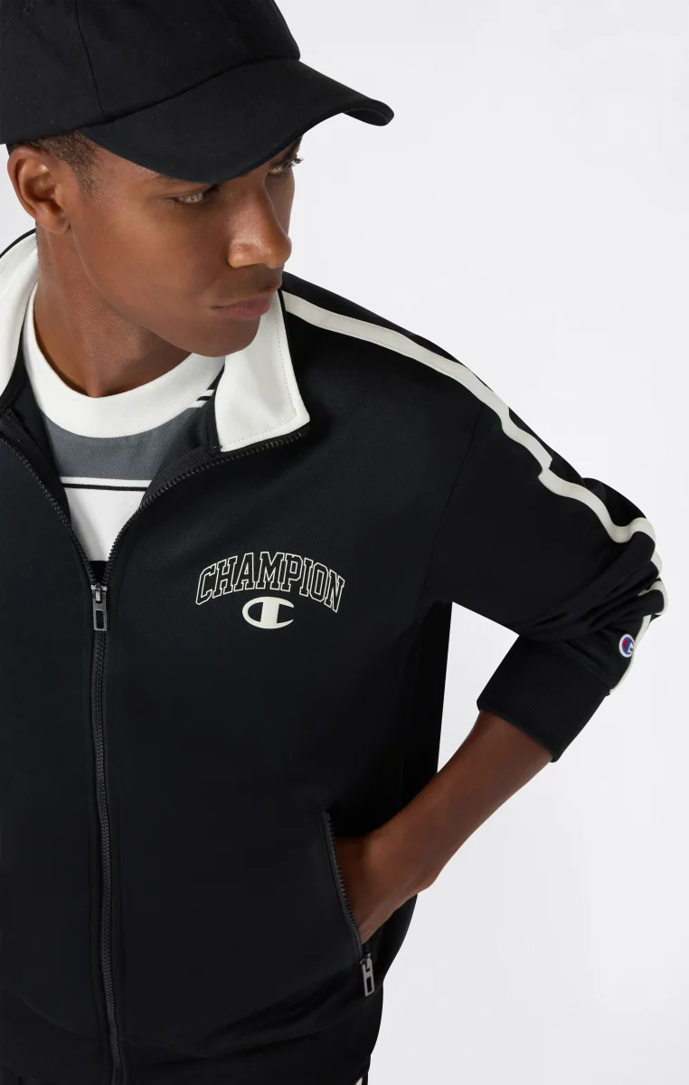 With a relaxed fit and college vibe, this full-zip track top is made from 300 g/m² polyester interlock for a clean, structured look. The varsity-style chest graphic and contrast stripes on the sleeves add an authentic sporty touch.@@@Fabric: Polyester interlock, weight: 300 g/m² |Composition: 100% Polyester |Full zip closure |Front graphic inspired by varsity style |Contrasting stripes on sleeves |Ribbed cuffs and hem |Fit: Relax Fit – Relaxed and comfortable fit, slightly loose at the chest, dropped shoulders, regular length.