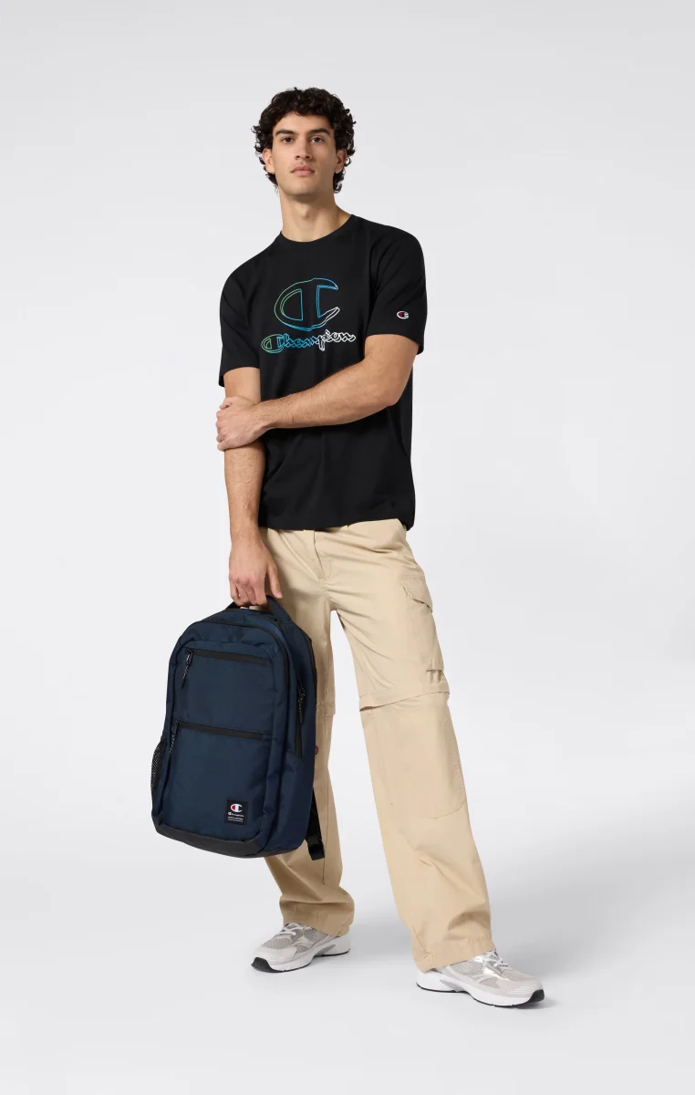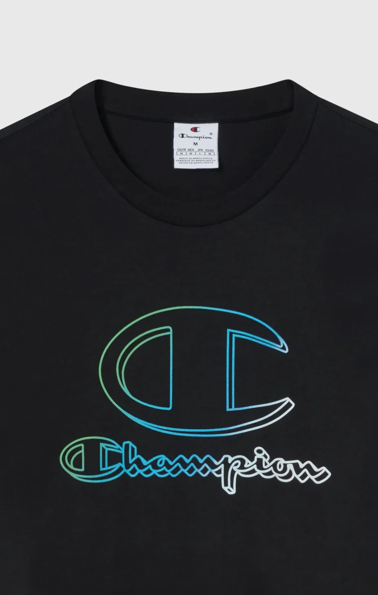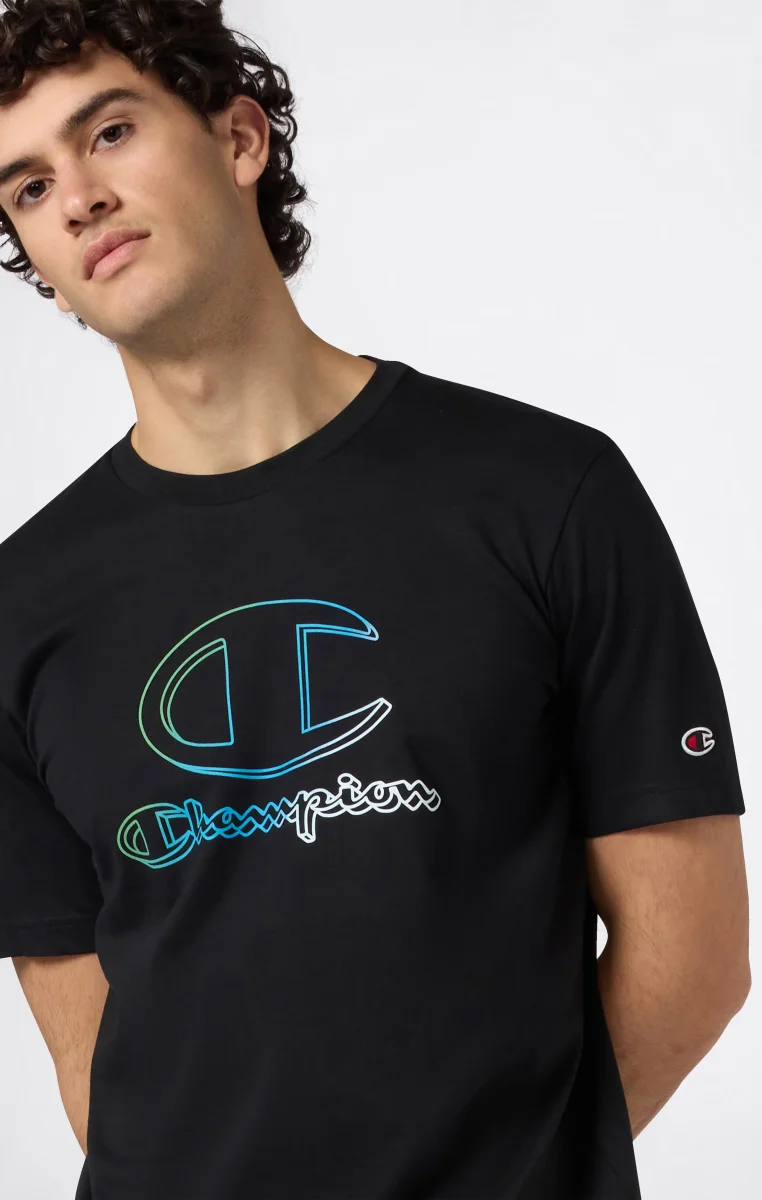 Made from lightweight cotton jersey (150 g/m²), this Champion T-shirt combines comfort and style in a versatile everyday piece. The design plays with seasonal colors and reworks the iconic “C” logo into original graphic compositions, creating a modern and distinctive look. Perfect to pair with jeans, joggers or shorts for a casual and fresh style.@@@Composition:100% cotton |Fabric:Light cotton jersey |Fabric weight:150 g/m² |Short sleeves |Ribbed crew neck |Fit:Standard Fit – versatile and comfortable with standard widths and lengths. Close to the body with clean lines that do not cling. Regular shoulder cut.