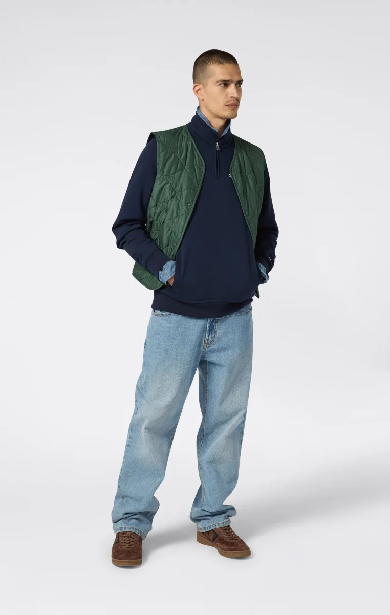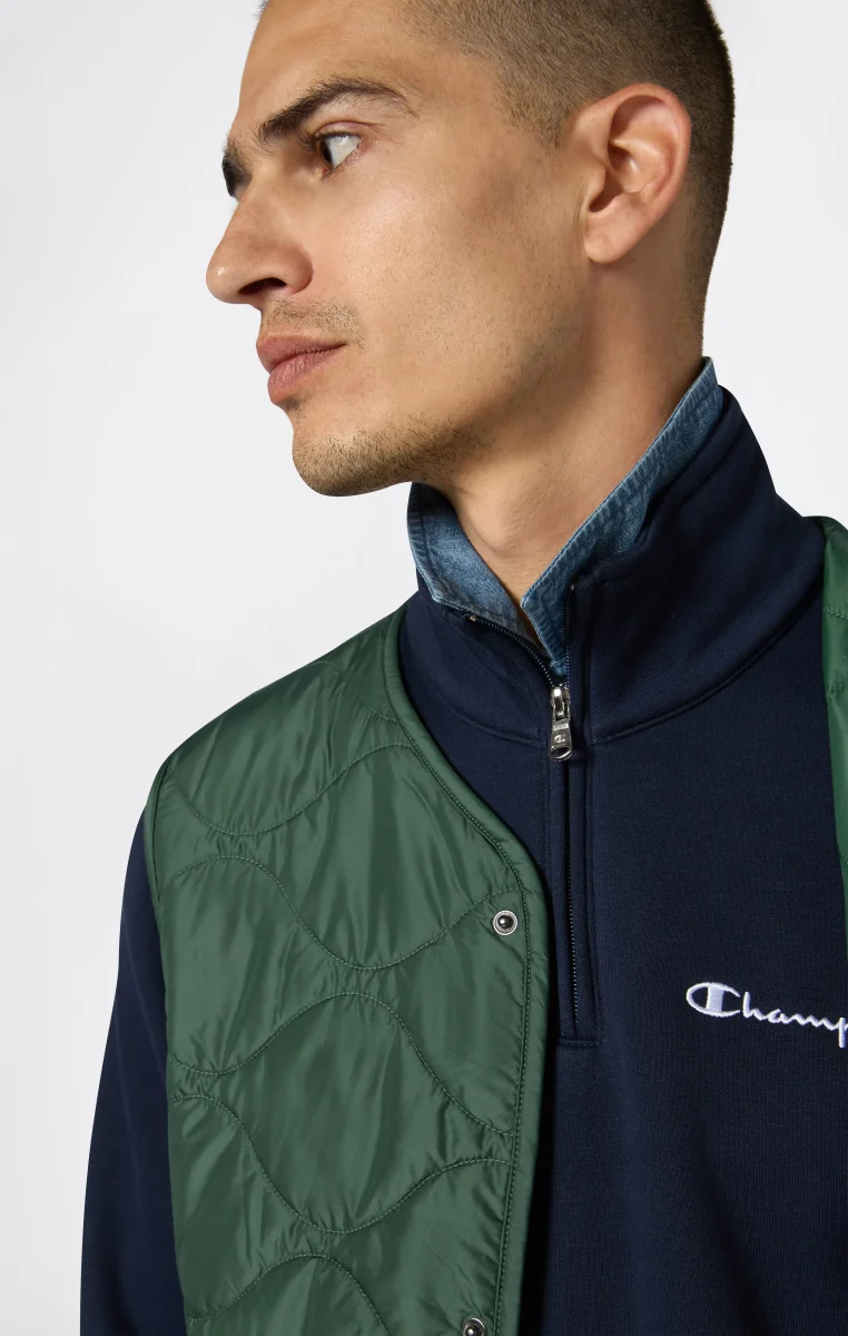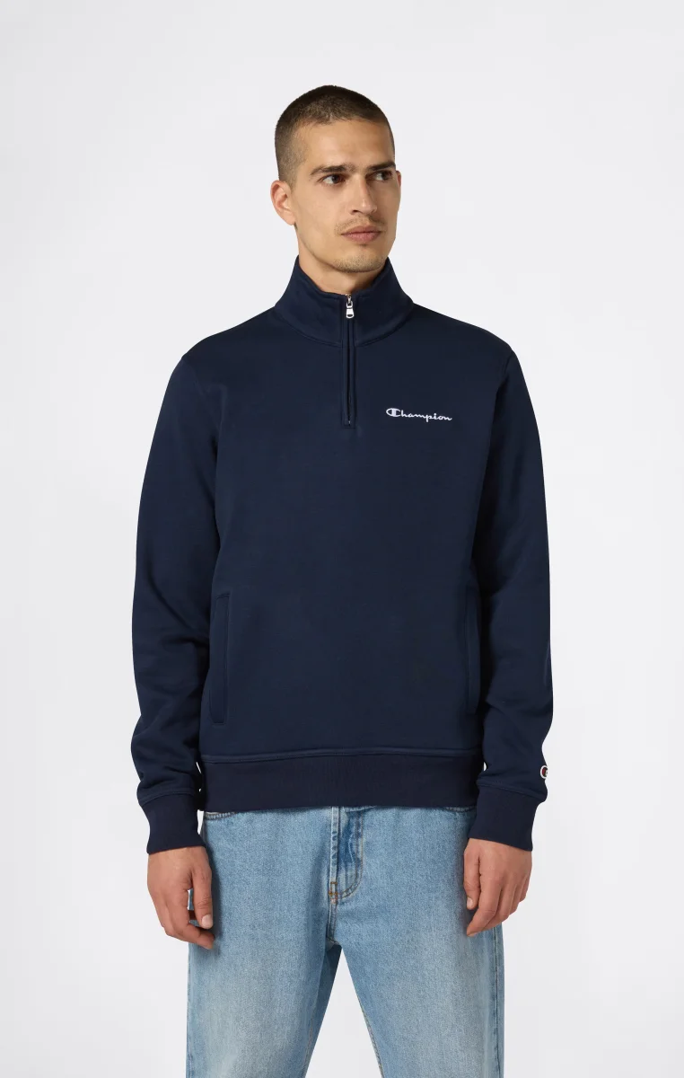 Clean style and everyday comfort come together in this half-zip sweatshirt from the Icons line, perfect for cooler days with a simple, refined look. Made from 310 g/m² soft, compact fleece, it offers warmth and structure, while the brushed interior provides an extra-soft feel. The design features a high collar with a short zip, an embroidered Champion logo on the chest, and the C logo on the sleeve—heritage-inspired details with a modern edge.@@@Fabric: Heavy compact and soft fleece – 310 g/m² |Composition: 70% Cotton / 30% Polyester |Brushed interior for superior thermal comfort |High neck with half-zip |Inserted side pockets |Embroidered Champion logo on chest |Fit: Standard Fit – versatile and comfortable with standard widths and lengths. Follows the body without clinging. Regular shoulder cut.