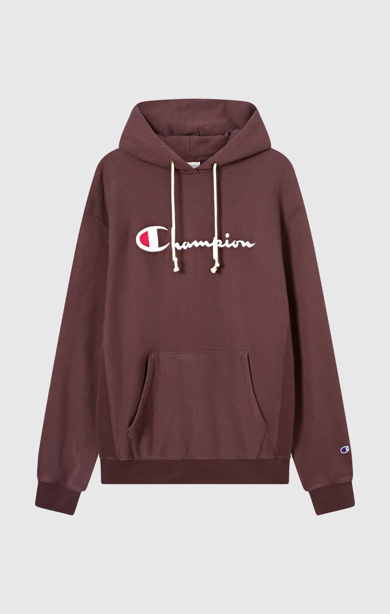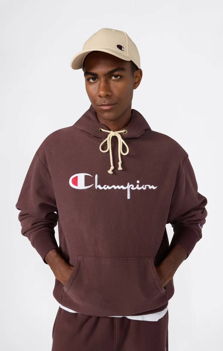 This hoodie blends modern comfort with authentic heritage. Made with Reverse Weave fabric—Champion’s patented technology that resists shrinkage and maintains shape over time—it’s designed to last and support you on any occasion. The relaxed fit, kangaroo pocket, and iconic embroidered logo embody the essence of a timeless sportswear icon. Champion has turned the hoodie into an essential piece of the modern wardrobe.@@@Fabric: Soft Reverse Fleece Solid Colors 420 g/m² |Composition: 82% Cotton, 18% Polyester |Brushed interior, warm and soft |Reverse Weave: patented fabric that retains its shape |Adjustable hood with drawcord |Kangaroo pocket |Embroidered Champion logo on the chest |C patch logo on the left sleeve |Fit: Relax Fit: Soft and comfortable fit, slightly loose on the chest, dropped shoulders, regular length